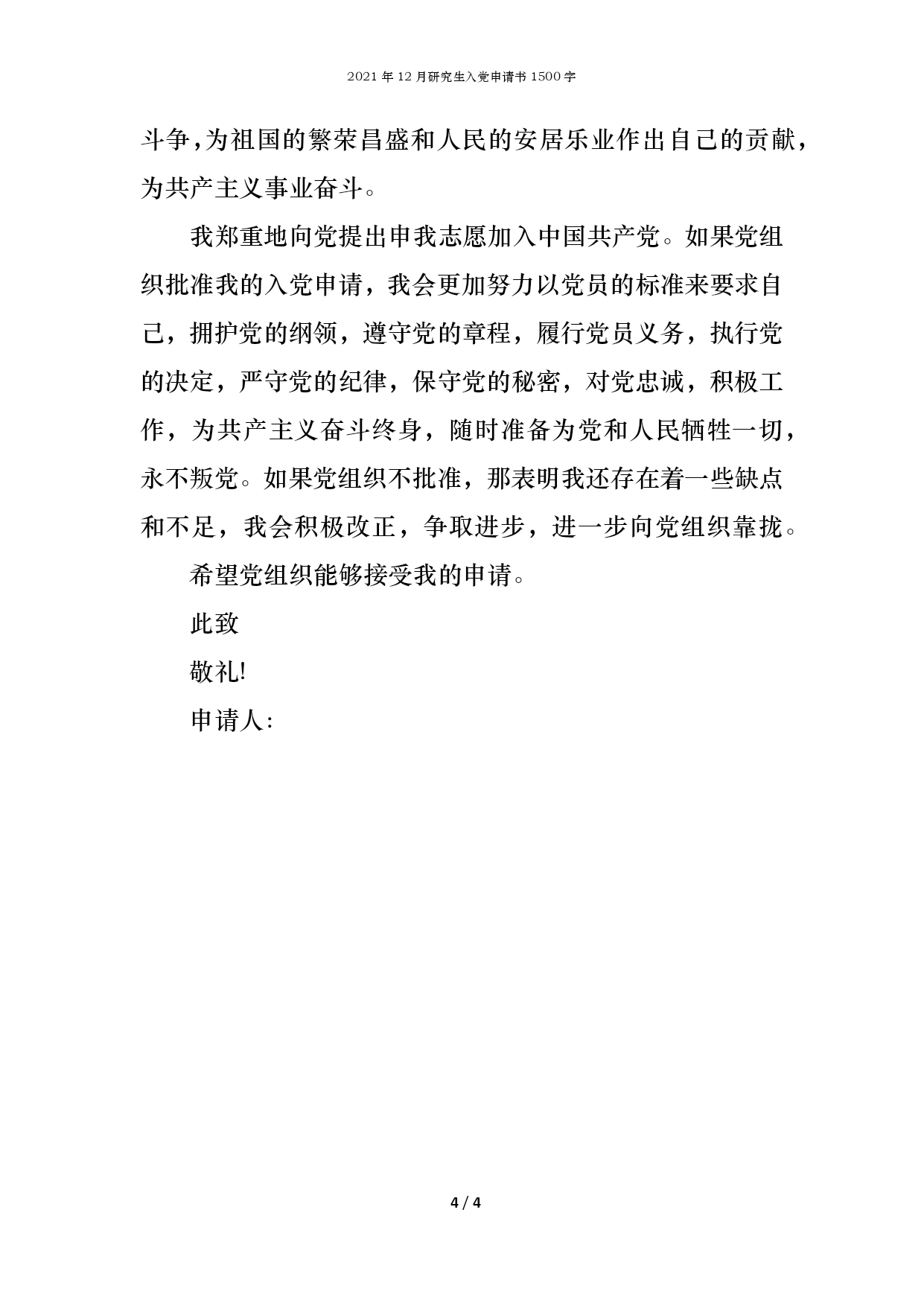 2021年12月研究生入党申请书1500字