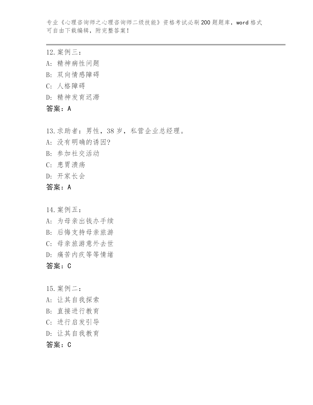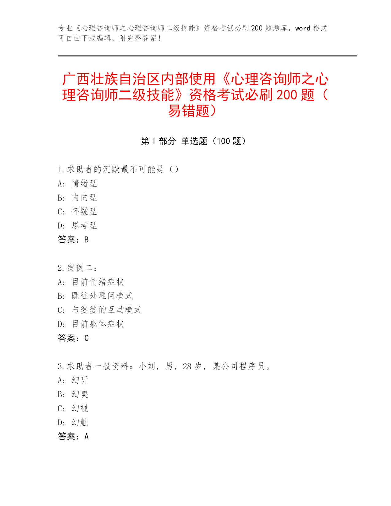 内部使用广西壮族自治区平南县《心理咨询师之心理咨询师二级技能》资格考试必刷200题真题及答案【易错题】