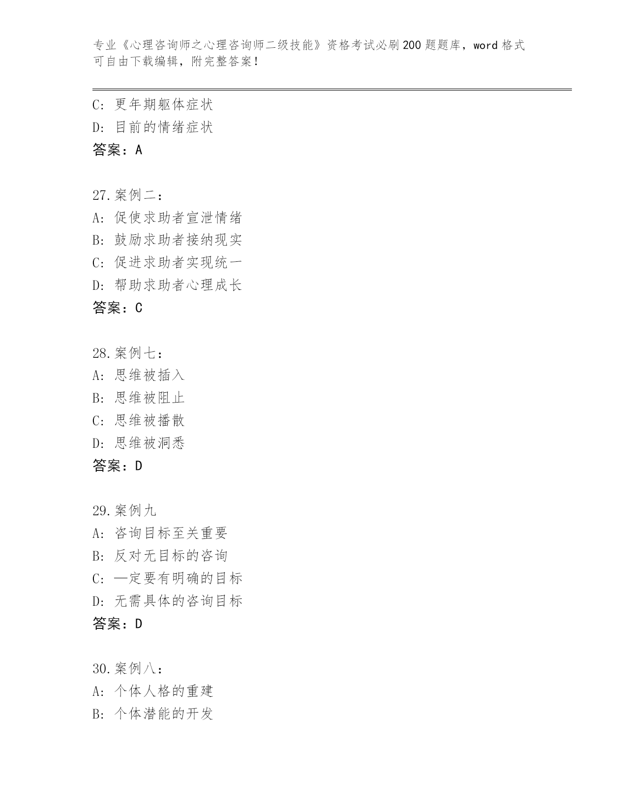 江西省内部使用《心理咨询师之心理咨询师二级技能》资格考试必刷200题题库大全【】