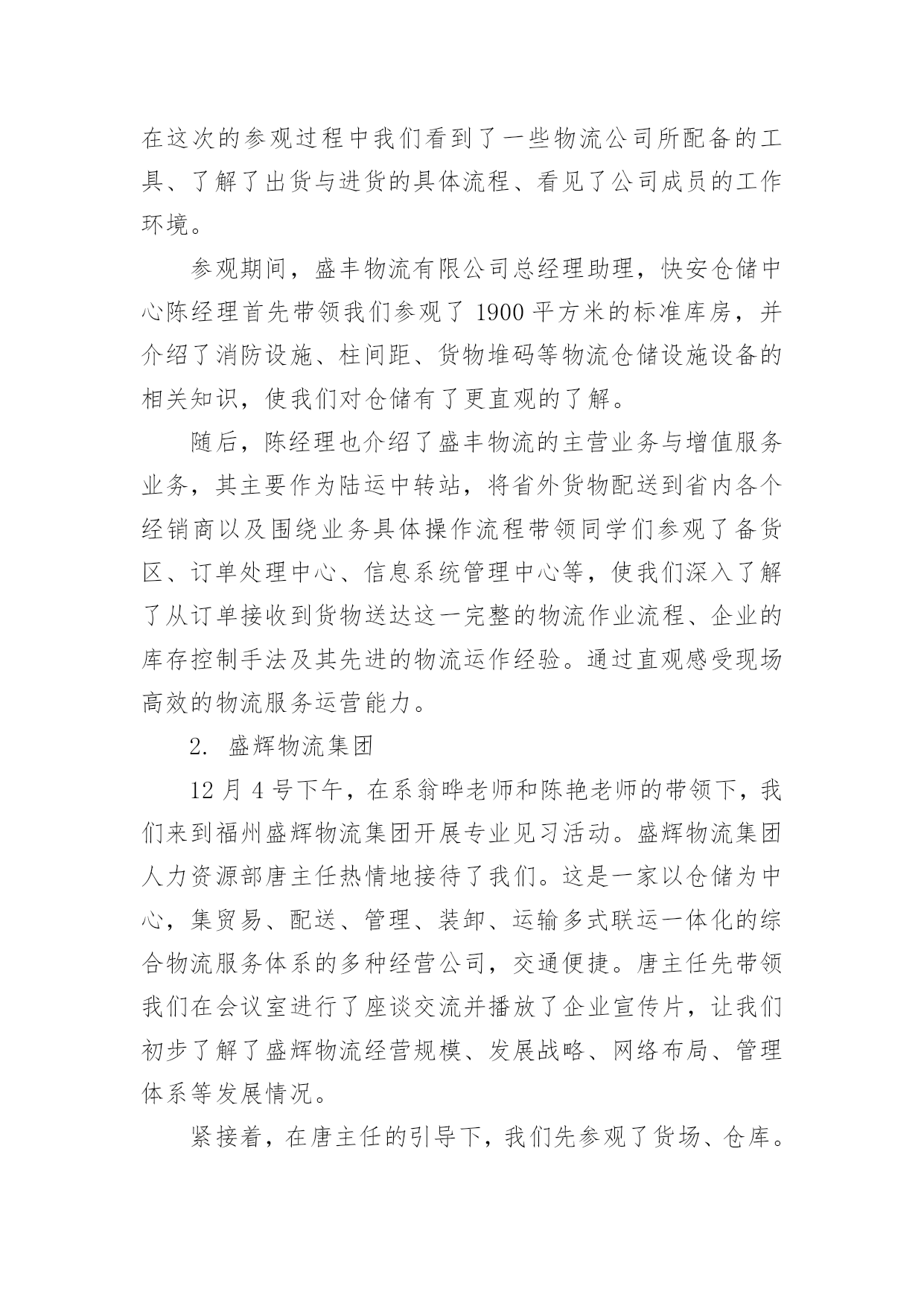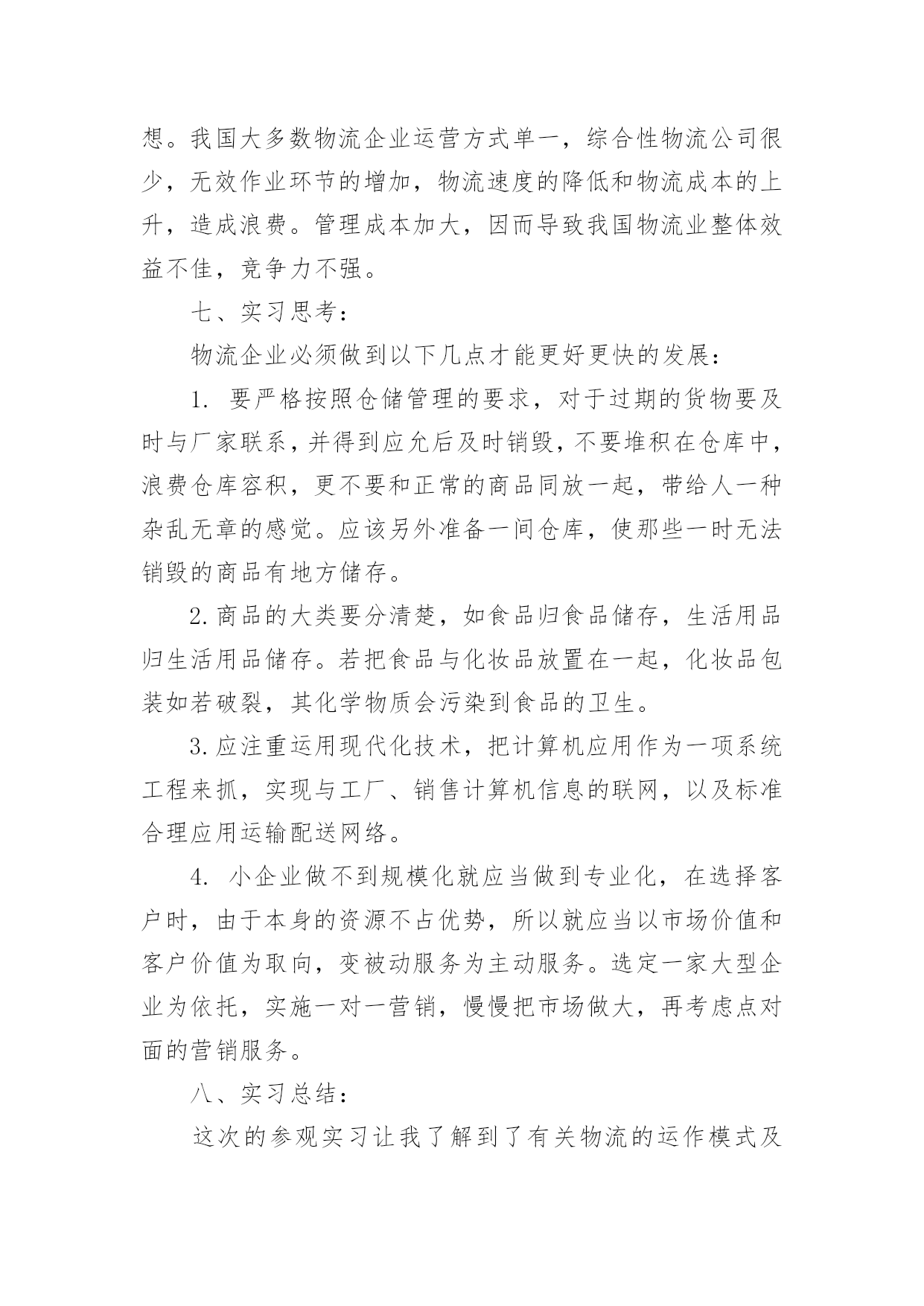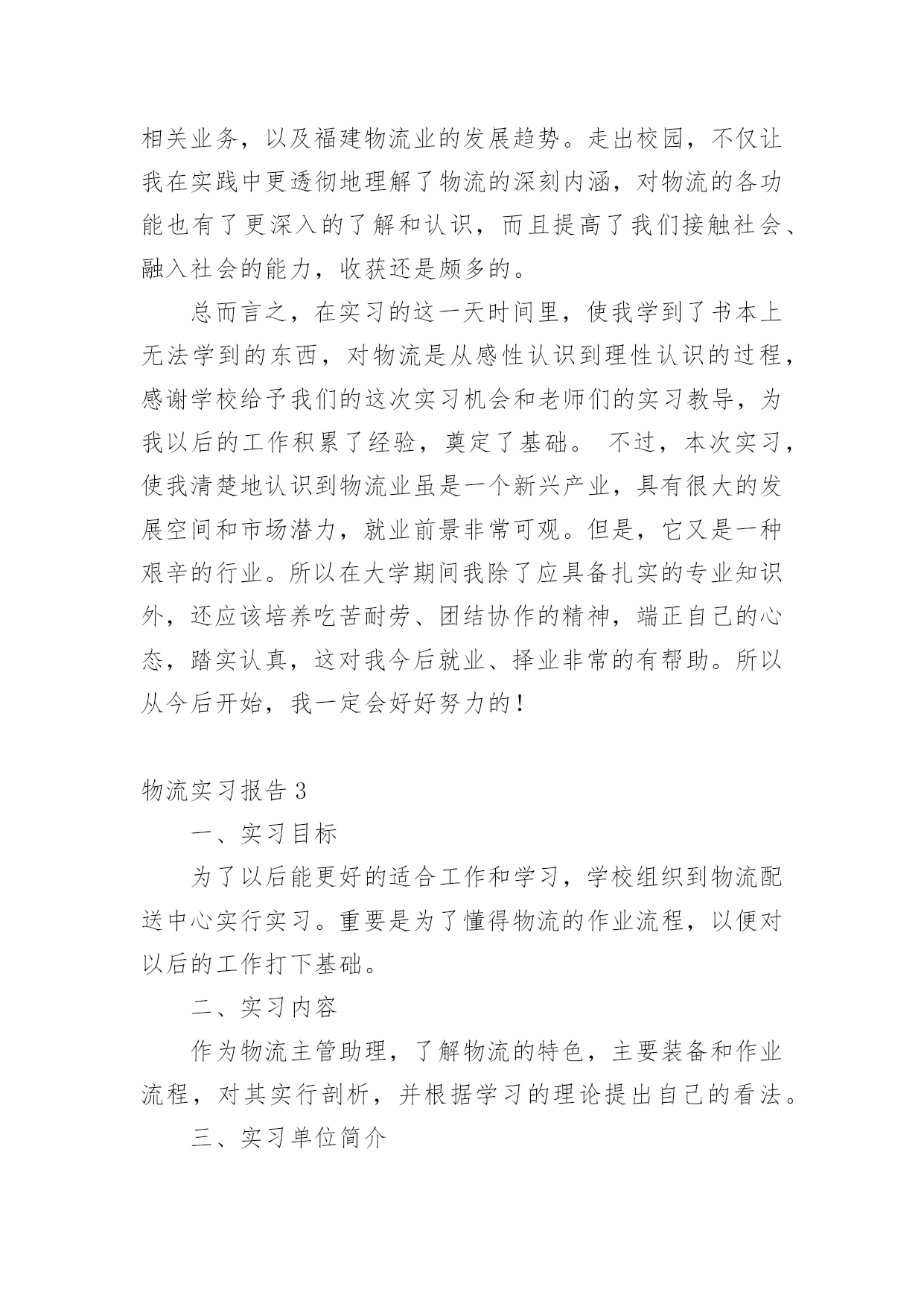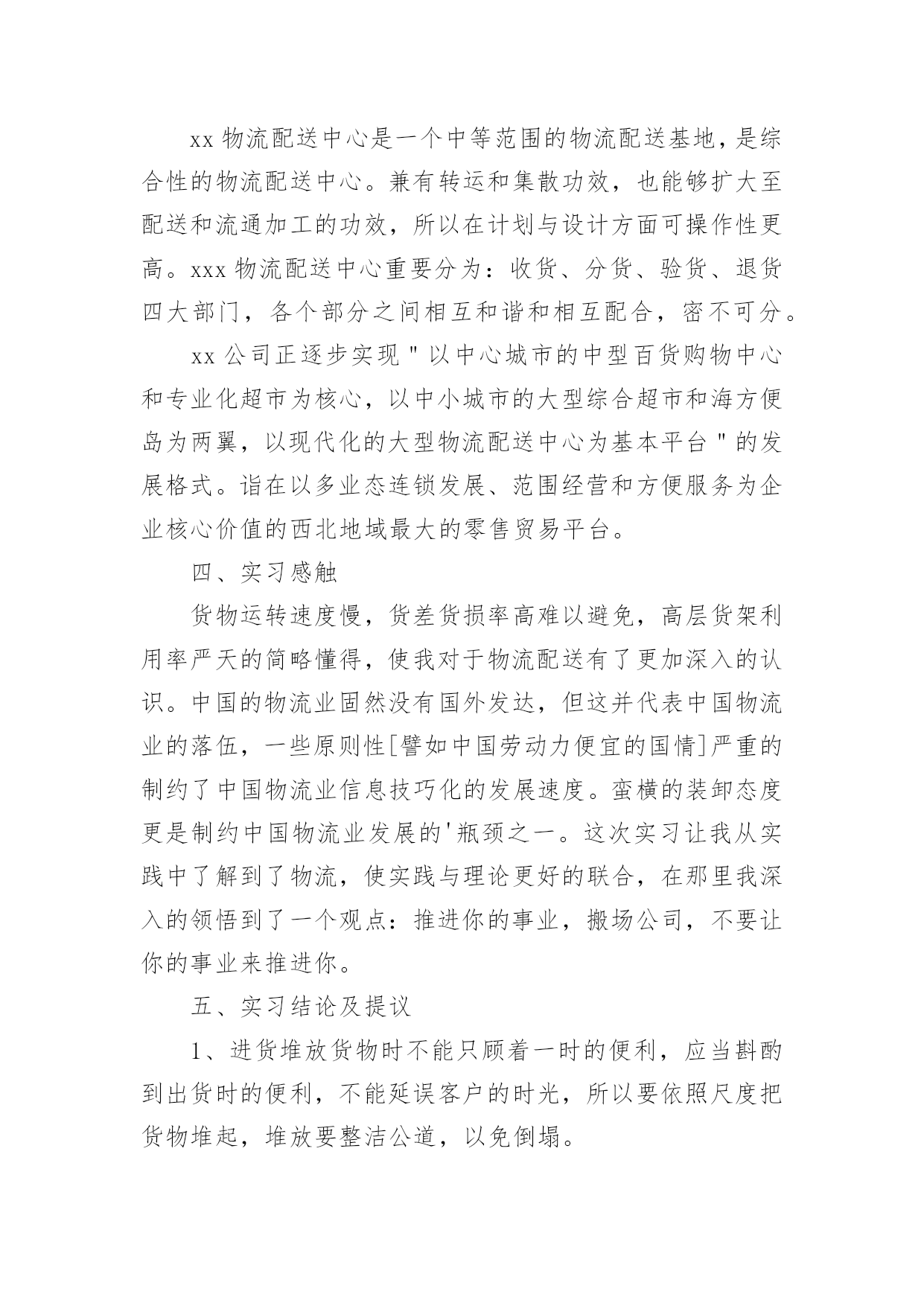 物流实习报告在生活中,我们使用报告的情况越来越多,报告中提到的所有信息应该是准确无误的。一听到写报告就拖延症懒癌齐复发?以下是小编为大家整理的物流实习报告,供大家参考借鉴,希望可以帮助到有需要的朋友。物流实习报告1本人是物流专业的学生,这段时间来在物流公司实习,了解了很多也学习到了很多,下头是我实习时候的一些心得和报告!一、实习目标为了以后能更好的适应工作和学习,学校组织到xx物流配送中心进行动期十天的实习。重要是为了懂得物流的作业流程,以便对我国的物流业能有更深的懂得。二、实习请求了解物流的特色,佳吉货运,主要装备和作业流程,对其进行剖析,并根据学习的理论提出自我的看法。三、实习单位简介配送中心是以组织配送性销售或供给,履行实物配送为重要职能的流通型结点。具有集货中心、分货中心的职能。xx公司是在xx连锁超市基本了发展起来的大型企业,拥有大型百货购物中心,社区连锁超市,中心城市方便岛为支柱的三大贸易,并以现代物流配送中心为支撑平台。xx物流配送中心是一个中等范围的物流配送基地,是综合性的物流配送中心。兼有转运和集散功效,也能够扩大至配送和流通加工的功效,所以在计划与设计方面可操作性更高。xxx物流配送中心重要分为:收货、分货、验货、退货四大部门,各个部分之间相互和谐和相互配合,密不可分。xx公司正逐步实现"以中心城市的中型百货购物中心和专业化超市为核心,以中小城市的大型综合超市和海方便岛为两翼,以现代化的大型物流配送中心为基本平台"的发展格式。诣在以多业态连锁发展、范围经营和方便服务为企业核心价值的西北地域最大的零售贸易平台。四、实习感触货物运转速度慢,货差货损率高难以避免,高层货架利用率严天的简略懂得,使我对于物流配送有了更加深入的认识。中国的物流业固然没有国外发达,但这并代表中国物流业的落伍,一些原则性[譬如中国劳动力便宜的国情]严重的制约了中国物流业信息技巧化的发展速度。蛮横的装卸态度更是制约中国物流业发展的'瓶颈之一。这次实习让我从实践中了解到了物流,使实践与理论更好的联合,在那里我深入的领悟到了一个观点:推进你的事业,搬场公司,不要让你的事业来推进你。五、实习结论及提议1、进货堆放货物时不能只顾着一时的便利,应当斟酌到出货时的便利,不能延误客户的时光,所以要依照尺度把货物堆起,堆放要整洁公道,以免倒塌。2、要严厉依照仓储治理的请求,对于过期的货物要及时与厂家接洽,并得到应允后及时烧毁,佳吉快运,不要堆积在仓库中,挥霍仓库容积,更不要和正常的商品同放一齐,带给人一种混乱无章的感到,应当另外筹备一间仓库,使那些一时无法烧毁的商品有处所储存。3、目前物流中心正面临很多问题,批次越来越多而批量却越来越小,造成物流治理上的一个难点,产前物流,企业内部物流,销售物流,在供给链的治理上如何把握住这三块之间的关系,国内的物流畅润太低,仅占5%,如何把利润搞上往,面临一系列的困难,物流中心还得多鉴戒国外的物流策略,提高自我企业的效益。实践是检验真理的唯一方法,仅有到实际中去,才能真正认识理论其中的意义。十分感激xx物流配送中心能给我这个难得的机会,让我受益匪浅。也十分感激学校给了我这个机会,为我的工作积累了经验,奠定了基础。物流实习报告2一、序言为了以后能更好的适应我们物流专业的学习,所以需要通过实习将我们学过的相关知识与具体的实践相结合,主要是了解物流的特点,仓储,装卸,搬运等基本的物流作业功能,熟悉物流的基本设备,运营管理,初步了解福建物流当前发展的现状。此次行业调研,虽然没有深入到物流公司的内部运作中去,但通过有关人员较全面深刻的讲解和实地考察,我们对物流业有了更深一步的了解,为以后我们步入社会工作也打下了坚实的基础,使我受益匪浅。二、实习时间:20xx年12月4日、12月12日三、实习地点:八方盛丰有限公司、盛辉物流有限公司、宅急送物流福州分公司四、实习任务:(1)了解被考察企业的性质、历史;(2)了解企业的经营思想和主要的经营策略;(3)了解企业的组织形式及机构设置,人员构成(4)了解企业的各项规章制度、工作纪律;(5)了解企业的主要产品或主要业务;(6)认识和了解企业文化;(7)全面了解企业物流运作体系,包括货物的进出、分拣、仓储、配送、搬运的流程;(8)了解物流企业运输车辆的调度作业;(9)熟悉订单处理业务及反馈信息的处理方法;(10)了解如何接洽客户及客户投诉的处理方法;(11)学习如何与其他部门进行有效的沟通协调;五、实习内容:1.八方盛丰物流有限公司实习的首战,我们去了八方盛丰物流有限公司参观,在这里我们第一次真正意义上对物流公司有了进一步的了解。在这次的参观过程中我们看到了一些物流公司所配备的工具、了解了出货与进货的具体流程、看见了公司成员的工作环境。参观期间,盛丰物流有限公司总经理助理,快安仓储中心陈经理