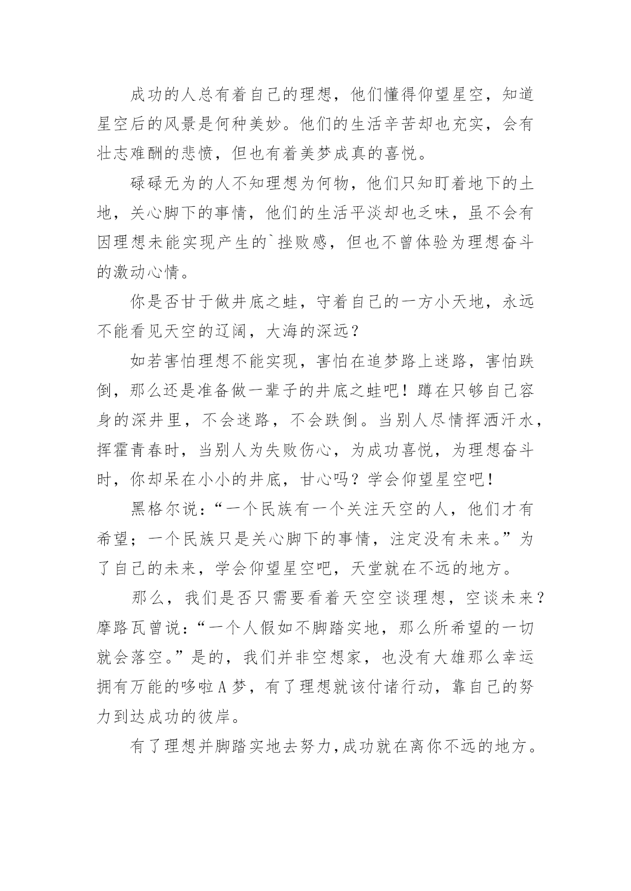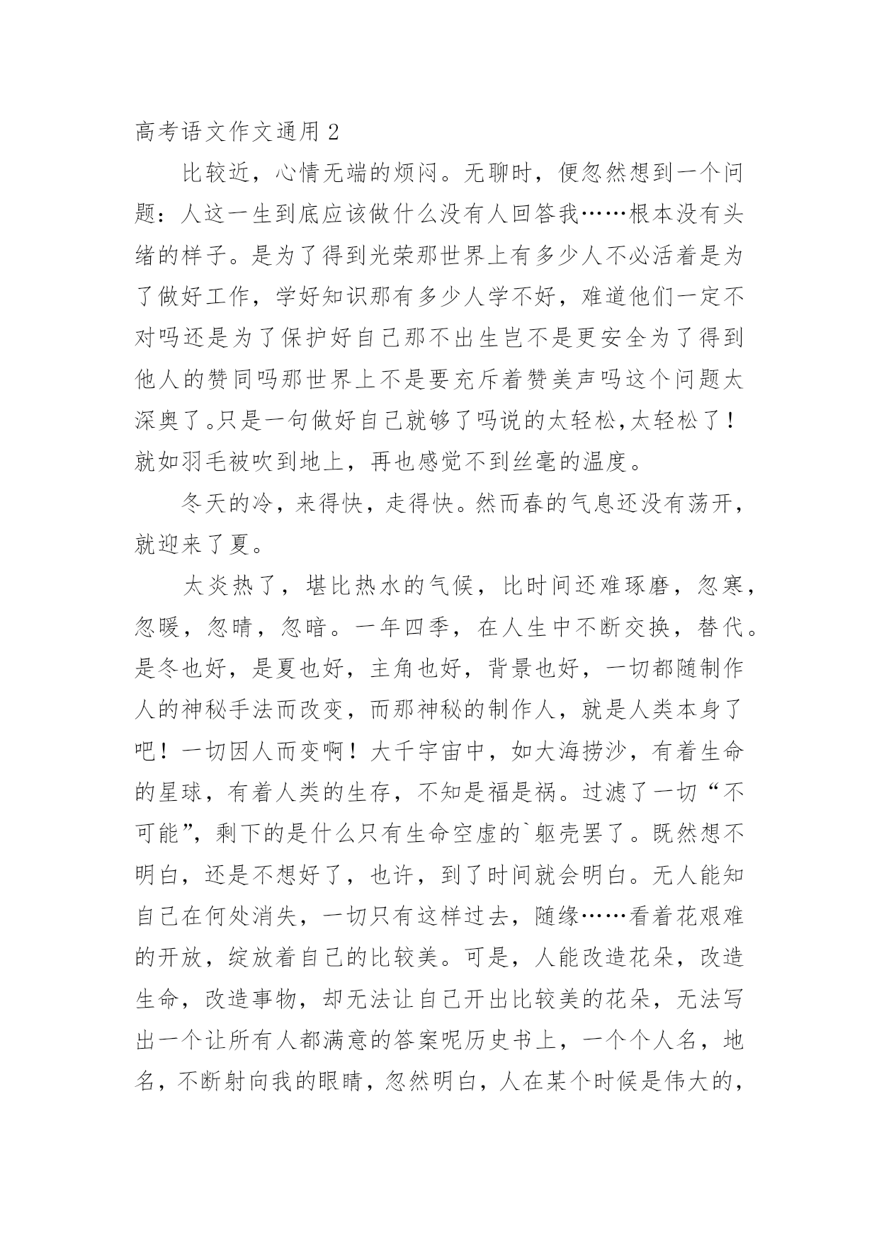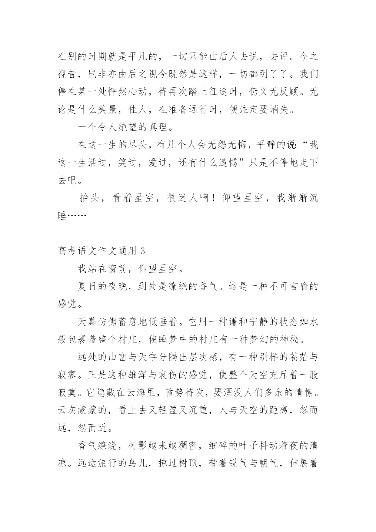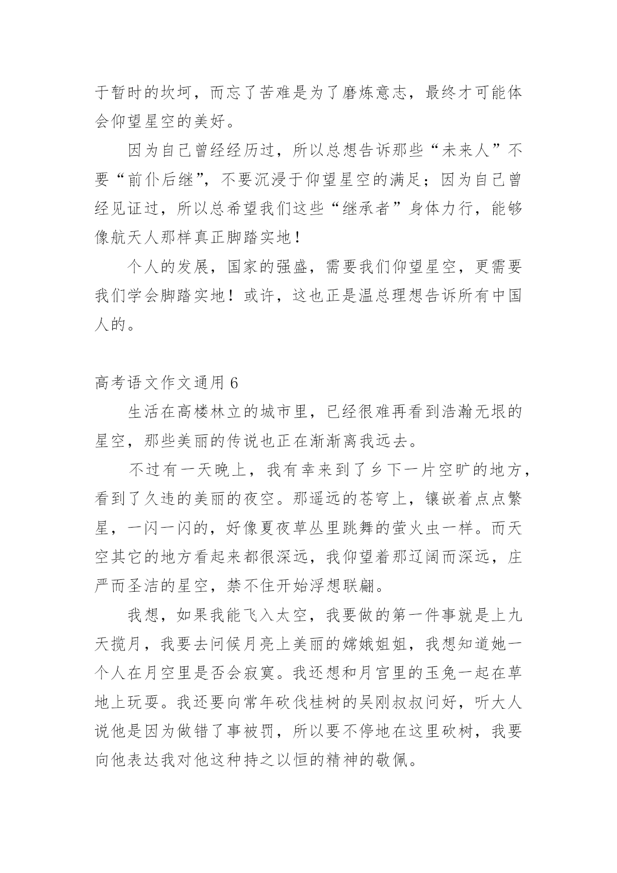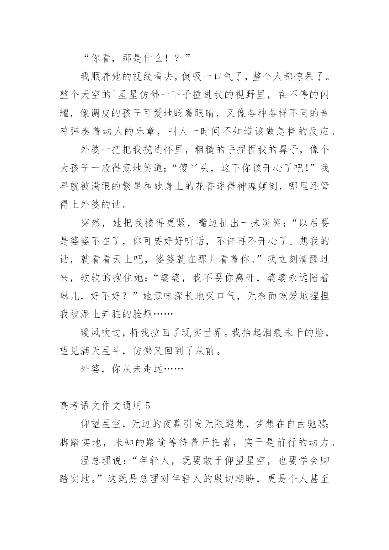 高考语文作文高考语文作文通用在学习、工作或生活中,许多人都写过作文吧,作文可分为小学作文、中学作文、大学作文(论文)。如何写一篇有思想、有文采的作文呢?以下是小编精心整理的高考语文作文通用,仅供参考,欢迎大家阅读。高考语文作文通用1星空,是夜的花朵。星空的出现,代表着天堂黑夜的到来。然而,在这篇文章中,此星空非彼星空,此天堂亦非彼天堂。星空指理想,天堂指人人渴望的成功。王尔德说:“即使身处脏水沟和下水道,也要仰望星空。”仰望星空的必要性可见一斑。换个说法便是:就算有再大的挫折,也要有自己的理想,不管有多大的困难,也要坚持自己的理想。四有公民中,有理想便是其中一“有”。从小,老师就说,要树立自己的理想,并为之努力奋斗。理想是迈向成功的第一步,是我们前进的动力,这两个字并不代表着遥不可及,理想可以伟大,但也不是一定要有多么宏伟。只要是心中真正所想就好,只要能真正激励自己就好。若从不曾有过理想,那奋斗到底是为了什么?我们为什么要奋斗?为自己找到一个理想,也就为自己找到了坚持的理由。成功的人总有着自己的理想,他们懂得仰望星空,知道星空后的风景是何种美妙。他们的生活辛苦却也充实,会有壮志难酬的悲愤,但也有着美梦成真的喜悦。碌碌无为的人不知理想为何物,他们只知盯着地下的土地,关心脚下的事情,他们的生活平淡却也乏味,虽不会有因理想未能实现产生的`挫败感,但也不曾体验为理想奋斗的激动心情。你是否甘于做井底之蛙,守着自己的一方小天地,永远不能看见天空的辽阔,大海的深远?如若害怕理想不能实现,害怕在追梦路上迷路,害怕跌倒,那么还是准备做一辈子的井底之蛙吧!蹲在只够自己容身的深井里,不会迷路,不会跌倒。当别人尽情挥洒汗水,挥霍青春时,当别人为失败伤心,为成功喜悦,为理想奋斗时,你却呆在小小的井底,甘心吗?学会仰望星空吧!黑格尔说:“一个民族有一个关注天空的人,他们才有希望;一个民族只是关心脚下的事情,注定没有未来。”为了自己的未来,学会仰望星空吧,天堂就在不远的地方。那么,我们是否只需要看着天空空谈理想,空谈未来?摩路瓦曾说:“一个人假如不脚踏实地,那么所希望的一切就会落空。”是的,我们并非空想家,也没有大雄那么幸运拥有万能的哆啦A梦,有了理想就该付诸行动,靠自己的努力到达成功的彼岸。有了理想并脚踏实地去努力,成功就在离你不远的地方。高考语文作文通用2比较近,心情无端的烦闷。无聊时,便忽然想到一个问题:人这一生到底应该做什么没有人回答我……根本没有头绪的样子。是为了得到光荣那世界上有多少人不必活着是为了做好工作,学好知识那有多少人学不好,难道他们一定不对吗还是为了保护好自己那不出生岂不是更安全为了得到他人的赞同吗那世界上不是要充斥着赞美声吗这个问题太深奥了。只是一句做好自己就够了吗说的太轻松,太轻松了!就如羽毛被吹到地上,再也感觉不到丝毫的温度。冬天的冷,来得快,走得快。然而春的气息还没有荡开,就迎来了夏。太炎热了,堪比热水的气候,比时间还难琢磨,忽寒,忽暖,忽晴,忽暗。一年四季,在人生中不断交换,替代。是冬也好,是夏也好,主角也好,背景也好,一切都随制作人的神秘手法而改变,而那神秘的制作人,就是人类本身了吧!一切因人而变啊!大千宇宙中,如大海捞沙,有着生命的星球,有着人类的生存,不知是福是祸。过滤了一切“不可能”,剩下的是什么只有生命空虚的`躯壳罢了。既然想不明白,还是不想好了,也许,到了时间就会明白。无人能知自己在何处消失,一切只有这样过去,随缘……看着花艰难的开放,绽放着自己的比较美。可是,人能改造花朵,改造生命,改造事物,却无法让自己开出比较美的花朵,无法写出一个让所有人都满意的答案呢历史书上,一个个人名,地名,不断射向我的眼睛,忽然明白,人在某个时候是伟大的,在别的时期就是平凡的,一切只能由后人去说,去评。今之视昔,岂非亦由后之视今既然是这样,一切都明了了。我们停在某一处怦然心动,待再次踏上征途时,仍义无反顾。无论是什么美景,佳人,在准备远行时,便注定要消失。一个令人绝望的真理。在这一生的尽头,有几个人会无怨无悔,平静的说:“我这一生活过,笑过,爱过,还有什么遗憾”只是不停地走下去吧。抬头,看着星空,很迷人啊!仰望星空,我渐渐沉睡……高考语文作文通用3我站在窗前,仰望星空。夏日的夜晚,到处是缭绕的香气。这是一种不可言喻的感觉。天幕仿佛蓄意地低垂着。它用一种谦和宁静的状态如水般包裹着整个村庄,使睡梦中的村庄有一种梦幻的神秘。远处的山峦与天宇分隔出层次感,有一种别样的苍茫与寂寥。正是这种雄浑与哀伤的感觉,使整个天空充斥着一股寂寞。它隐藏在云海里,蓄势待发,要湮没人们多余的情愫。云灰蒙蒙的,看上去又轻盈又沉重,人与天空的距离,忽而远,忽而近。香气缭绕,树影越来越稠密,细碎的叶子抖动着夜的清凉。远途旅行的鸟儿,掠过树顶,带着锐气与朝气,伸展着