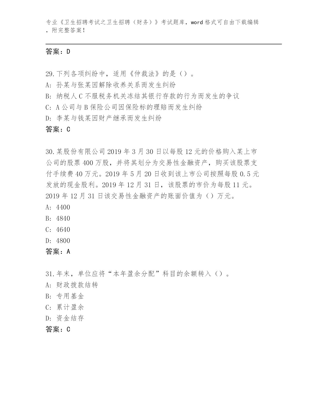 内部使用吉林省龙山区《卫生招聘考试之卫生招聘(财务)》考试必刷200题及答案