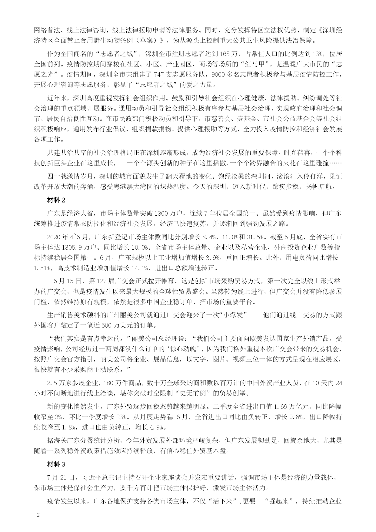 2020年0809广东省公务员考试《申论》真题(县级卷)参考答案及解析