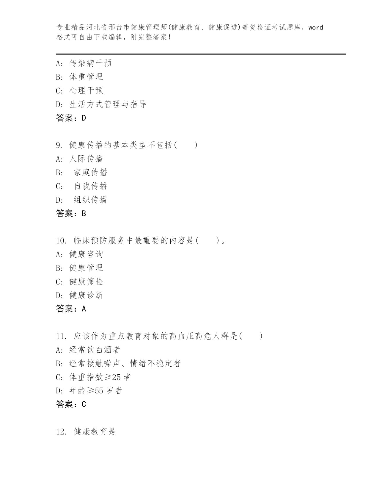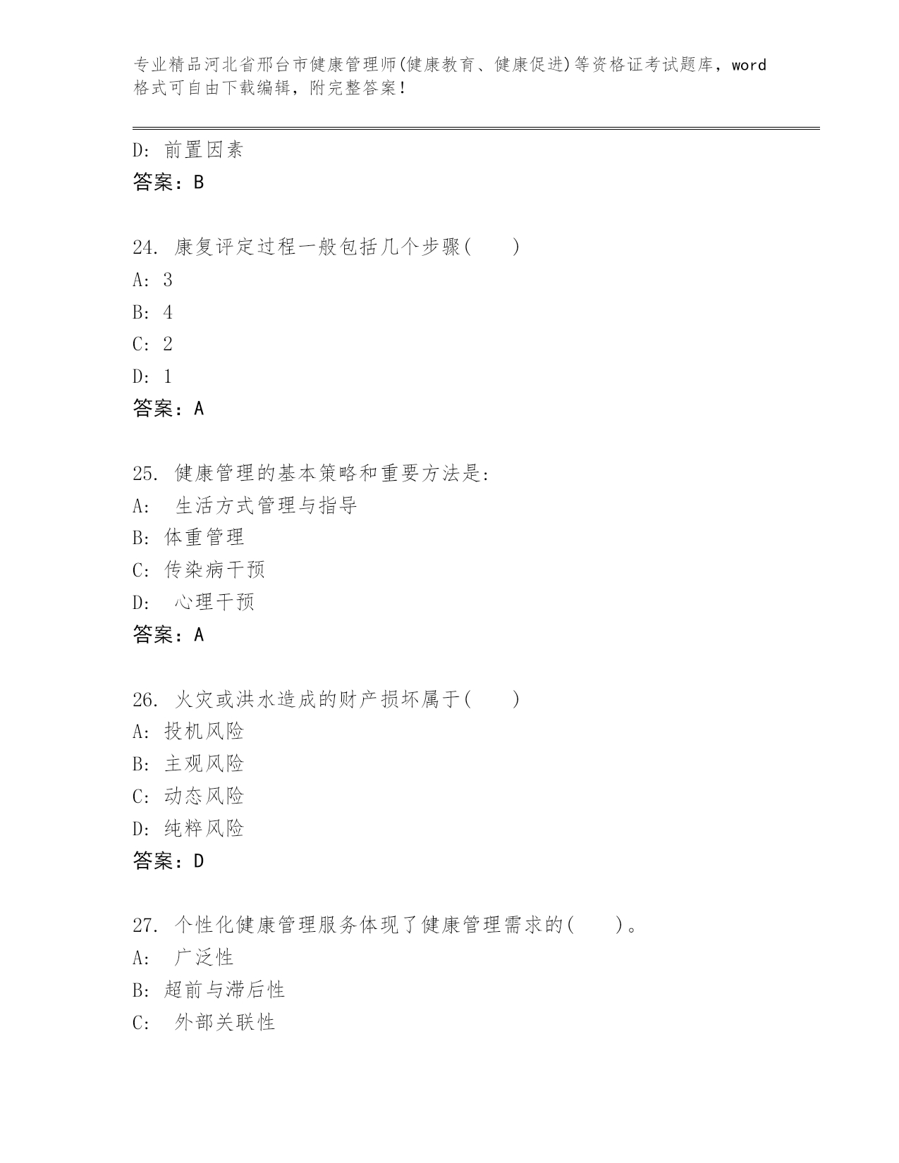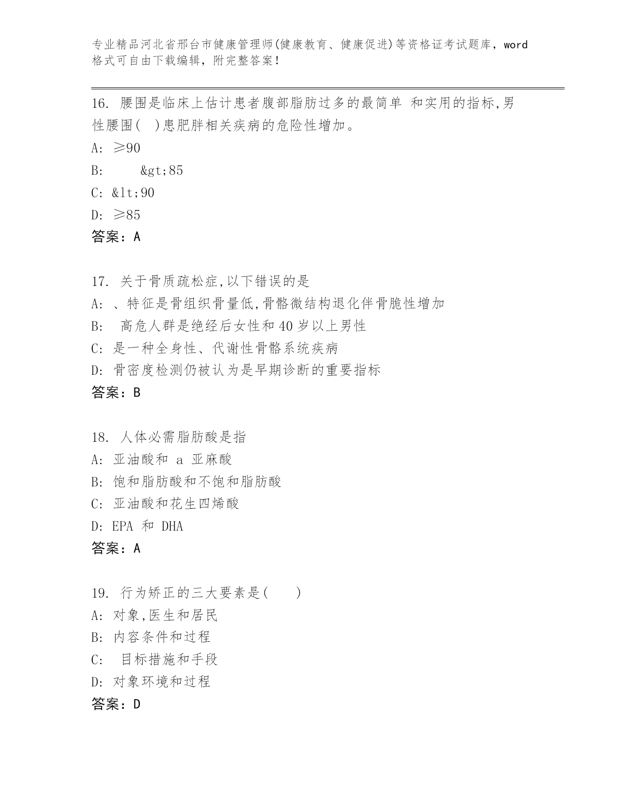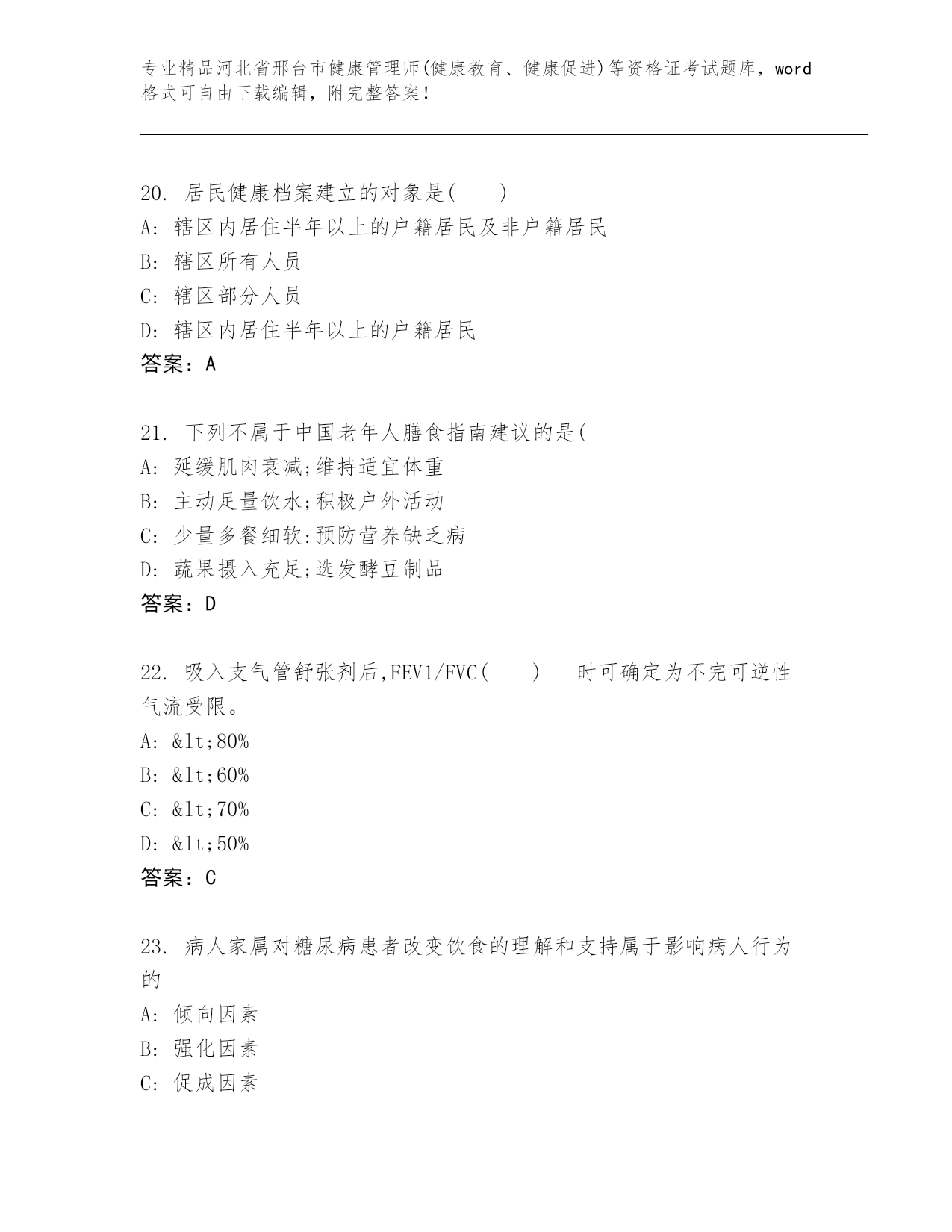 历年河北省邢台市健康管理师(健康教育、健康促进)等资格证考试大全精品(预热题)