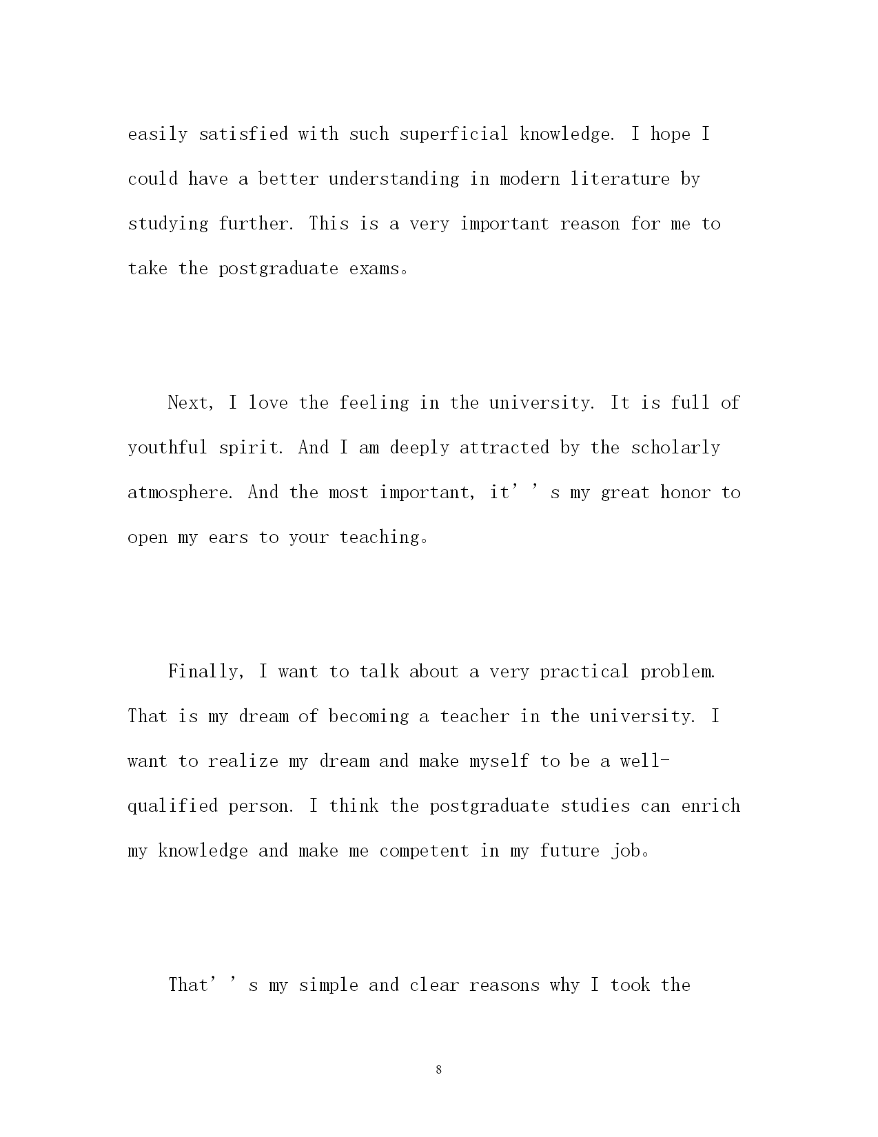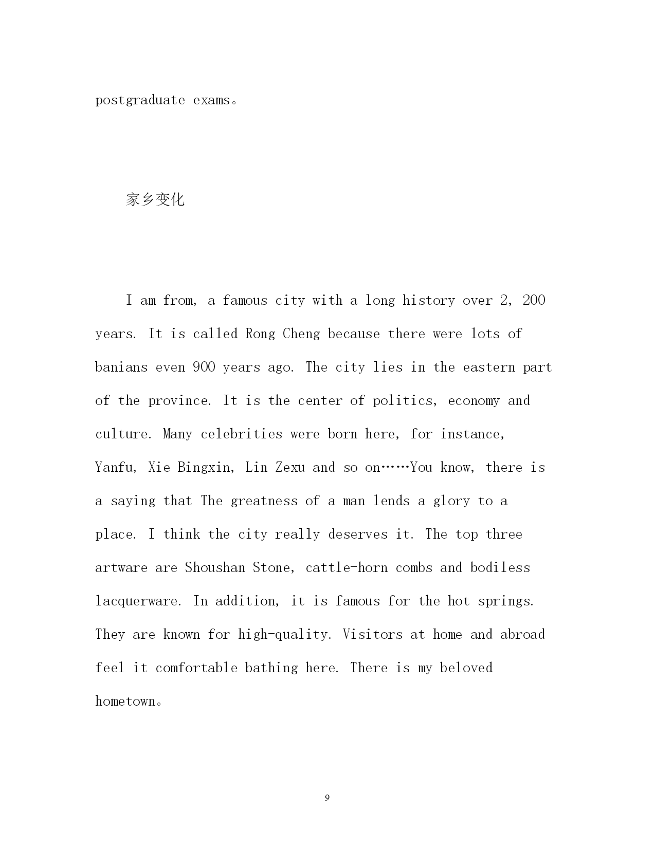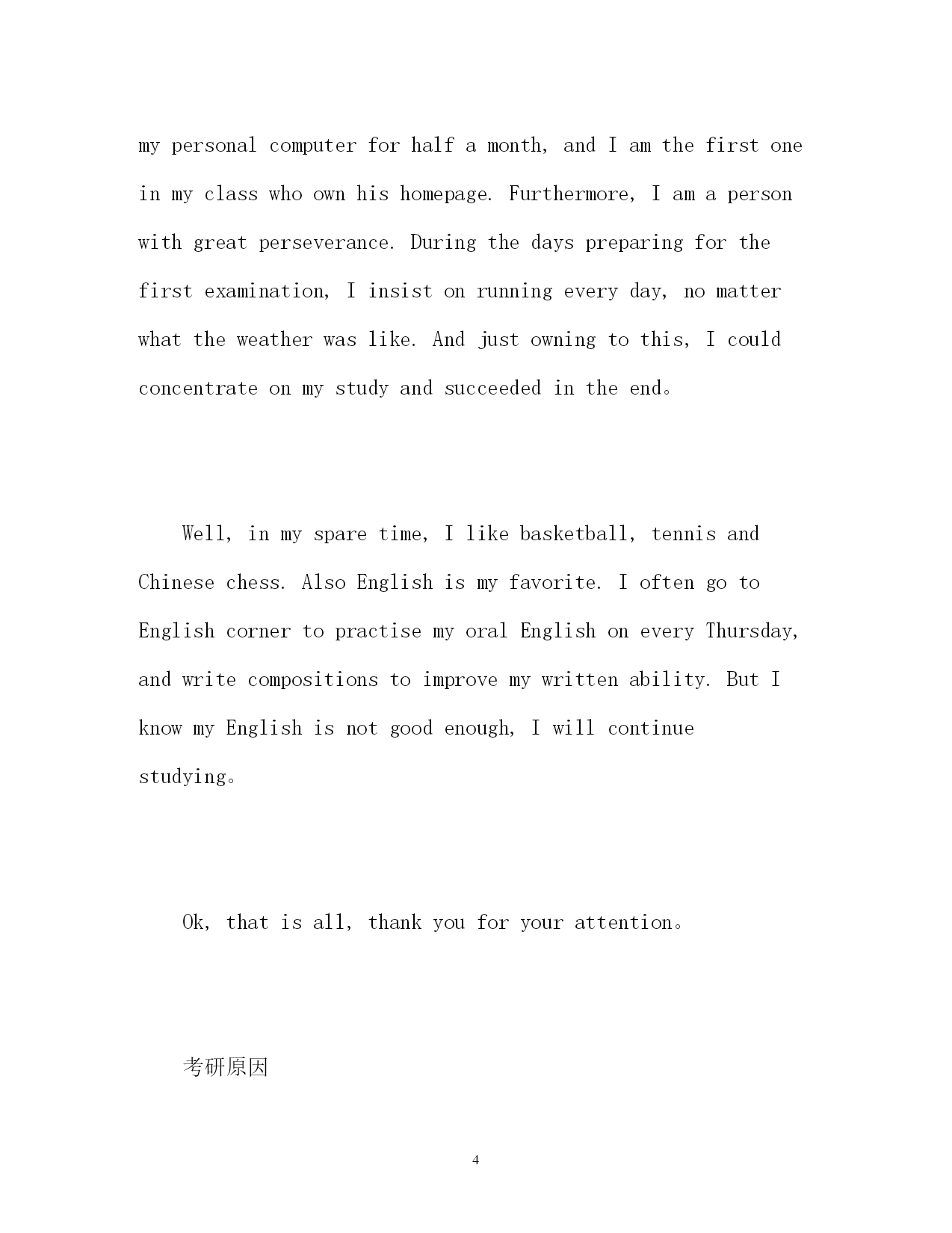 此资料由网络收集而来,如有侵权请告知上传者立即删除。资料共分享,我们负责传递知识。PAGEPAGE22研究生复试英语自我介绍精研究生复试英语自我介绍范文(精)得到考研复试的你准备好了优秀的能代表自己特色的英文自我介绍了没,还没有也不要紧,下面是小编为你们收集整理的研究生复试英语自我介绍范文。希望对你有帮助。研究生复试英语自我介绍Goodmorning.Iamgladtobehereforthisinterview.Firstletmeintroducemyself.Mynameis***,24.Icomefrom******,thecapitalof*******Province.Igraduatedfromthe*******departmentof*****UniversityinJuly,2001.InthepasttwoyearsIhavebeenpreparingforthepostgraduateexaminationwhileIhavebeenteaching*****inNO.****middleSchoolandIwasahead-teacherofaclassinjuniorgradetwo.NowallmyhardworkhasgotaresultsinceIhaveachancetobeinterviewedbyyou。Iamopen-minded,quickinthoughtandveryfondofhistory.Inmysparetime,Ihavebroadinterestslikemanyotheryoungers.Ilikereadingbooks,especiallythoseabout*******.FrequentlyIexchangewithotherpeoplebymakingcommentsintheforumonline.Inaddition,duringmycollegeyears,IwasonceaNet-bartechnician.So,Ihaveacomparativegoodcommandofnetworkapplication.Iamabletooperatethecomputerwell.IamskillfulinsearchingforinformationonInternet.Iamafootballfanforyears.Italianteamismyfavorite.Anyway,Ifeelgreatpityforourcountry’steam。Ialwaysbelievethatonewilleasilylagbehindunlesshekeepsonlearning.Ofcourse,ifIamgivenachancetostudy******inthisfamousUniversity,Iwillsparenoefforttomasteragoodcommandofadvance******。Goodmorning,mydearteachers,mydearprofessors.Iamverygladtobehereforyourinterview.MynameisSongYonghao,Iam22yearsold.IcomefromLuoyang,averybeautifulancientcity.myundergraduateperiodwillbeaccomplishedinChang’’anuniversityinJuly,2004;andnow,IamtryingmybestforobtainingakeytoTongjiUniversity。Generallyspeaking,IamahardworkingstudentespeciallydothethingIaminterestedin.Iwilltrymybesttofinishitnomatterhowdifficultitis.WhenIwassophomore,Ifoundwebdesignveryinteresting,soIlearneditveryhard.Toweaverahomepageformyself,Istayedwithmypersonalcomputerforhalfamonth,andIamthefirstoneinmyclasswhoownhishomepage.Furthermore,Iamapersonwithgreatperseverance.Duringthedayspreparingforthefirstexamination,Iinsistonrunningeveryda