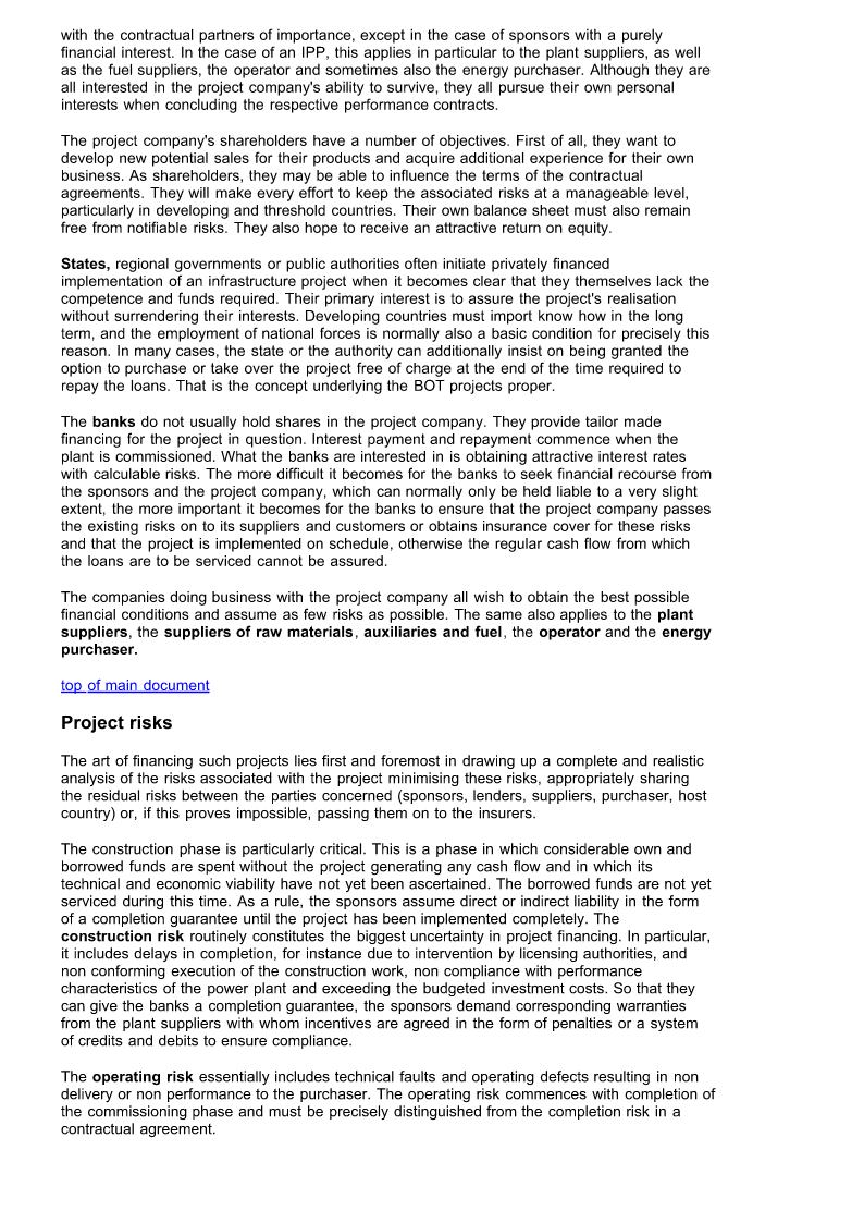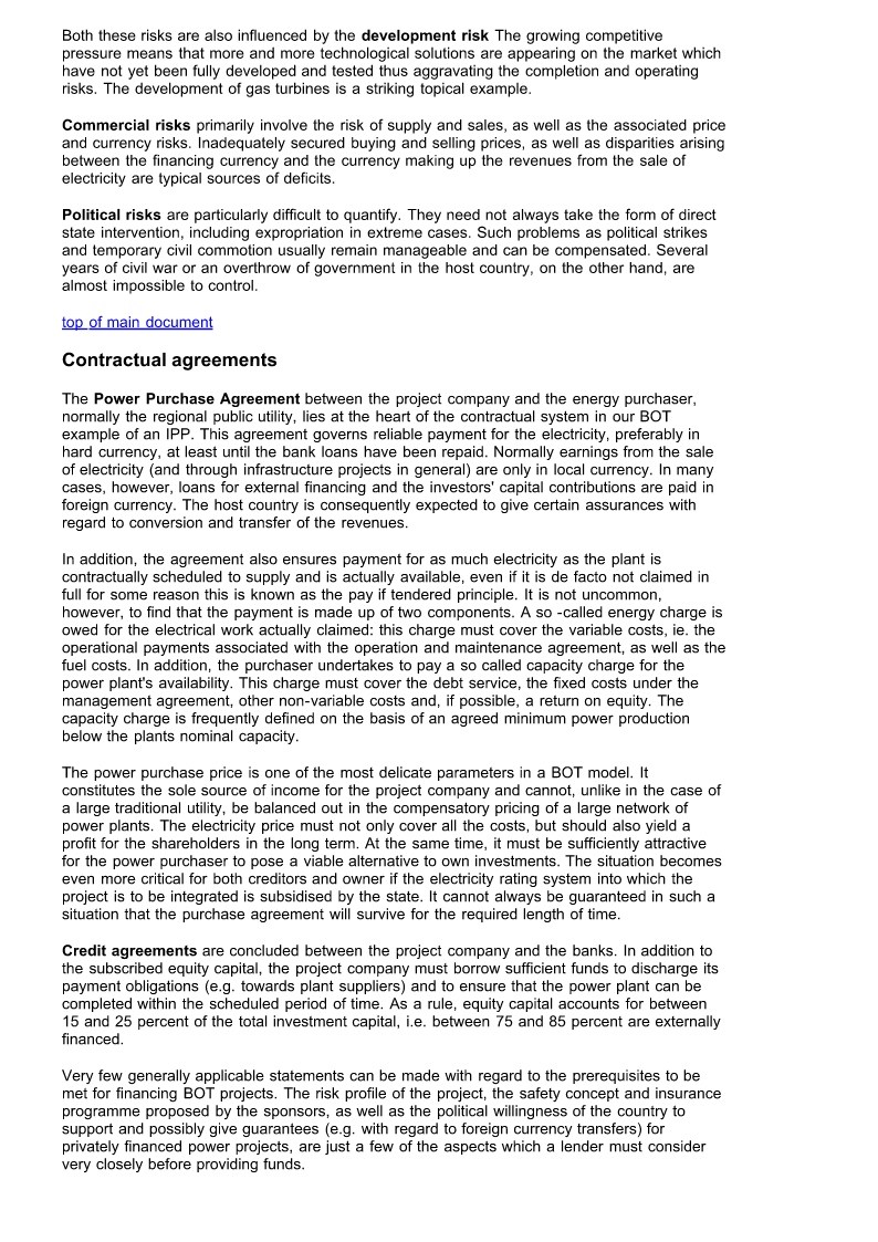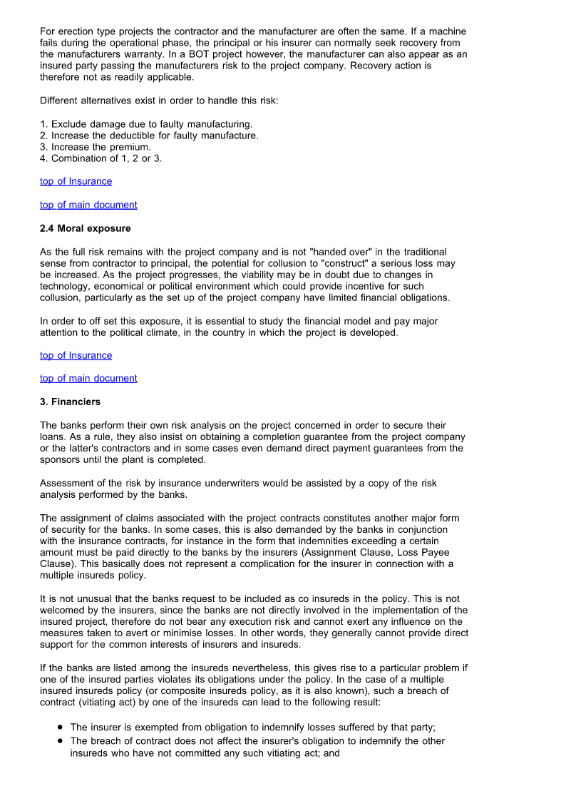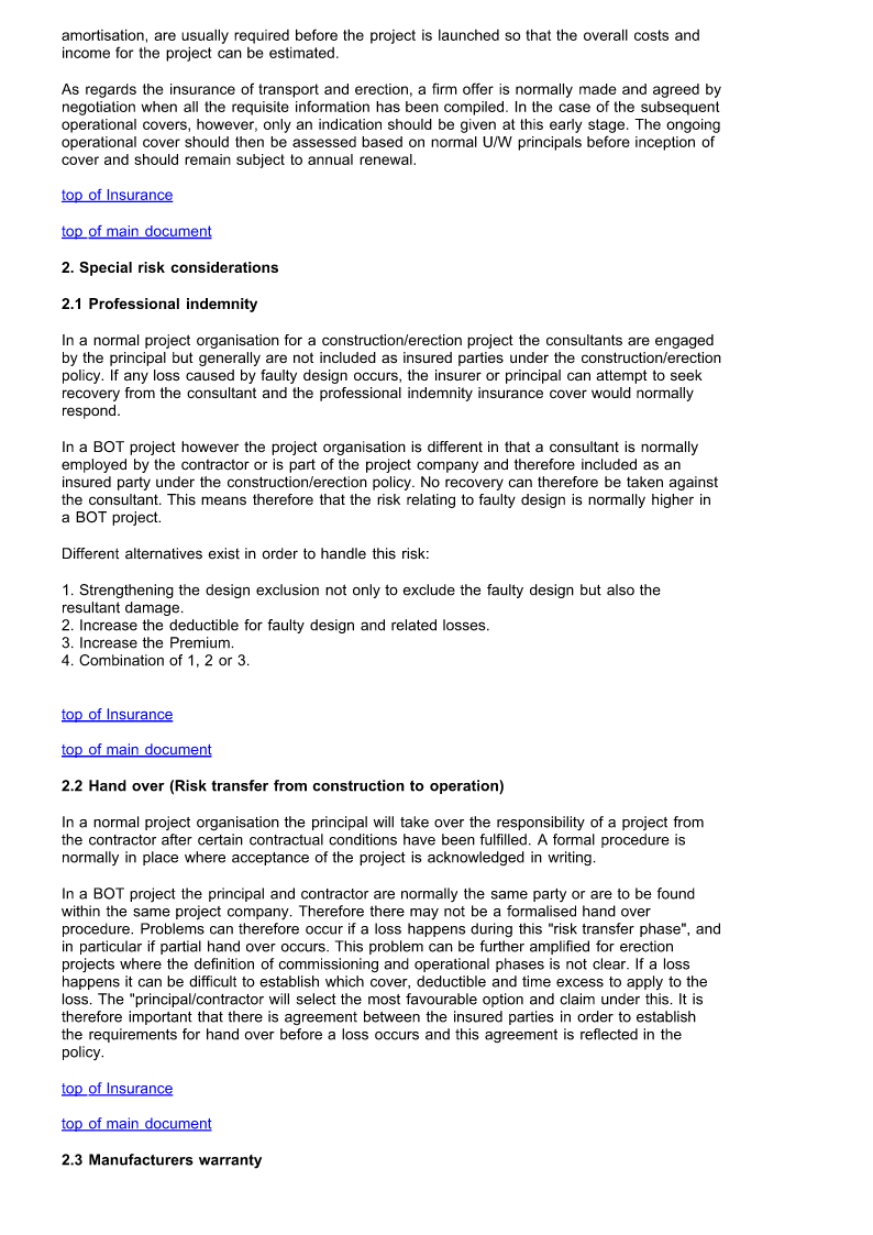 IMIA16-67(97)EINSURANCEOFBOTPROJECTSachallengeandanopportunityPresentedby:G.Ebner,H.Huppman,B.Jendren,H-B.Schittek,I.ZollerIMIAmeetingSunCitySouthAfricaNovember1997IntroductionProjectRisksSummary-KeypointsContractualAgreementsExample-DevelopmentofaInsurancePowerPlantProjectExamplesfromtheFieldofPartiesconcernedandtheirConstruction/ErectionInsuranceInterestsManagementSummaryThispaperdealswiththenewtrendinInfraStructureProjectswherePrivateCompaniesareformedinordertoBuild,OwnandOperatesuchprojectsandlateronhandthemovertoPublicInterests,ifatall.ThepapergivesanexampleofthestructureandarrangementsmadeinrespectofthedevelopmentofaPowerPlantProject.Furthermoreitdescribes"new"insurancerisksaccentuatedasaconsequenceofsuchprojectsandlistsanumberofongoingorcompletedBOTprojects.IntroductionBOTistheterminologyforamodelorstructurethatusesprivateinvestmenttoundertaketheinfrastructuredevelopmentthathashistoricallybeenthepreserveofthepublicsector.Thereisagrowingdemandforprivatelyfinancedinvestment(PFI)capitalfordifferentdevelopments,asthepublicsectorissurrenderingmoreandmoreofitsresponsibilityandfinancingoflongterminvestments."Projectfinance"isthecornerstoneoftheBOTapproach.Itmeansessentiallythatlenderslooktotheproject'sassetsandrevenuestreamforrepaymentratherthantoothersourcesofsecuritysuchasgovernmentguaranteesortheassetsoftheprojectsponsors.TheacronymBOTstandsfor"build,operateandtransfer"or"build,ownandtransfer"(thetermsareusedinterchangeably).Thereareanumberofvariants,pleaseseebelow.Howeverforthepurposeofthispaper,theacronymBOTwillincludeallthesevariations.InaBOTproject,aprivatecompanyisgivenaconcessiontobuildandoperateafacilitythatwouldnormallybebuiltandoperatedbythegovernment.Thefacilitymightbeahospital,powerplant,airport,bridge,tollroad,tunnel,watertreatmentplant,communicationsystemstonameafew.Thecompanyisalsoresponsibleforfinancinganddesigningtheproject.Theshortageofpublicfundsandlackofefficiencyintheeconomicareashithertomanaged
