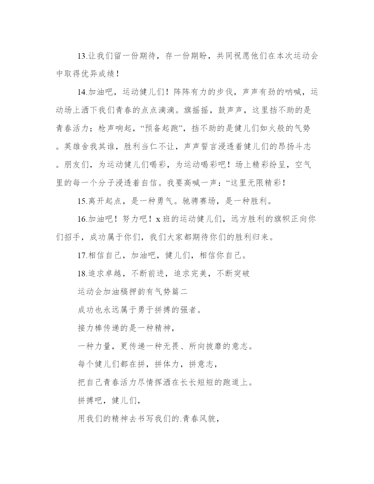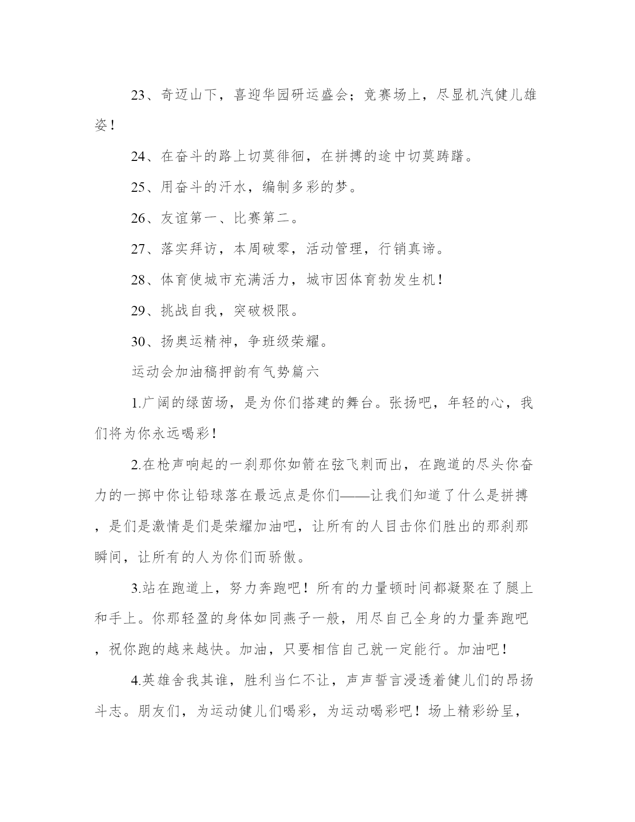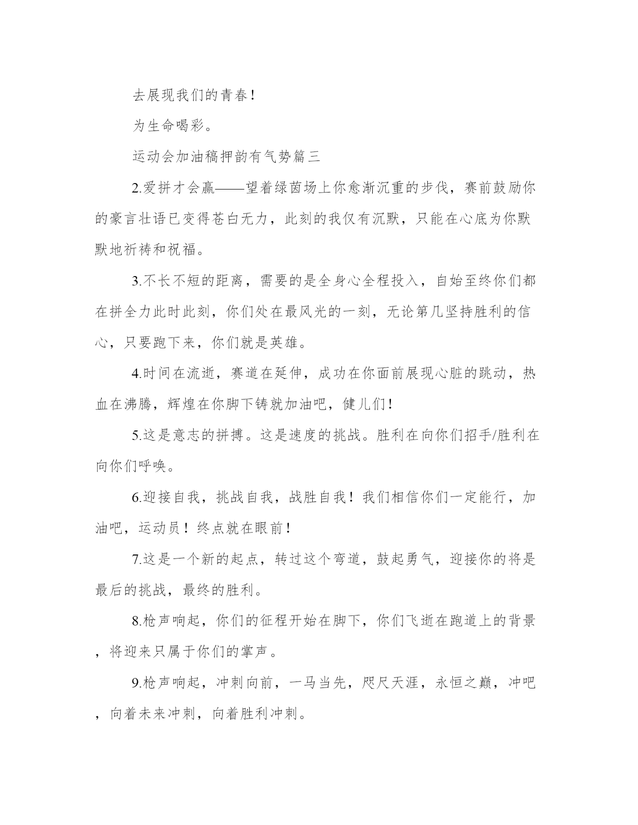 最新运动会加油稿押韵有气势 运动会押韵加油稿(通用15篇).docx