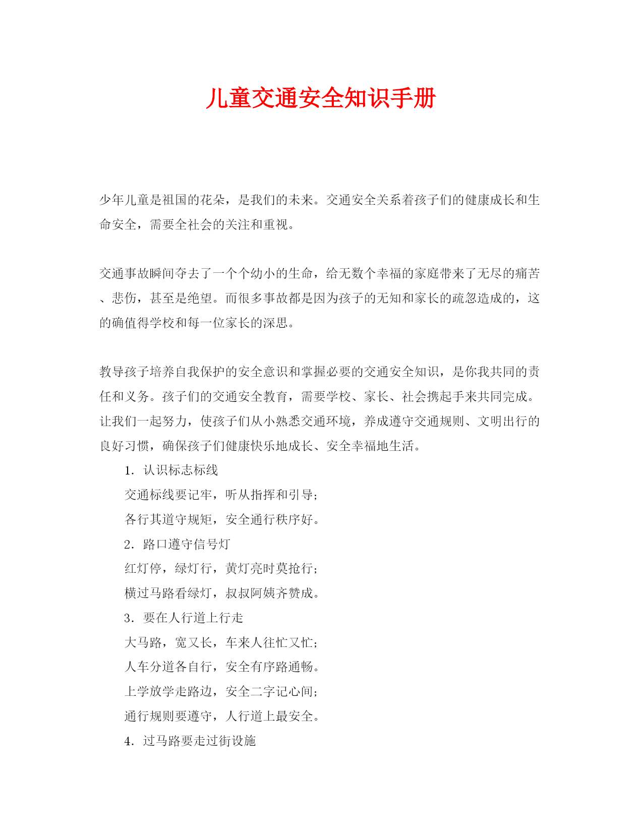 2022《安全常识灾害防范》之儿童交通安全知识手册.docx