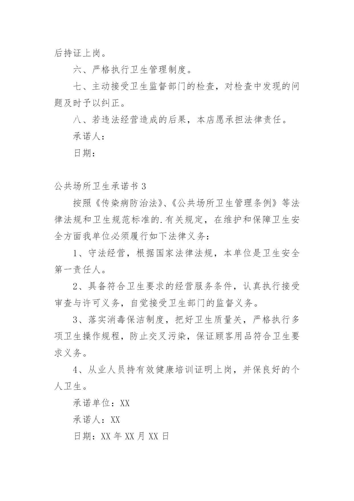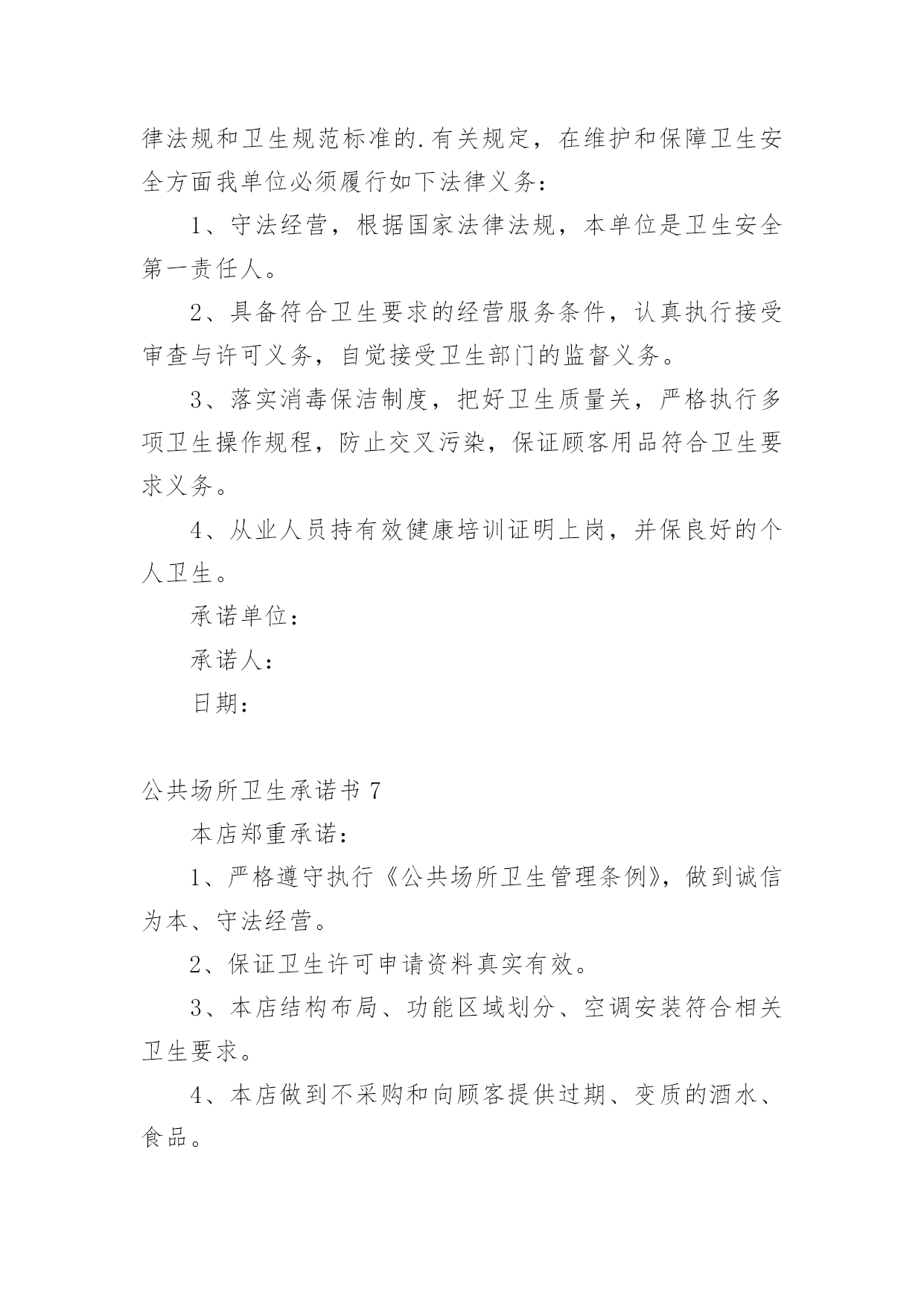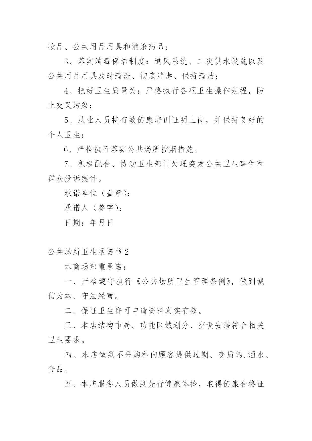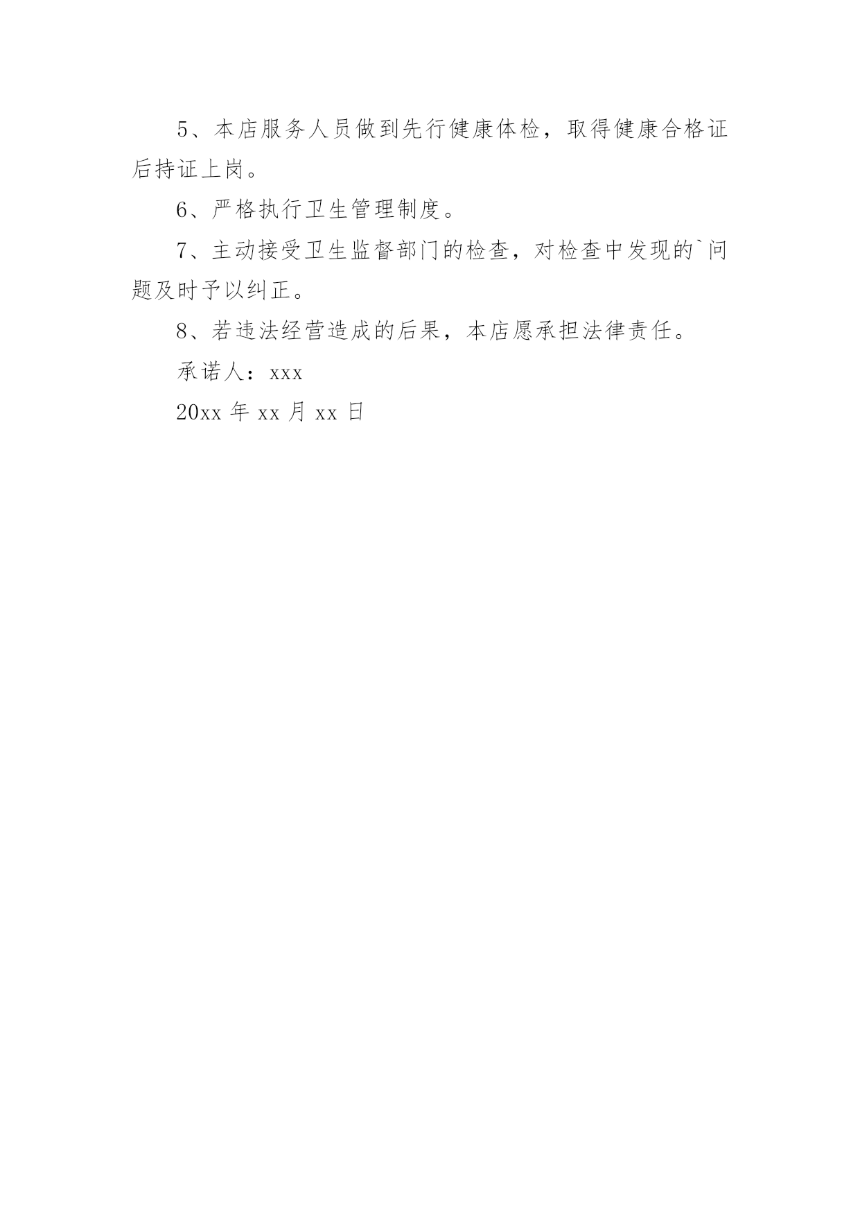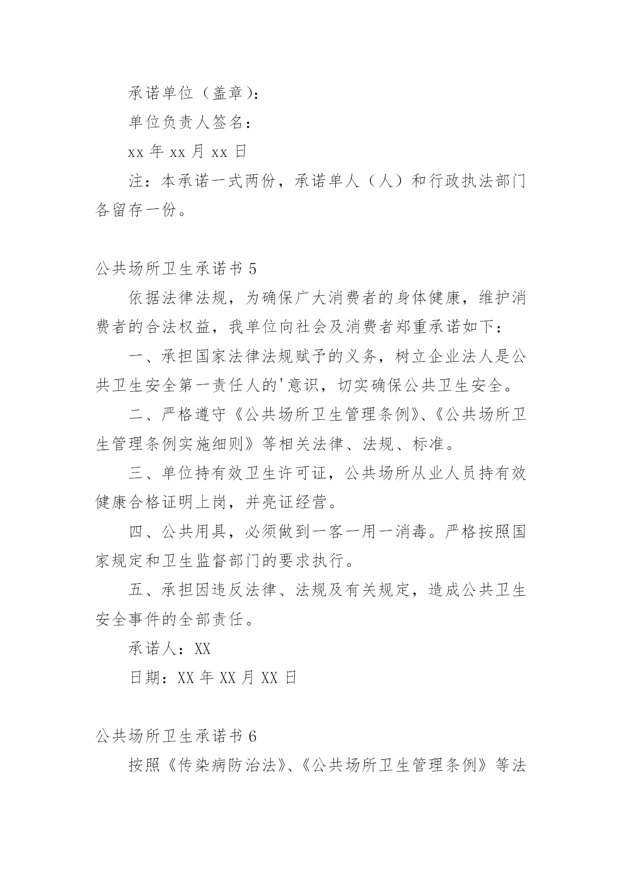 公共场所卫生承诺书现如今,承诺书的使用越来越广泛,承诺书本身虽无法律效力,但有约束作用,签下承诺书,就得考验诚信。相信许多人会觉得承诺书很难写吧,下面是小编整理的公共场所卫生承诺书,仅供参考,大家一起来看看吧。公共场所卫生承诺书1按照《传染病防治法》、《公共场所卫生管理条例》、《突发公共卫生事件应急条例》等法律法规和卫生规范标准的有关规定,在维护和保障卫生安全方面我单位必须履行如下法律义务:1、具备符合卫生要求的经营服务条件,接受审查与许可的义务;2、保证顾客用品用具符合卫生要求的.义务;3、接受卫生部门监督的义务;4、协助处理突发公共卫生事件和群众投诉的义务;5、服从和执行卫生行政部门行政决定的义务。据此,为保障消费者卫生安全,我单位郑重承诺如下:1、守法经营:根据国家法律法规,本单位是卫生安全第一责任人,对顾客消费的卫生安全负责;2、建立并执行采购索证制度,严把公共用品用具采购关:做好公共用品用具的进货验收与登记;不购买和使用无合法来源、无检验合格证明及其他不符合卫生要求的客用化妆品、公共用品用具和消杀药品;3、落实消毒保洁制度:通风系统、二次供水设施以及公共用品用具及时清洗、彻底消毒、保持清洁;4、把好卫生质量关:严格执行各项卫生操作规程,防止交叉污染;5、从业人员持有效健康培训证明上岗,并保持良好的个人卫生;6、严格执行落实公共场所控烟措施。7、积极配合、协助卫生部门处理突发公共卫生事件和群众投诉案件。承诺单位(盖章):承诺人(签字):日期:年月日公共场所卫生承诺书2本商场郑重承诺:一、严格遵守执行《公共场所卫生管理条例》,做到诚信为本、守法经营。二、保证卫生许可申请资料真实有效。三、本店结构布局、功能区域划分、空调安装符合相关卫生要求。四、本店做到不采购和向顾客提供过期、变质的.酒水、食品。五、本店服务人员做到先行健康体检,取得健康合格证后持证上岗。六、严格执行卫生管理制度。七、主动接受卫生监督部门的检查,对检查中发现的问题及时予以纠正。八、若违法经营造成的后果,本店愿承担法律责任。承诺人:日期:公共场所卫生承诺书3按照《传染病防治法》、《公共场所卫生管理条例》等法律法规和卫生规范标准的.有关规定,在维护和保障卫生安全方面我单位必须履行如下法律义务:1、守法经营,根据国家法律法规,本单位是卫生安全第一责任人。2、具备符合卫生要求的经营服务条件,认真执行接受审查与许可义务,自觉接受卫生部门的监督义务。3、落实消毒保洁制度,把好卫生质量关,严格执行多项卫生操作规程,防止交叉污染,保证顾客用品符合卫生要求义务。4、从业人员持有效健康培训证明上岗,并保良好的个人卫生。承诺单位:XX承诺人:XX日期:XX年XX月XX日公共场所卫生承诺书4按照《公共场所卫生管理条例》、《公共场所卫生监管条例实施细则》、《天津市公共场室内空气质量管理规定》等法律法规和卫生规范标准的有关要求,创造良好的公共场所卫生条件,保障顾客身体健康,现郑重承诺如下:一、公共场所负责人(法定代表人)为公共卫生安全的第一责任人,对本单位的公共卫生安全负全面责任;二、建立健全的卫生管理制度,配备专职或兼职卫生管理人员,对公共场所用品用具(化妆品等)落实进货查验制度、索证索票制度,并按制度做好本单位的各项卫生管理工作;三、从业人员每年进行健康检查和卫生知识培训考核,持健康证和培训合格证上岗;四、做到场所内通风良好,空气质量符合《天津市公共场所室内空气质量管理规定》的`要求;五、配置公共用具清洗消毒设施,保证能正常使用,公共用品用具等做到一客一换一消毒并保洁;六、认真学习并履行《公共场所卫生管理条例》、《公共场所卫生管理条例实施细则》的其他卫生要求;七、公共场所应完善突发事件应对机制,一旦发生突发事件,要及时做好处置工作,并立即向监管部门报告。以上承诺均为本人(单位)真实意思的表达,因违反承诺,而引发的一切法律后果由本人(单位)自行承担。承诺单位(盖章):单位负责人签名:xx年xx月xx日注:本承诺一式两份,承诺单人(人)和行政执法部门各留存一份。公共场所卫生承诺书5依据法律法规,为确保广大消费者的身体健康,维护消费者的合法权益,我单位向社会及消费者郑重承诺如下:一、承担国家法律法规赋予的义务,树立企业法人是公共卫生安全第一责任人的'意识,切实确保公共卫生安全。二、严格遵守《公共场所卫生管理条例》、《公共场所卫生管理条例实施细则》等相关法律、法规、标准。三、单位持有效卫生许可证,公共场所从业人员持有效健康合格证明上岗,并亮证经营。四、公共用具,必须做到一客一用一消毒。严格按照国家规定和卫生监督部门的要求执行。五、承担因违反法律、法规及有关规定,造成公共卫生安全事件的全部责任。承诺人:XX日期:XX年XX月XX日公共场所卫生承诺书6按照《传染病防治法》、《公共场所卫生
