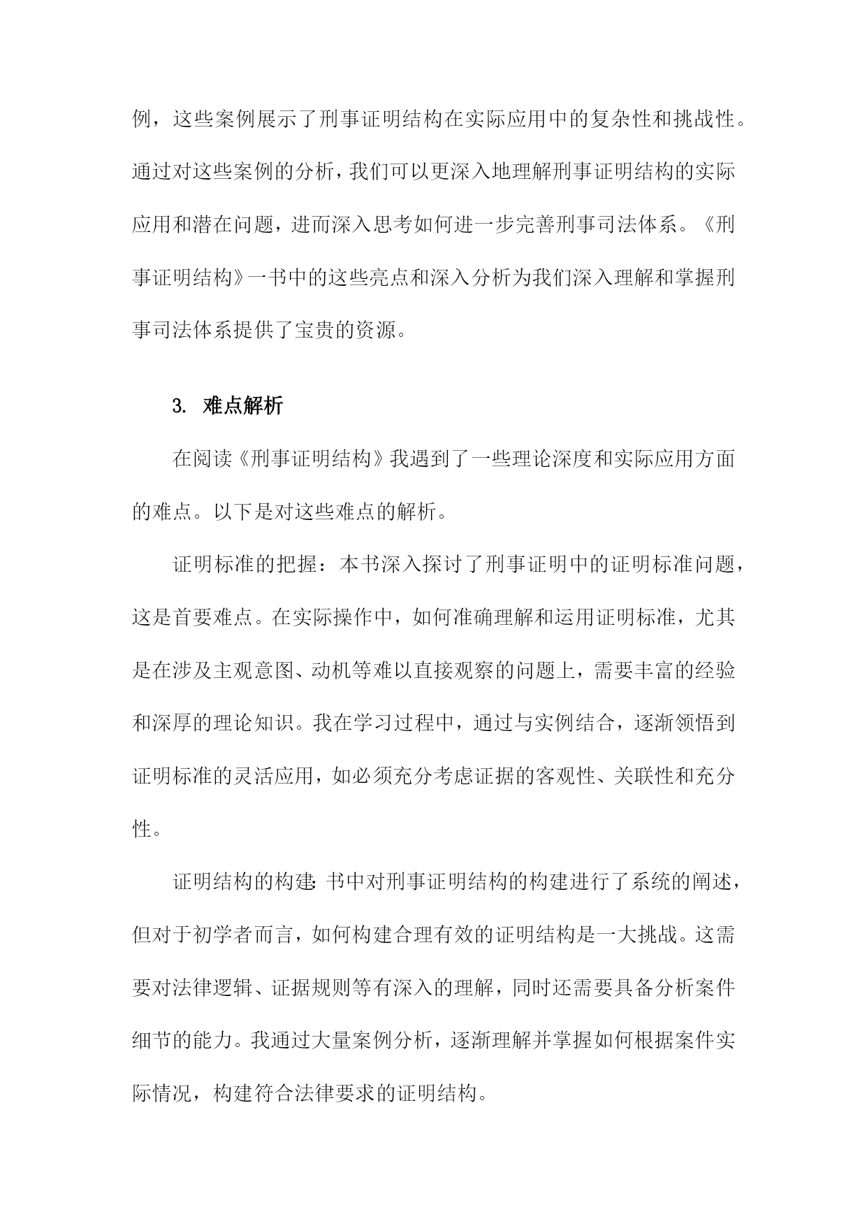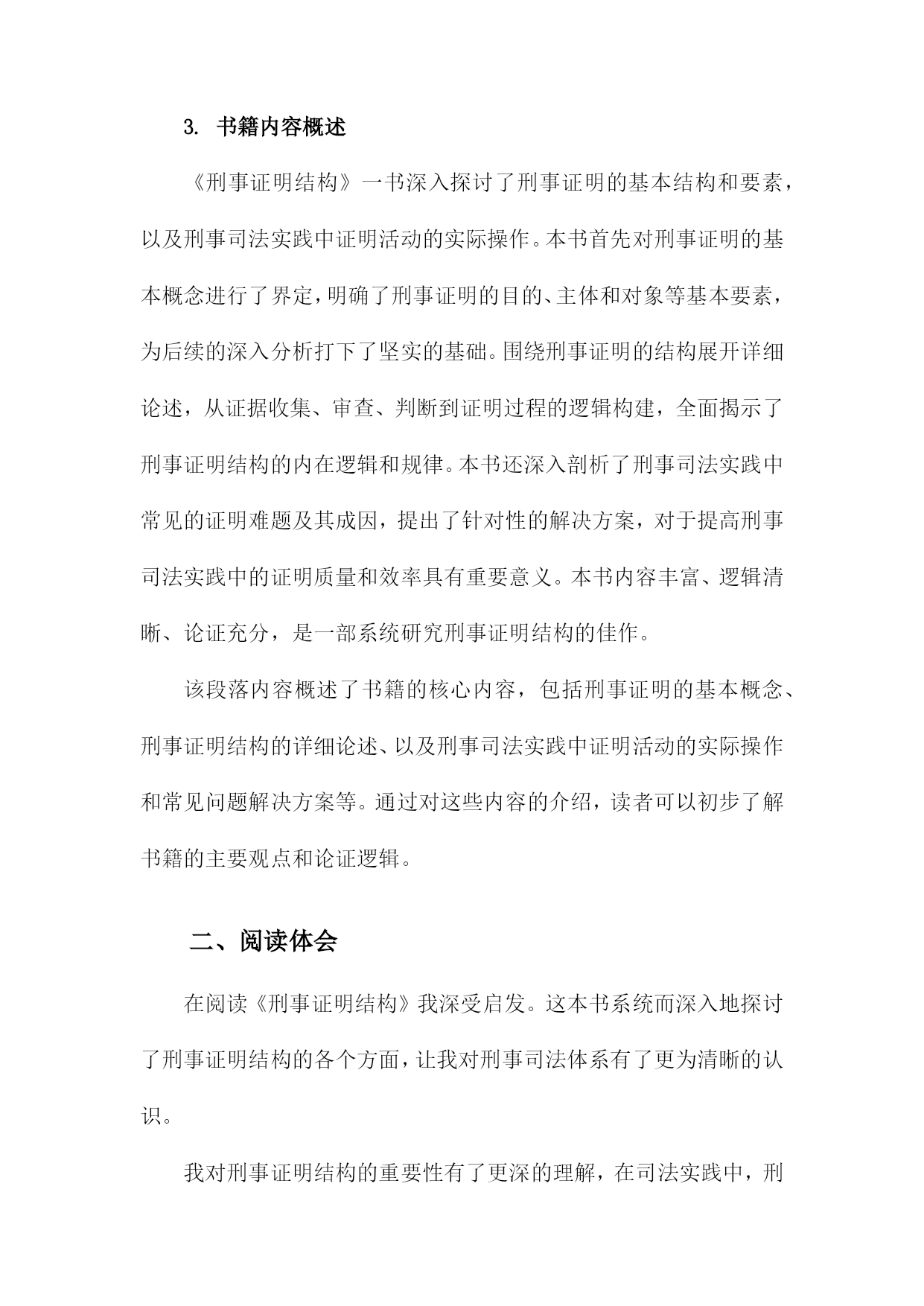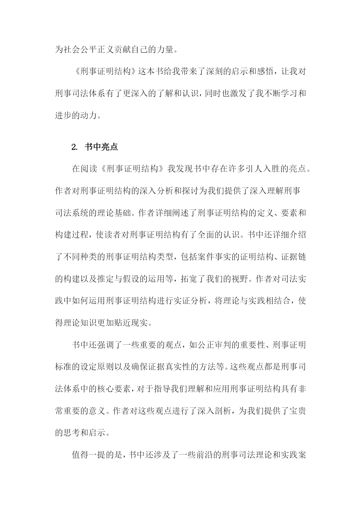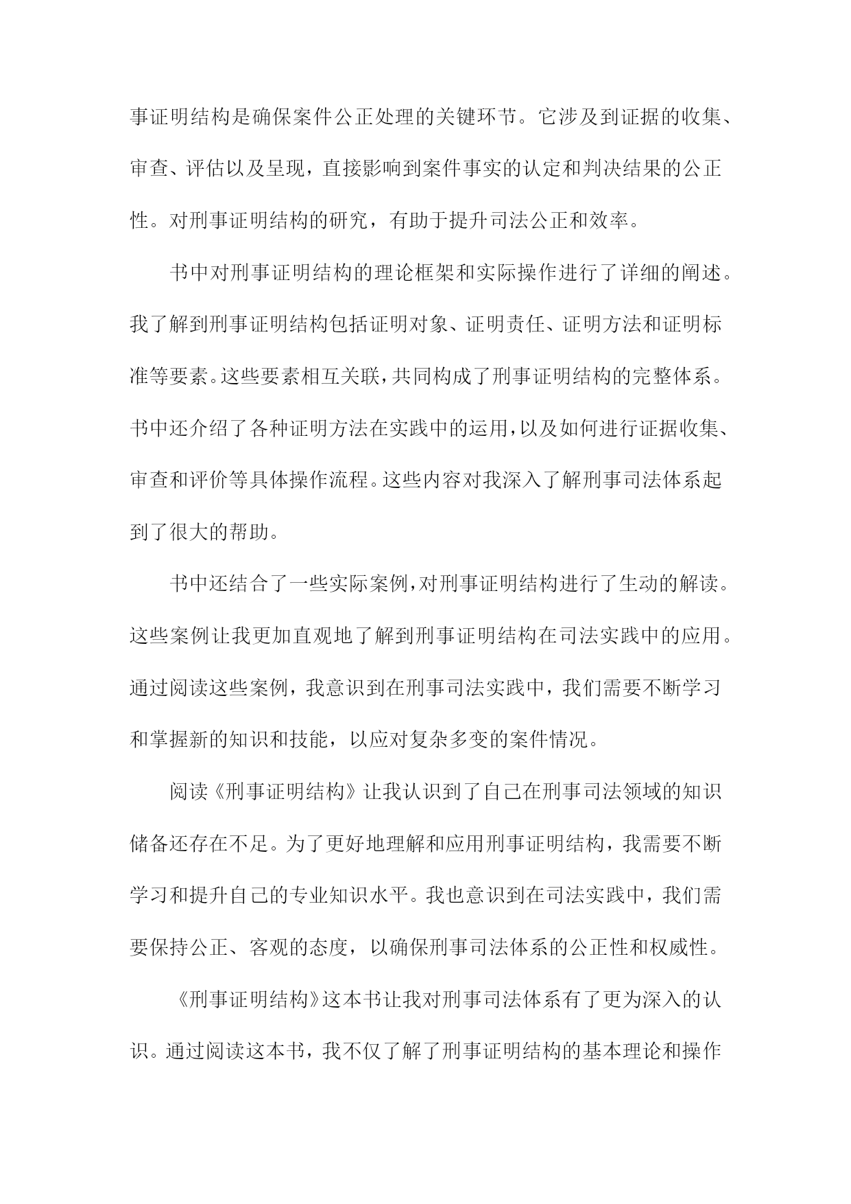 《刑事证明结构》读书札记一、书籍概述《刑事证明结构》是一部关于刑事司法体系中的证明要素及其结构的系统性研究著作。本书深入剖析了刑事司法实践中证明活动的内在逻辑和规律,对于理解刑事案件的证明过程具有重要价值。在阅读这部著作时,我深受启发,对于刑事司法领域的理论及实践有了更深的理解与认识。以下是关于这部书籍的概述。本书首先介绍了刑事证明结构的基本概念,阐述了其在刑事司法体系中的核心地位和作用。作者详细分析了刑事证明结构的构成要素,包括证明主体、证明对象、证明方法、证明标准等,并对这些要素之间的关系进行了深入剖析。本书还从理论高度探讨了刑事证明结构的理论基础,介绍了国内外学者对于刑事证明结构的研究现状和发展趋势。在阅读本书过程中,我深刻认识到刑事证明结构在刑事司法体系中的重要性。合理的刑事证明结构能够确保司法公正,提高司法效率,保障人权。本书作者通过系统梳理刑事证明结构的基本框架和内在逻辑,为我们提供了一个全新的视角来审视和理解刑事司法实践中的证明活动。通过本书的学习,我不仅掌握了刑事证明结构的基本知识和理论,还学会了如何将这些理论应用到实际案件中。本书的理论深度和实践指导意义为我提供了宝贵的学习资源,使我对刑事司法领域的研究充满热情。书中一些新颖的观点和见解也激发了我对刑事司法领域未来发展的思考。1.作者介绍在我深入研读《刑事证明结构》这部著作的过程中,我深感其背后蕴含着深厚的法学理论功底与丰富的实践经验。这部作品的作者——XXX教授,是我深感敬佩的法学专家之一。他不仅在法学领域拥有深厚的学术背景,而且在刑事司法实践中有着丰富的经验。XXX教授毕业于国内一流的法学院,拥有法学博士学位。他在刑事法学领域的研究已经持续多年,发表了大量的学术论文和专著,为我国的法学发展做出了巨大的贡献。他的学术成果在国内外法学界都享有很高的声誉。XXX教授还曾在司法机关工作多年,对刑事司法实践有着深入的了解和丰富的经验。在创作《刑事证明结构》这部著作时,XXX教授结合了自己多年的学术研究和司法实践经验,对刑事证明结构的理论和实践进行了深入的探讨和研究。他的独到见解和深刻分析,使得这部著作成为刑事法学领域的经典之作。在了解这部作品背景的同时,对作者的了解也是不可或缺的。通过深入了解作者,我们可以更好地理解这部著作的深层含义和价值,从而更深入地掌握刑事证明结构的理论和实践。2.书籍背景在阅读《刑事证明结构》了解书籍的背景是至关重要的。该书作为一本专注于刑事司法领域的学术著作,其背景与当前的法治建设紧密相连。随着社会的进步和法治的完善,刑事司法体系逐渐受到越来越多的关注,刑事证明结构作为其中的重要组成部分,更是引起了学者和法律实务工作者的重视。在此背景下,《刑事证明结构》旨在深入探讨刑事证明的结构、原理及其在司法实践中的应用。作者作为长期研究刑事司法领域的专家,通过对国内外相关理论和实践的深入研究,撰写了这本著作。该书的内容涵盖了刑事证明结构的基本理论、发展历程、现实应用以及存在的问题等方面,为读者提供了一个全面、系统的认识框架。该书的出版也反映了当前学术界对于刑事司法领域的关注和研究热点,对于推动中国法治建设具有重要的参考价值。在阅读该书之前,了解这些背景信息有助于读者更好地理解和把握书中的内容,深入领会作者的观点和论述。这些背景信息也有助于读者将书中的理论知识与司法实践相结合,从而更好地应用于实际工作中。在阅读《刑事证明结构》时,对书籍背景的掌握是必不可少的。3.书籍内容概述《刑事证明结构》一书深入探讨了刑事证明的基本结构和要素,以及刑事司法实践中证明活动的实际操作。本书首先对刑事证明的基本概念进行了界定,明确了刑事证明的目的、主体和对象等基本要素,为后续的深入分析打下了坚实的基础。围绕刑事证明的结构展开详细论述,从证据收集、审查、判断到证明过程的逻辑构建,全面揭示了刑事证明结构的内在逻辑和规律。本书还深入剖析了刑事司法实践中常见的证明难题及其成因,提出了针对性的解决方案,对于提高刑事司法实践中的证明质量和效率具有重要意义。本书内容丰富、逻辑清晰、论证充分,是一部系统研究刑事证明结构的佳作。该段落内容概述了书籍的核心内容,包括刑事证明的基本概念、刑事证明结构的详细论述、以及刑事司法实践中证明活动的实际操作和常见问题解决方案等。通过对这些内容的介绍,读者可以初步了解书籍的主要观点和论证逻辑。二、阅读体会在阅读《刑事证明结构》我深受启发。这本书系统而深入地探讨了刑事证明结构的各个方面,让我对刑事司法体系有了更为清晰的认识。我对刑事证明结构的重要性有了更深的理解,在司法实践中,刑事证明结构是确保案件公正处理的关键环节。它涉及到证据的收集、审查、评估以及呈现,直接影响到案件事实的认定和判决结果的公正性。对刑事证明结构的研究,