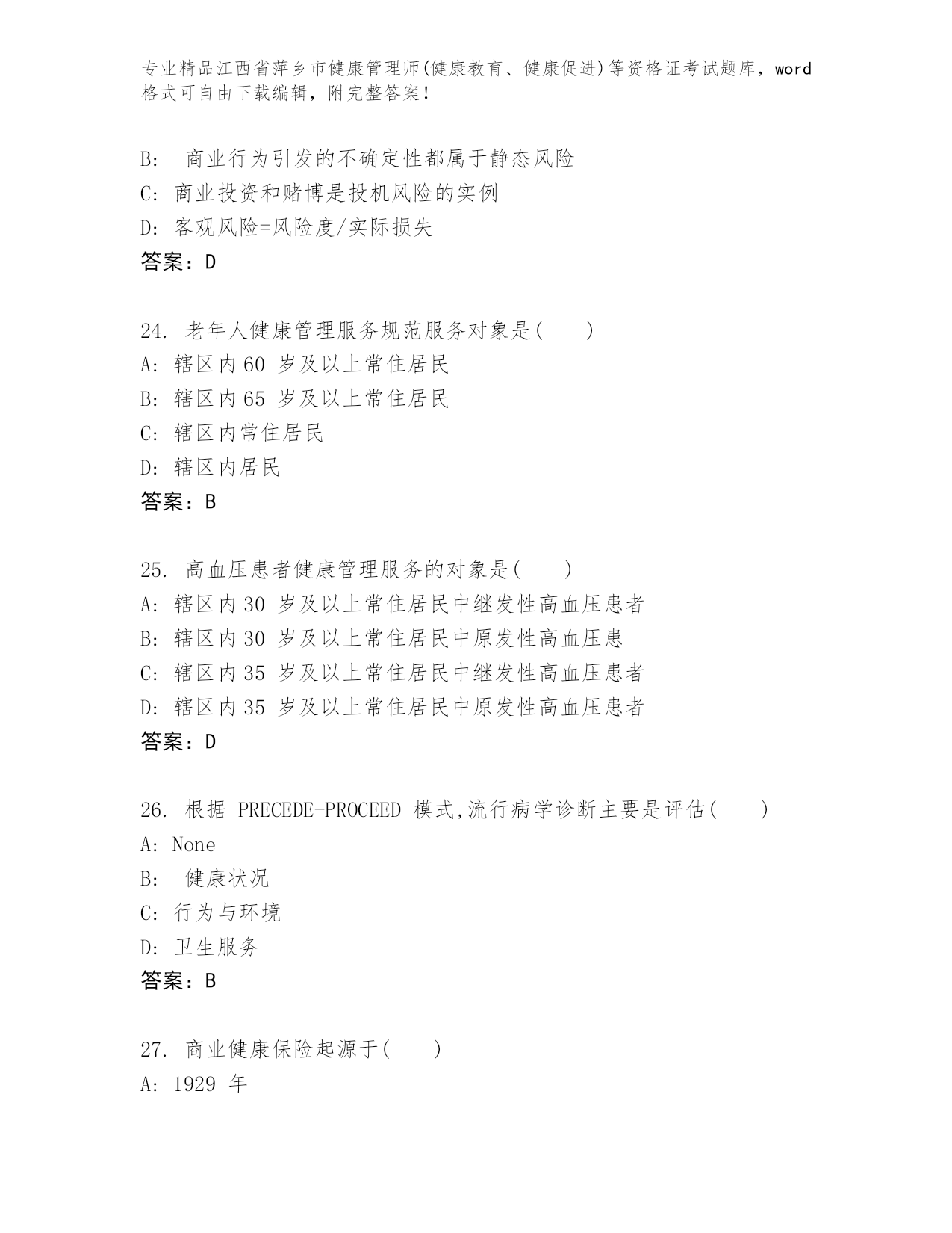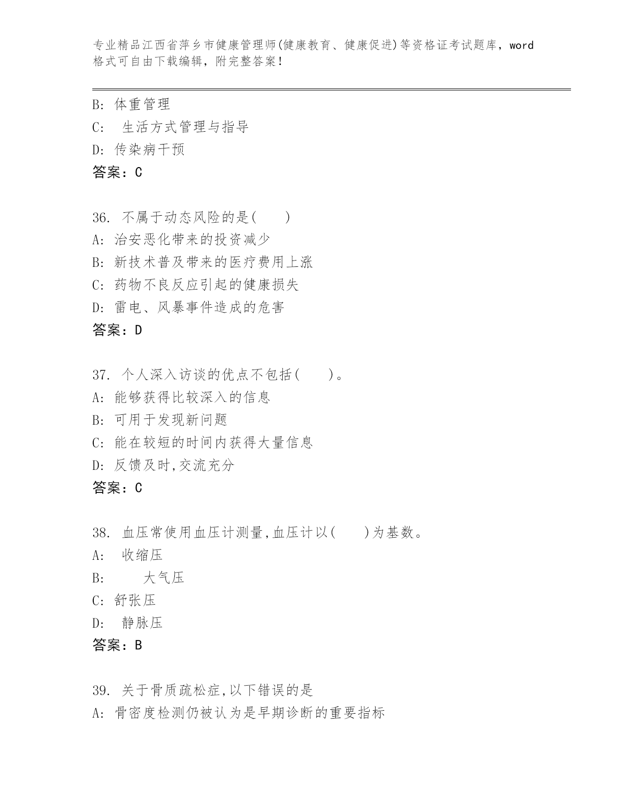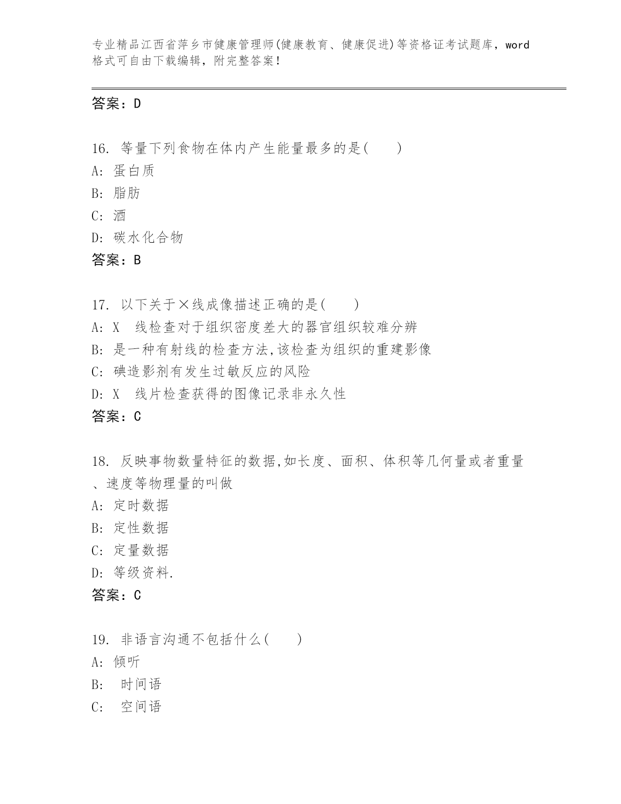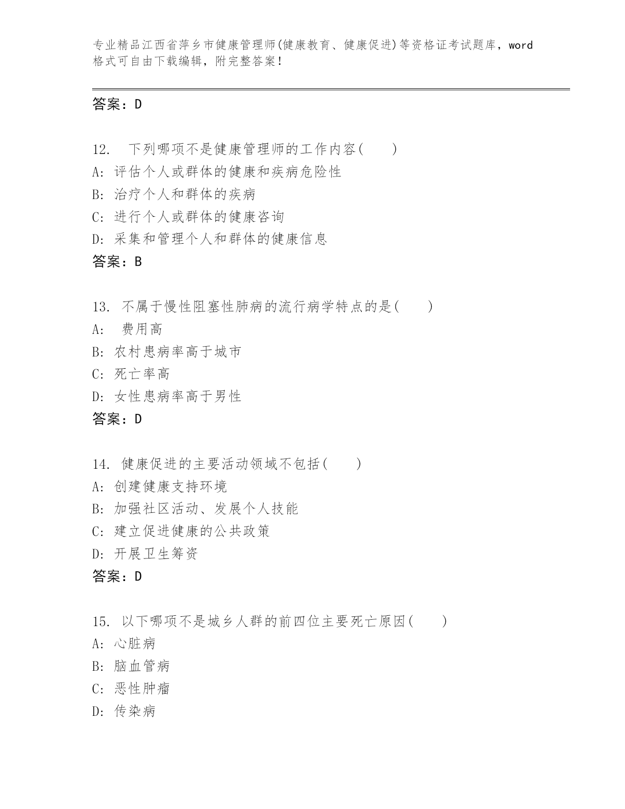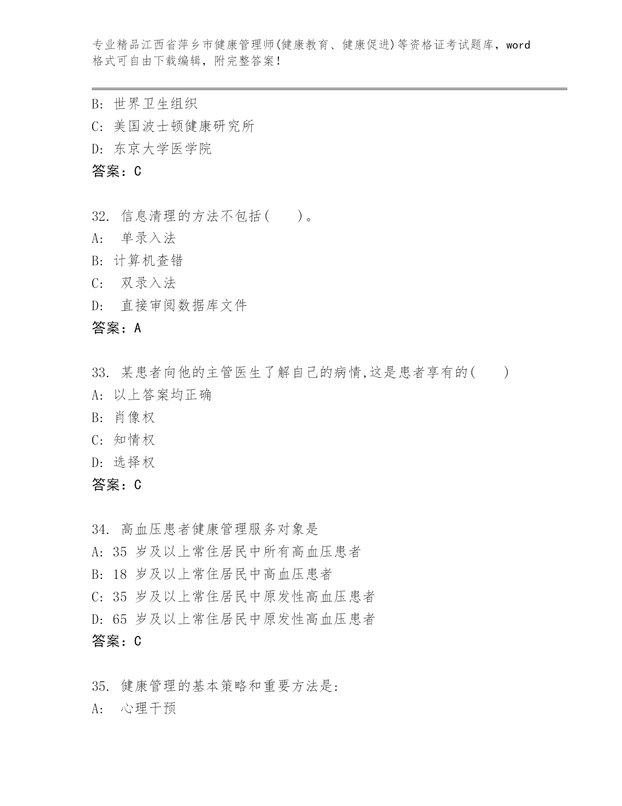 内部培训江西省萍乡市健康管理师(健康教育、健康促进)等资格证考试完整题库汇总