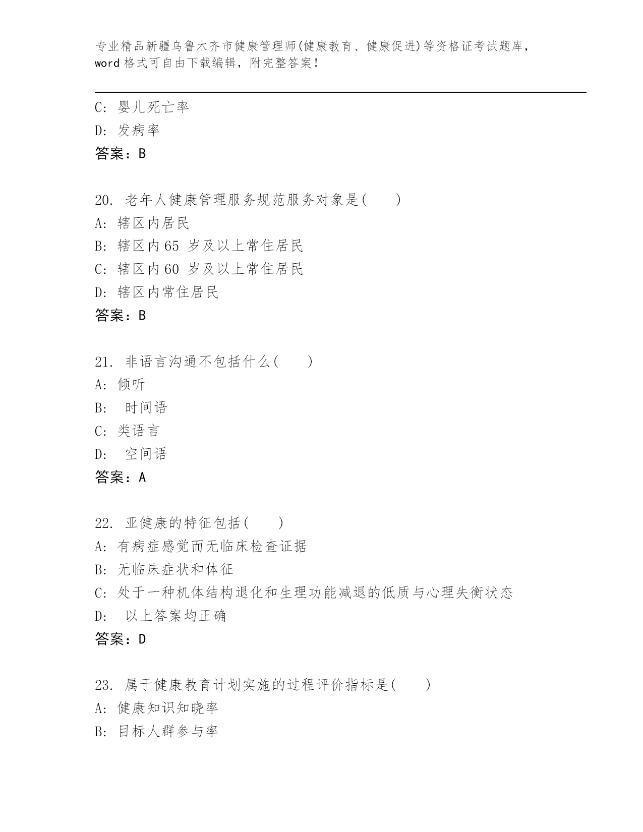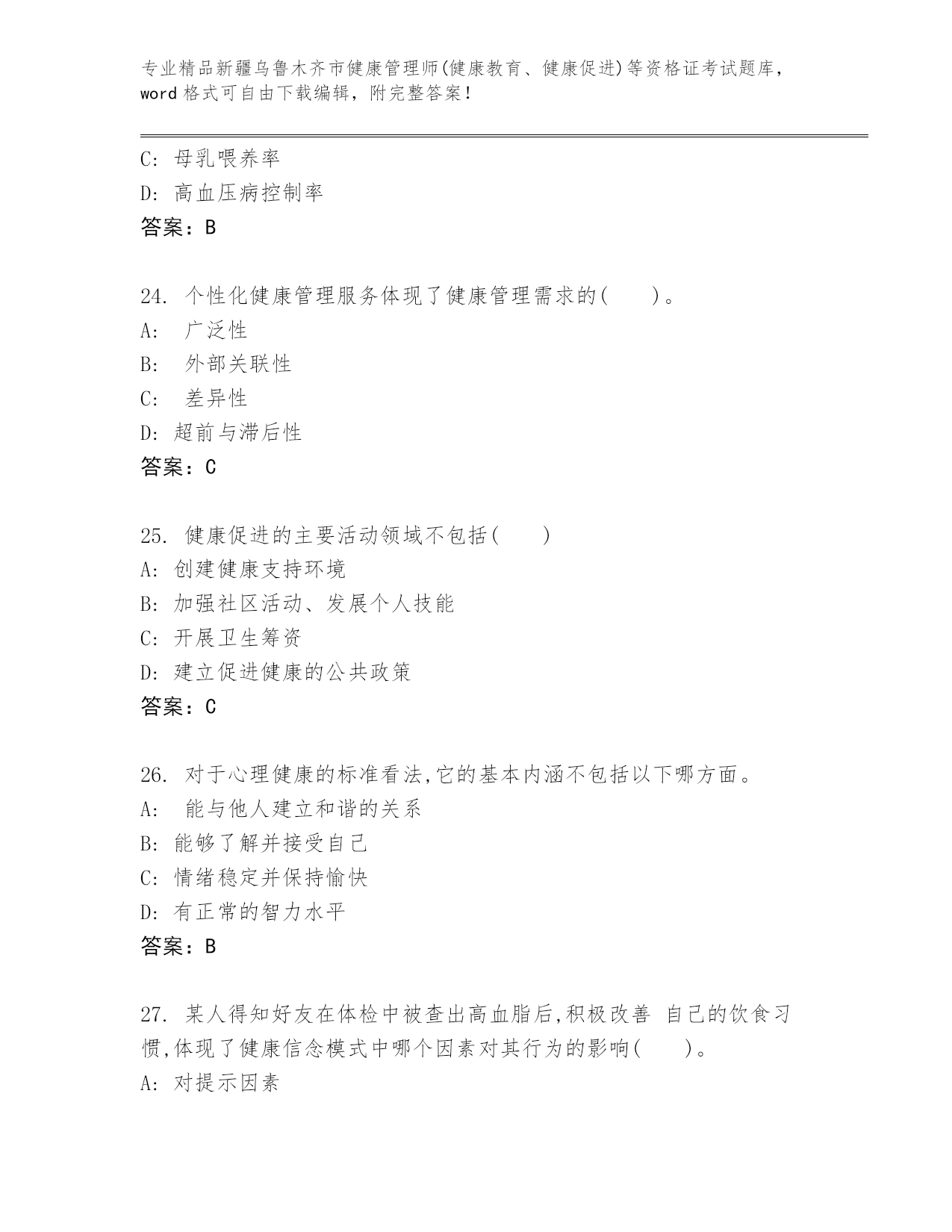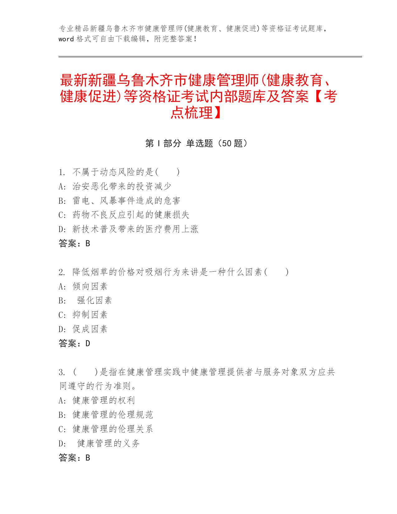 最新新疆乌鲁木齐市健康管理师(健康教育、健康促进)等资格证考试内部题库及答案【考点梳理】.docx