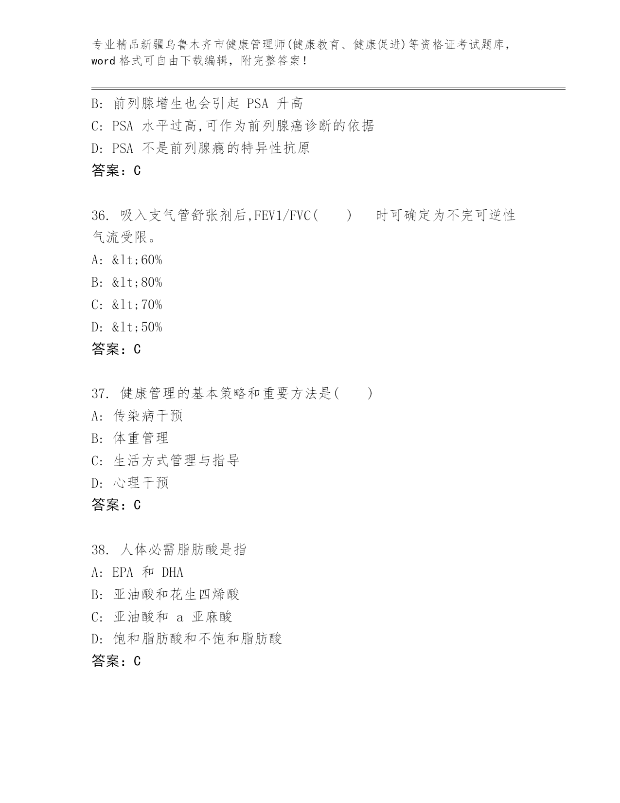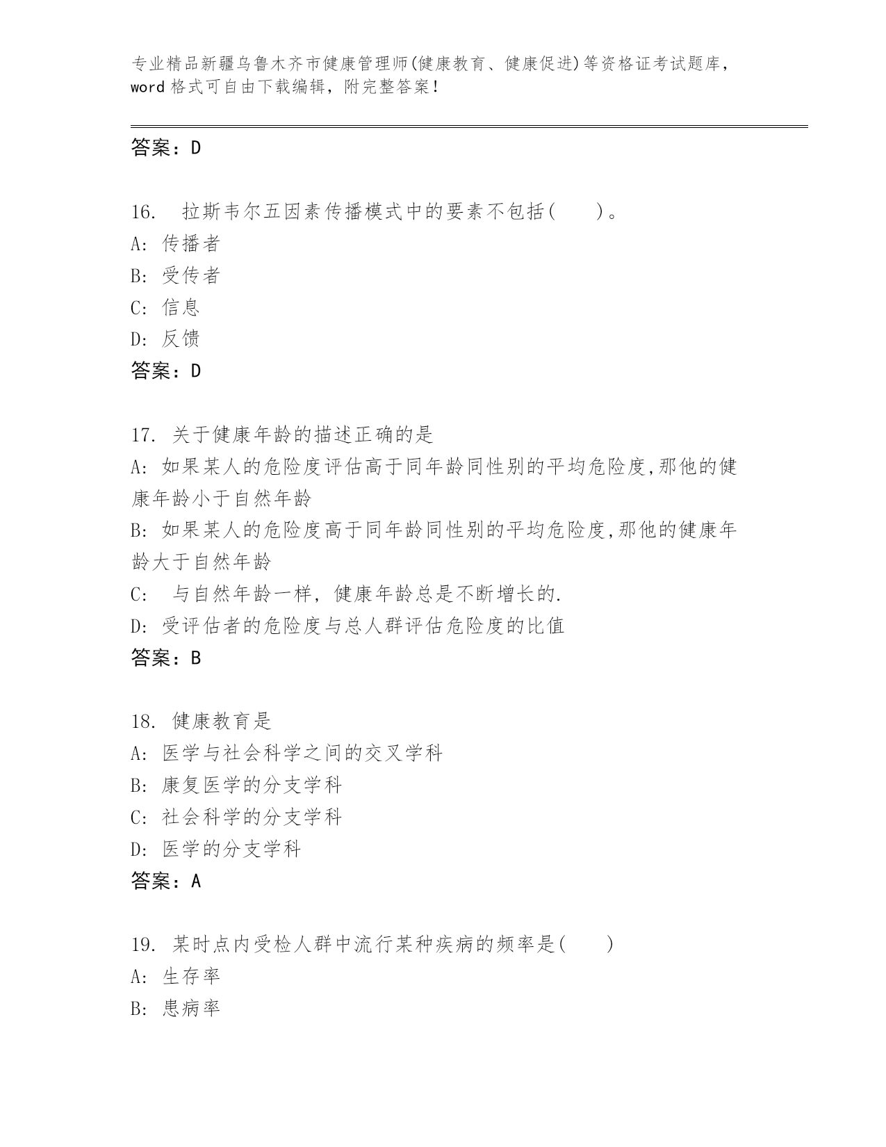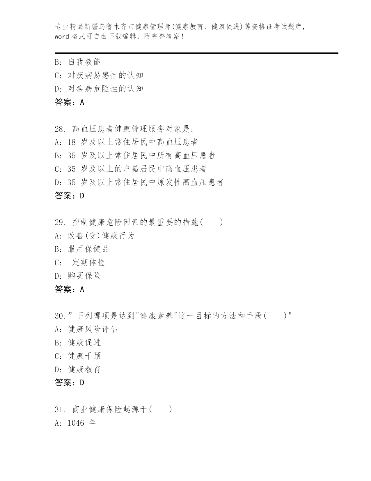 最新新疆乌鲁木齐市健康管理师(健康教育、健康促进)等资格证考试内部题库及答案【考点梳理】.docx