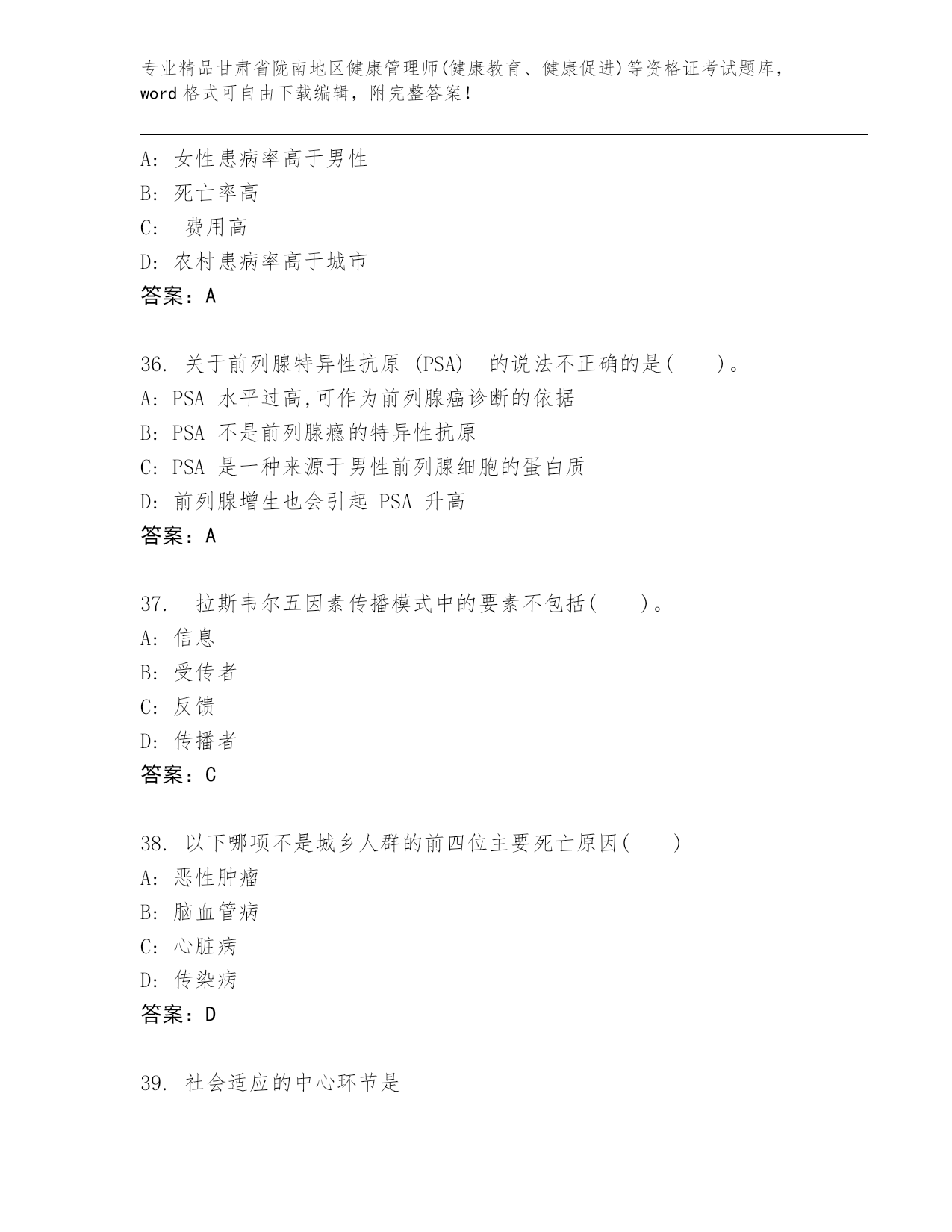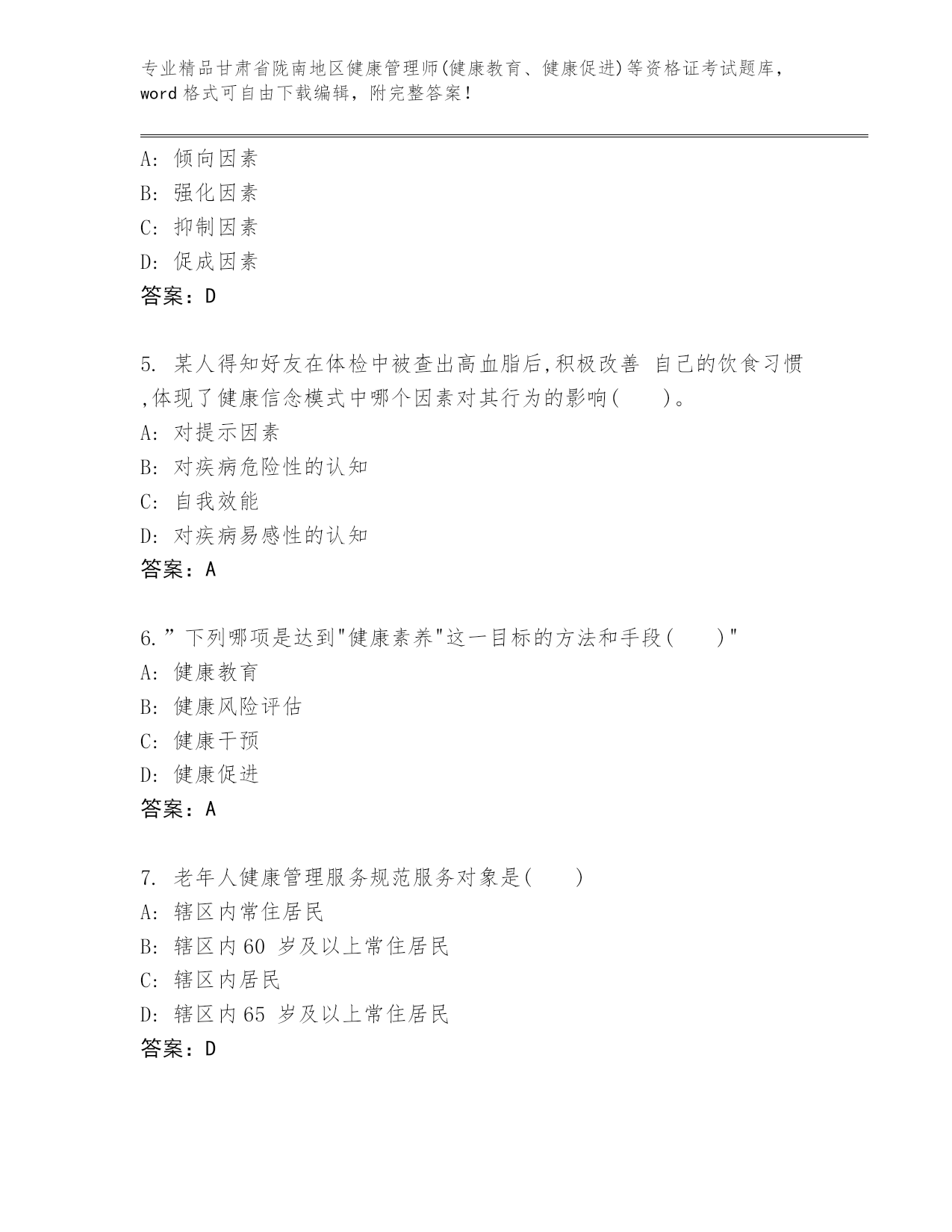 完整版甘肃省陇南地区健康管理师(健康教育、健康促进)等资格证考试【基础题】.docx