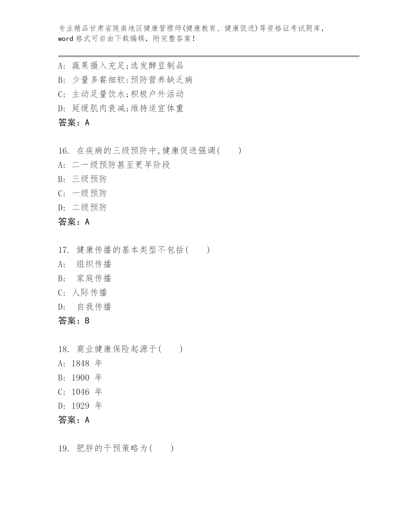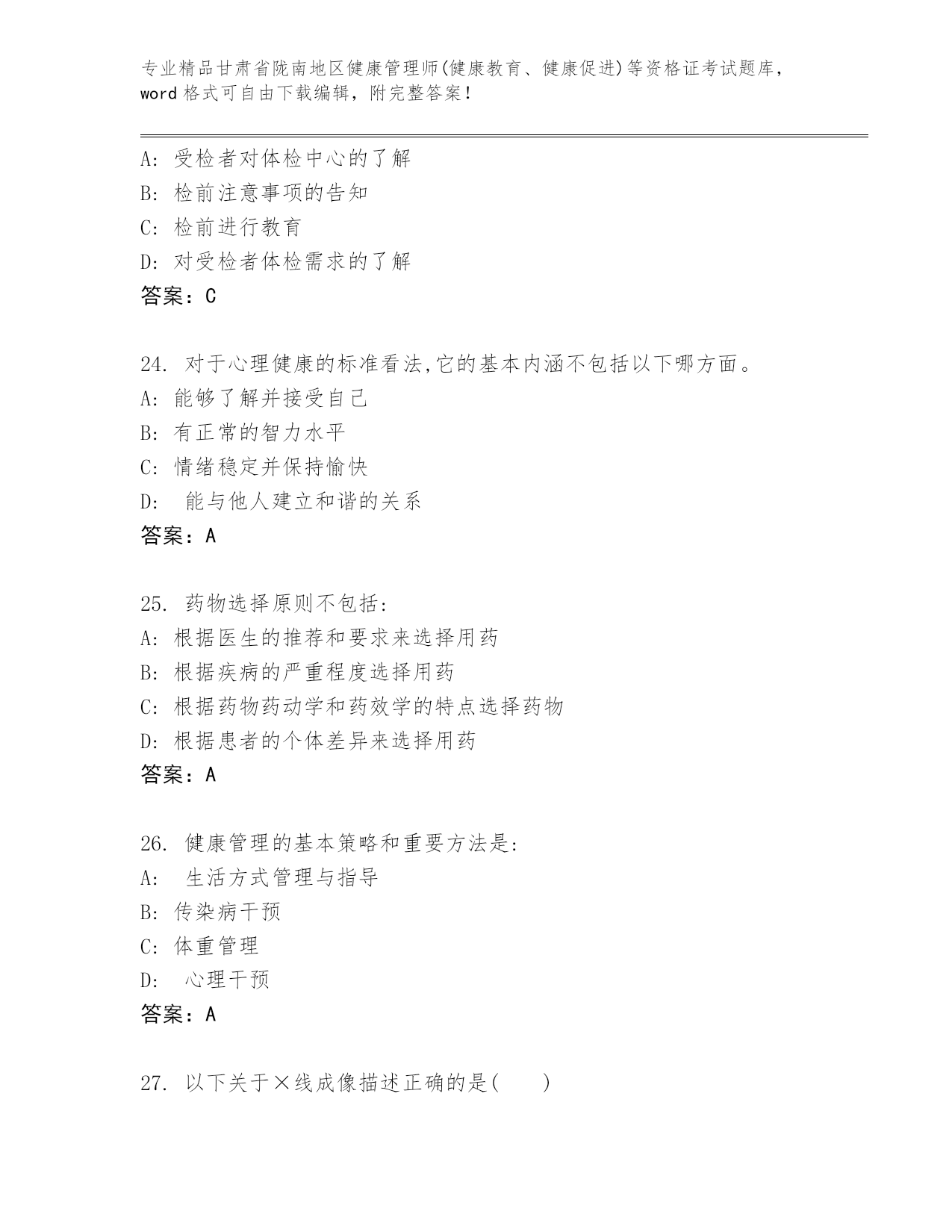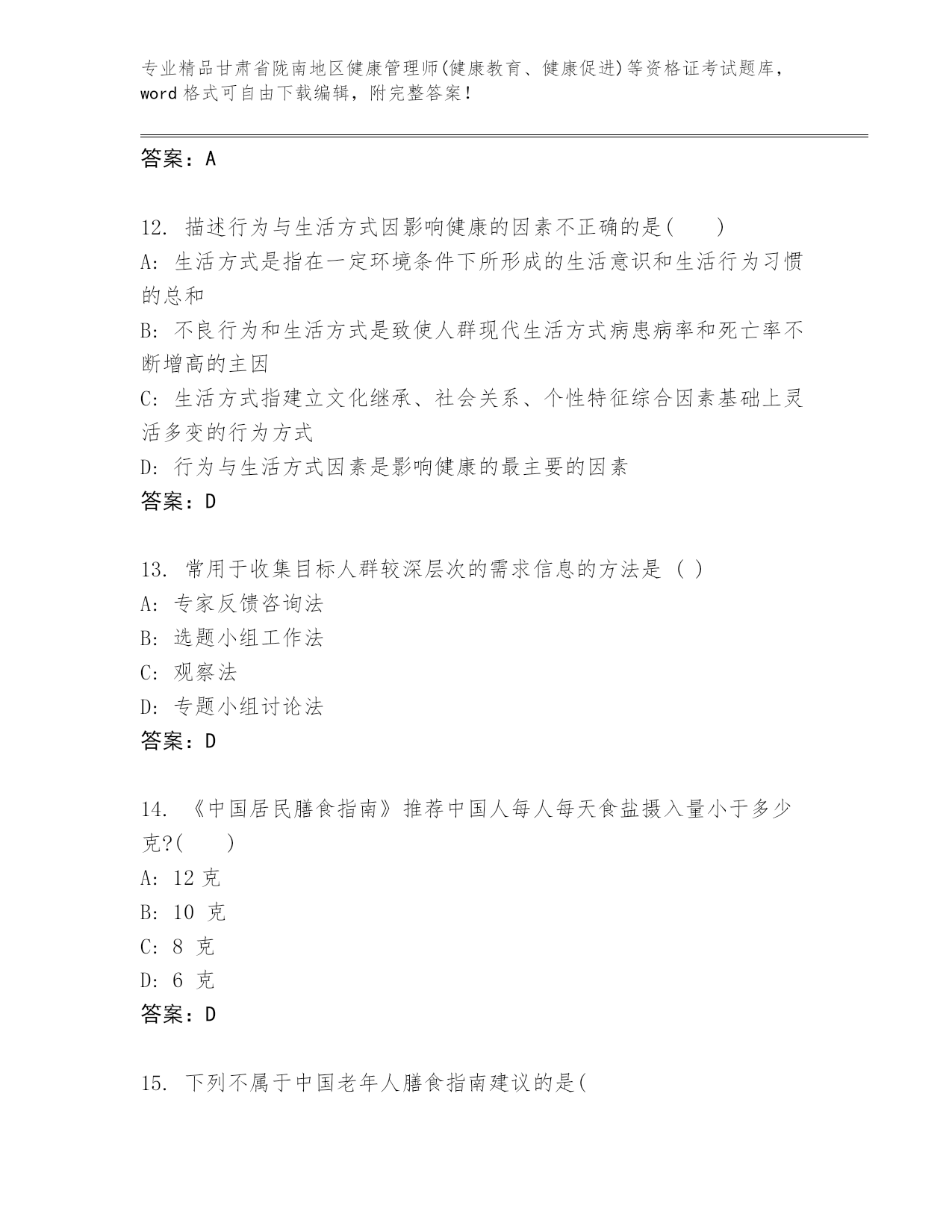 完整版甘肃省陇南地区健康管理师(健康教育、健康促进)等资格证考试【基础题】