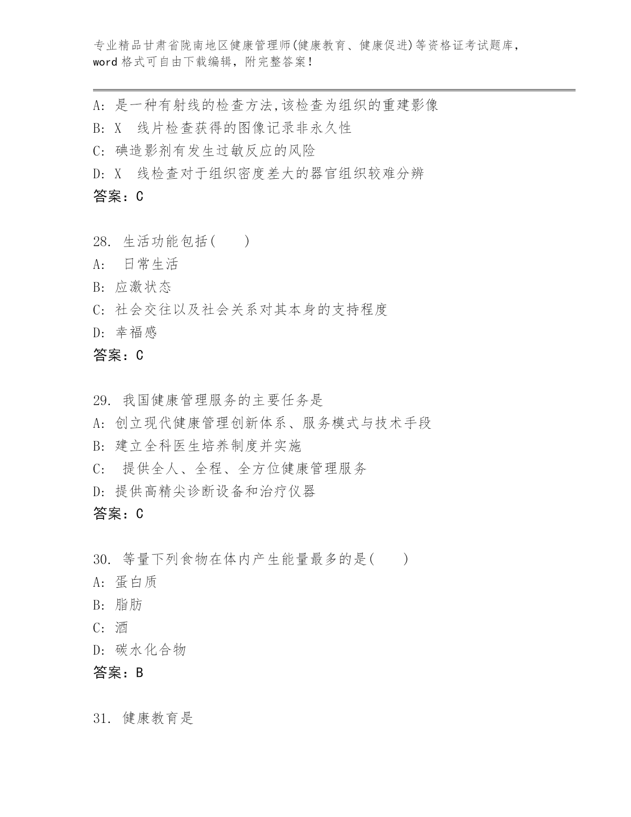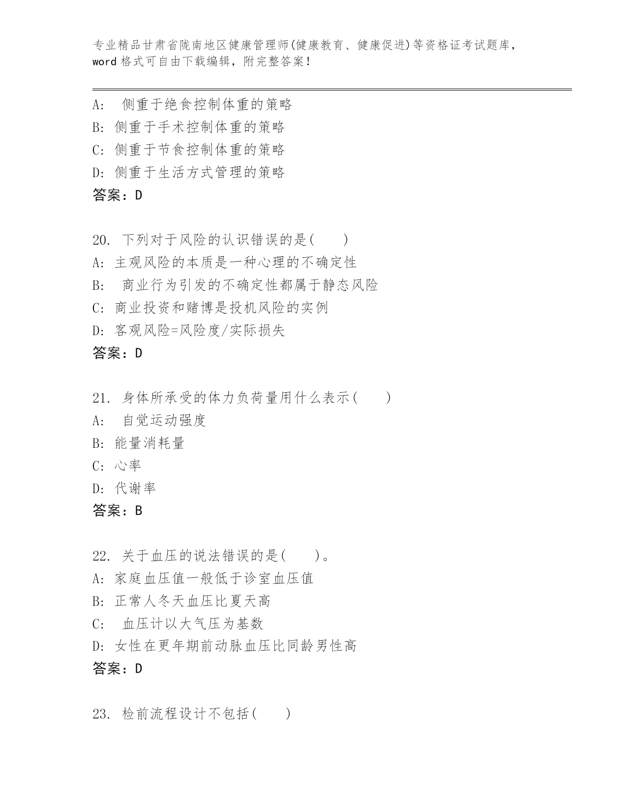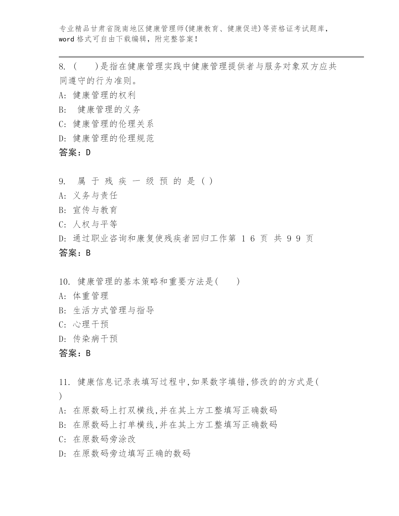 完整版甘肃省陇南地区健康管理师(健康教育、健康促进)等资格证考试【基础题】