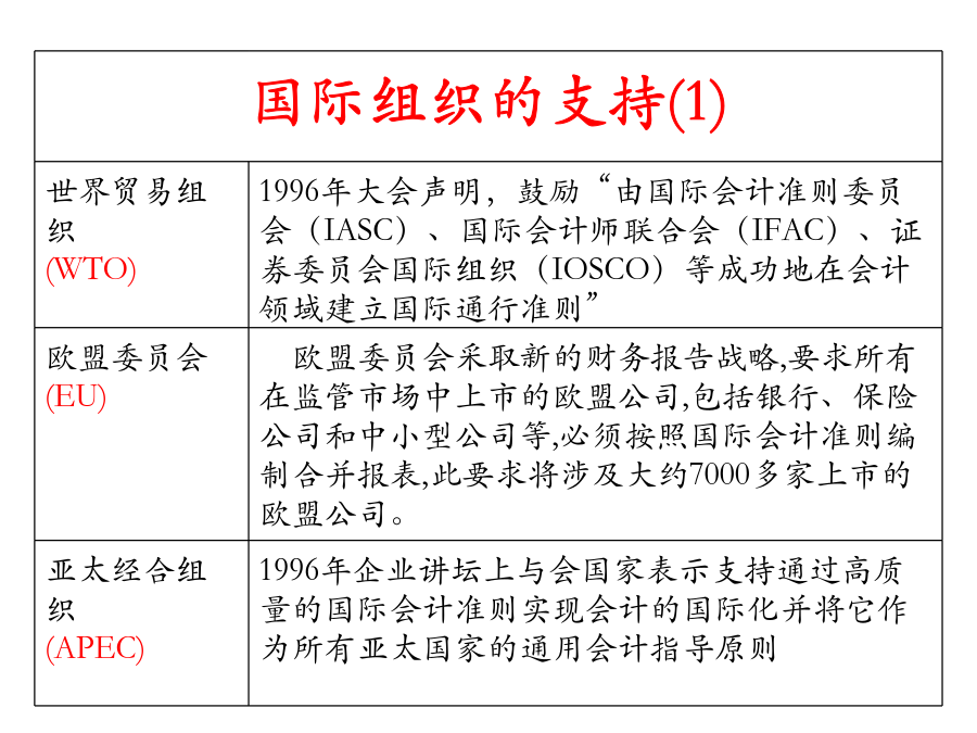 新会计准则讲座中国会计准则的重大发展会计准则国际趋同大势主板境外上市外资股公司名录创业板境外上市外资股公司名录国际组织的支持(1)国际组织的支持(2)主要国家采纳国际会计准则状况(1)主要国家采纳国际会计准则状况(2)会计准则的国际趋同报告---2002年全球调查(一)会计准则的国际趋同报告---2002年全球调查(二)会计准则的国际趋同报告---2002年全球调查(三)1.存货4下表列示了中国新会计准则如何与国际财务报告准则相对应。序号新会计准则的特点一,引进了国际财务报准则的许多新概念,新方法1,金融工具新概念2,投资性房地产新概念3,股份支付4,修正非货币性资产交换的计量5,修正债务重组收益的计量二,公允价值计量的大量应用1,金融工具的计量2,企业合并中公允价值的计量3,投资性房地产的公允价值计量4,非货币性资产交换5,债务重组6,股份支付四,提供了与新会计准则的衔接办法新会计准则的影响新会计准则可能对企业经营管理造成的影响