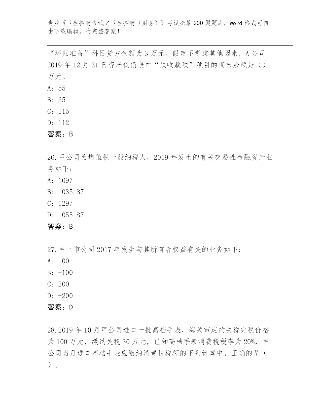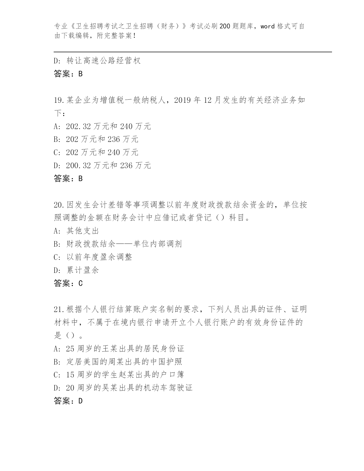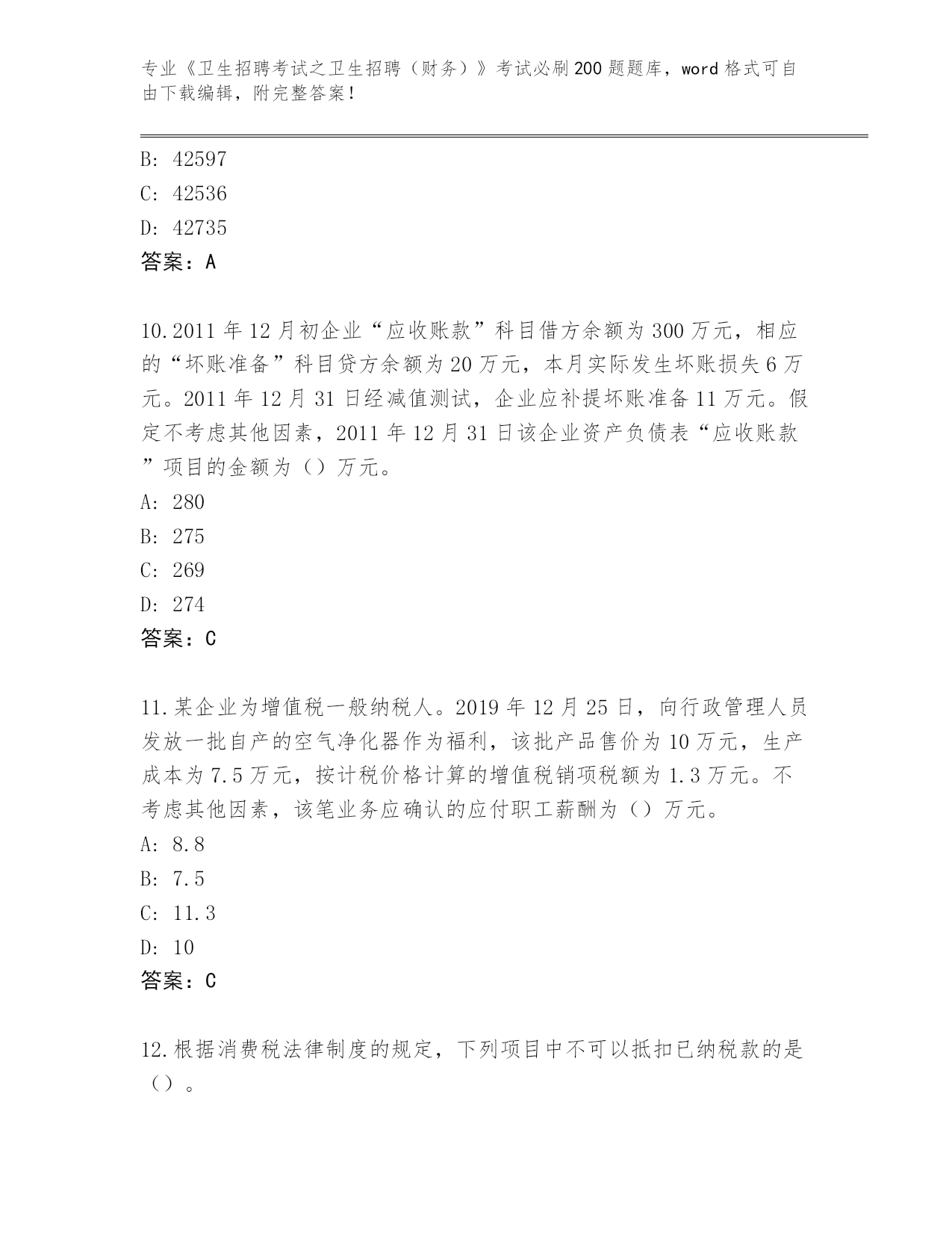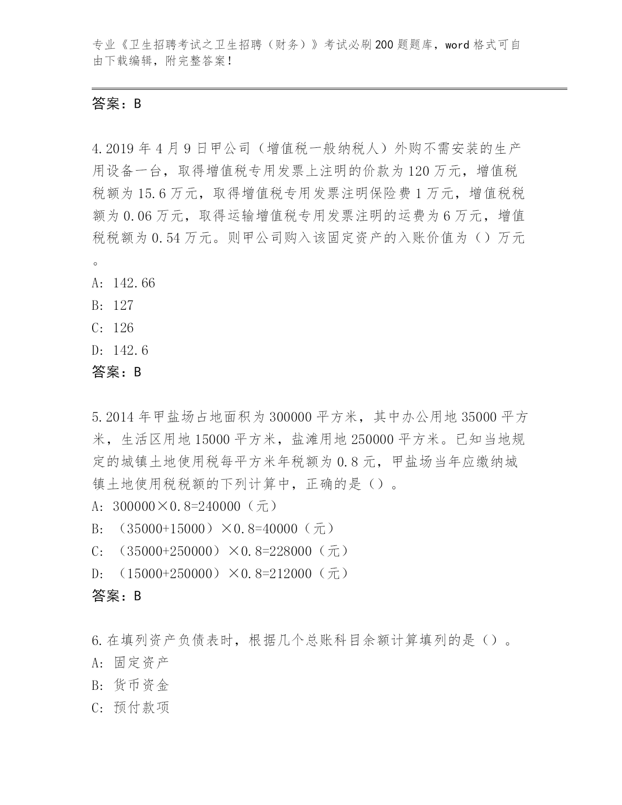 云南省《卫生招聘考试之卫生招聘(财务)》资格考试必刷200题题库大全(满分必刷)
