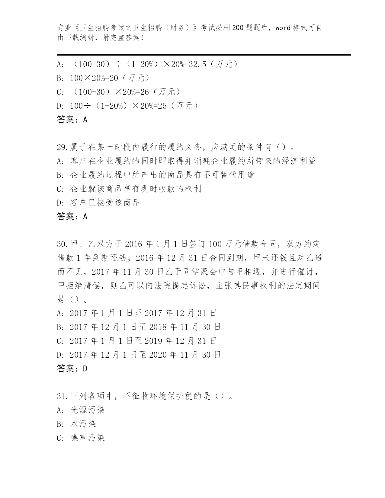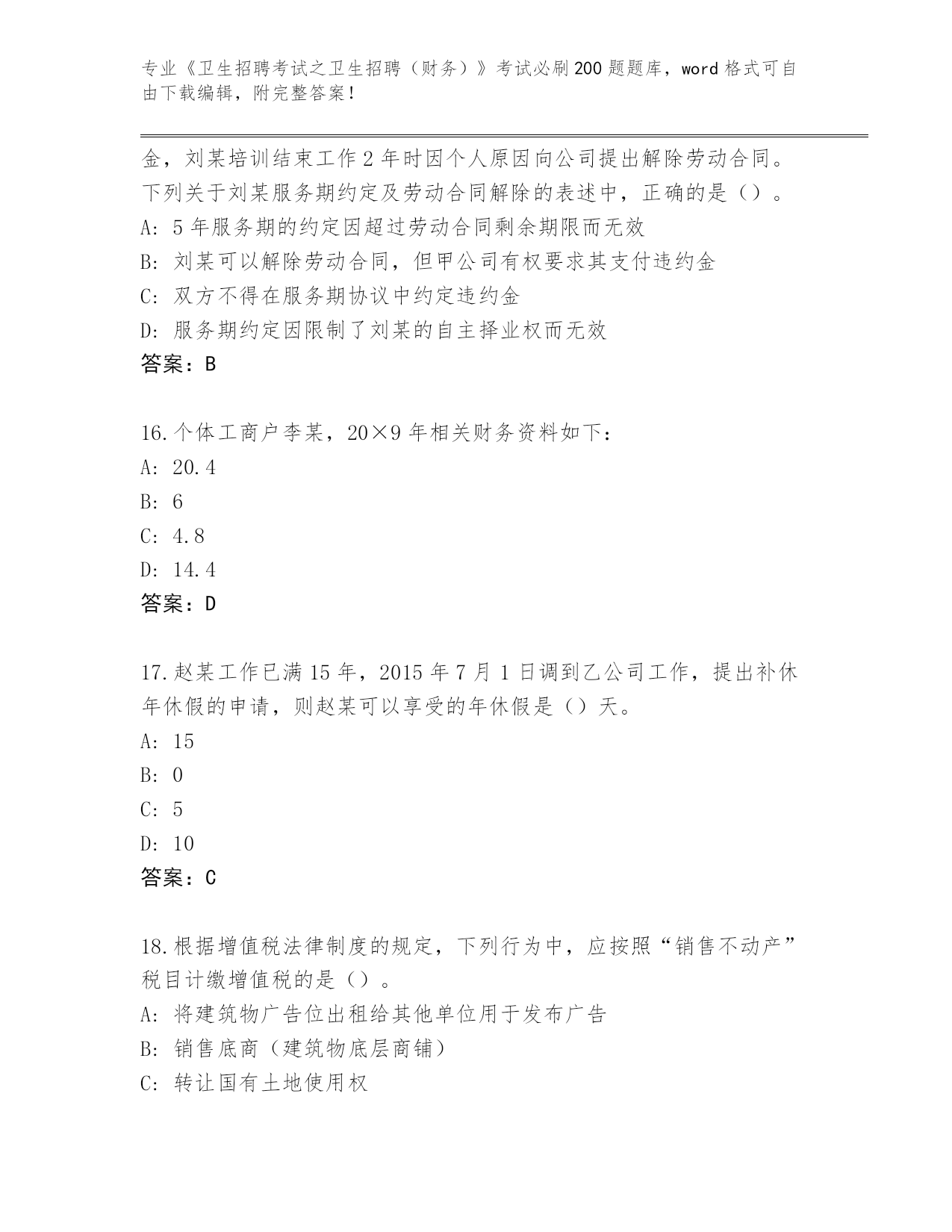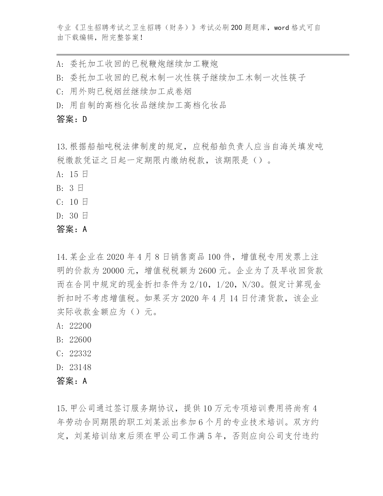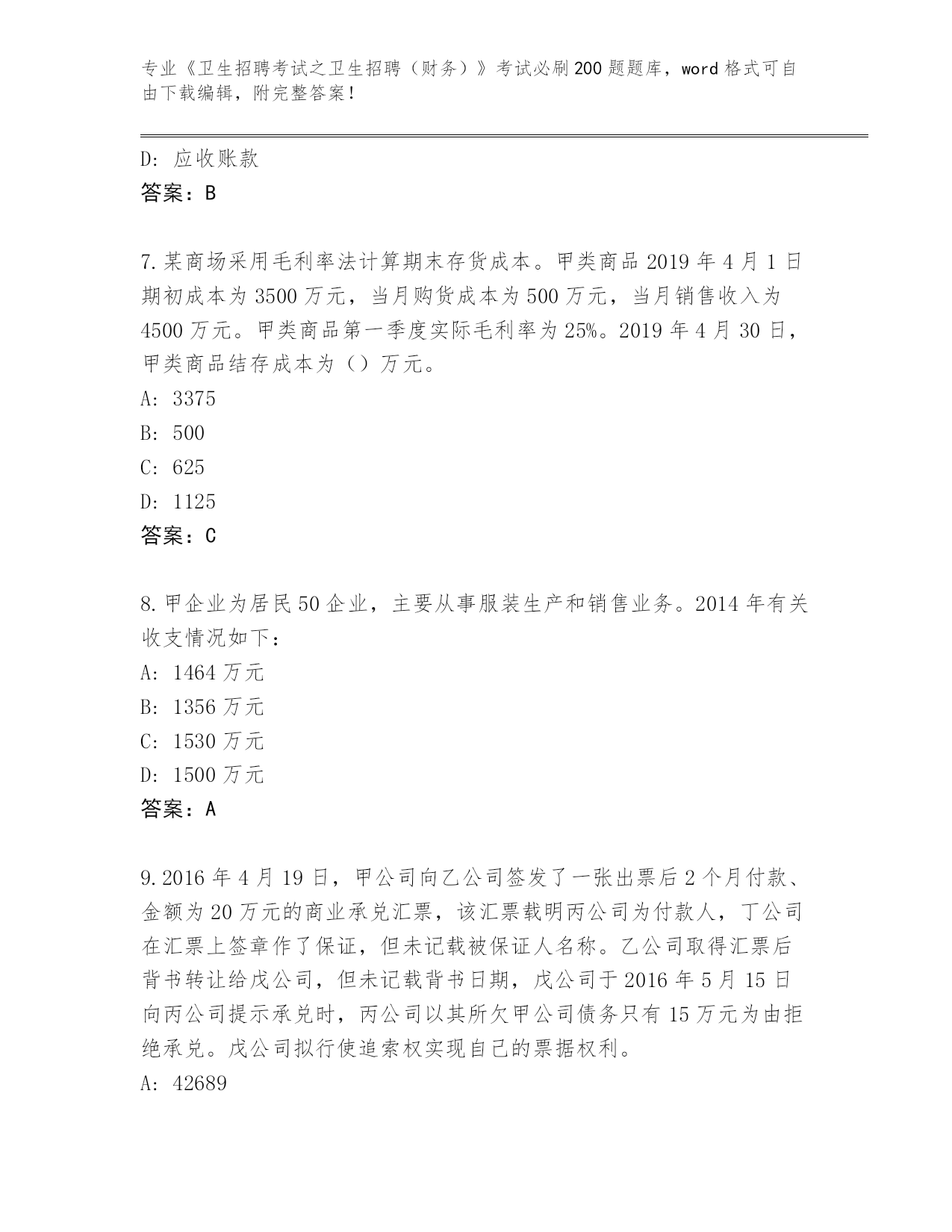 云南省《卫生招聘考试之卫生招聘(财务)》资格考试必刷200题题库大全(满分必刷)