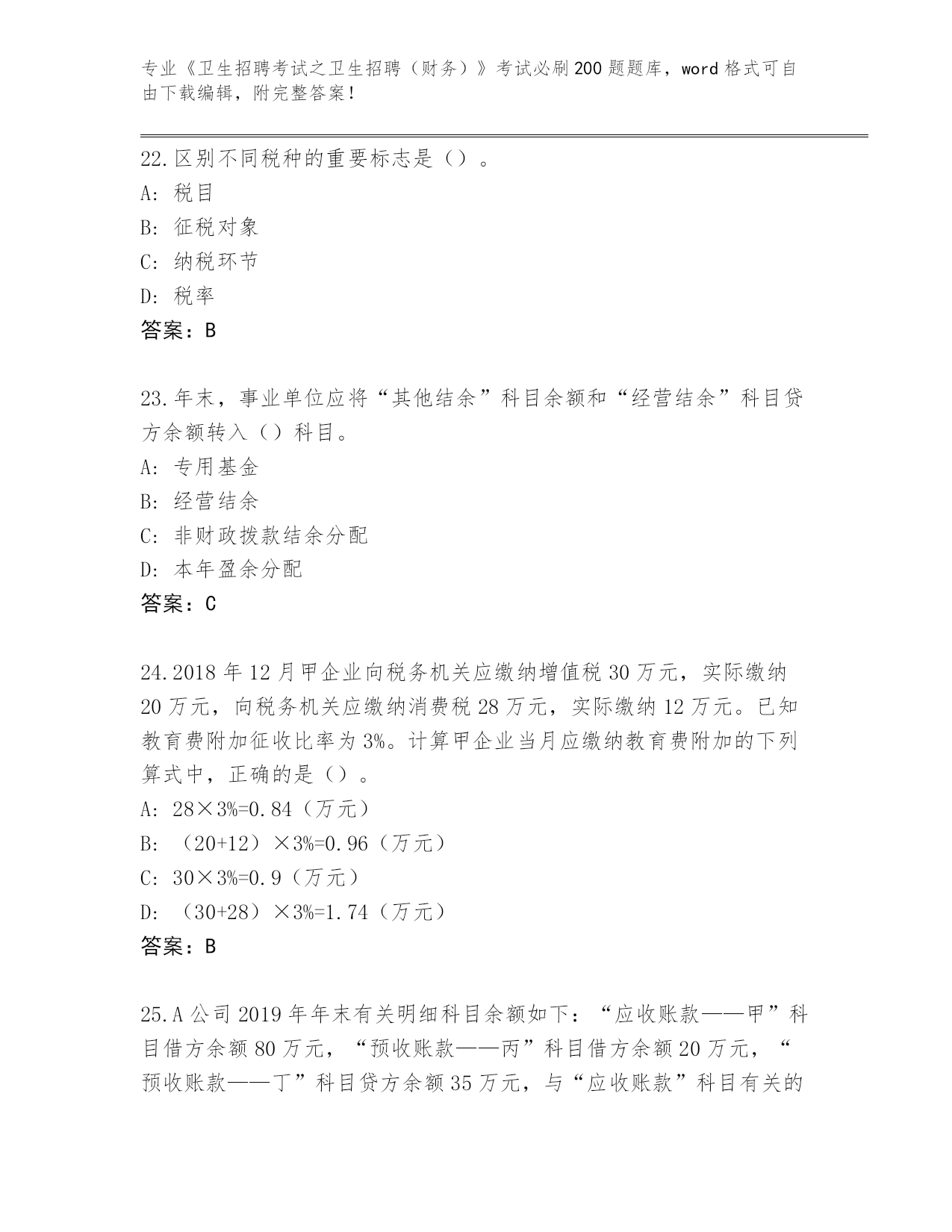 内部使用云南省临翔区《卫生招聘考试之卫生招聘(财务)》考试必背200题大全及答案【必刷】
