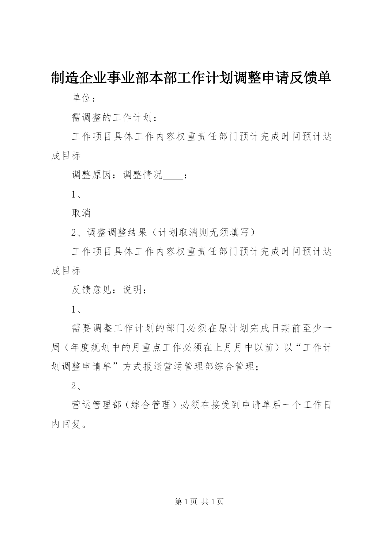 制造企业事业部本部工作计划调整申请反馈单.docx