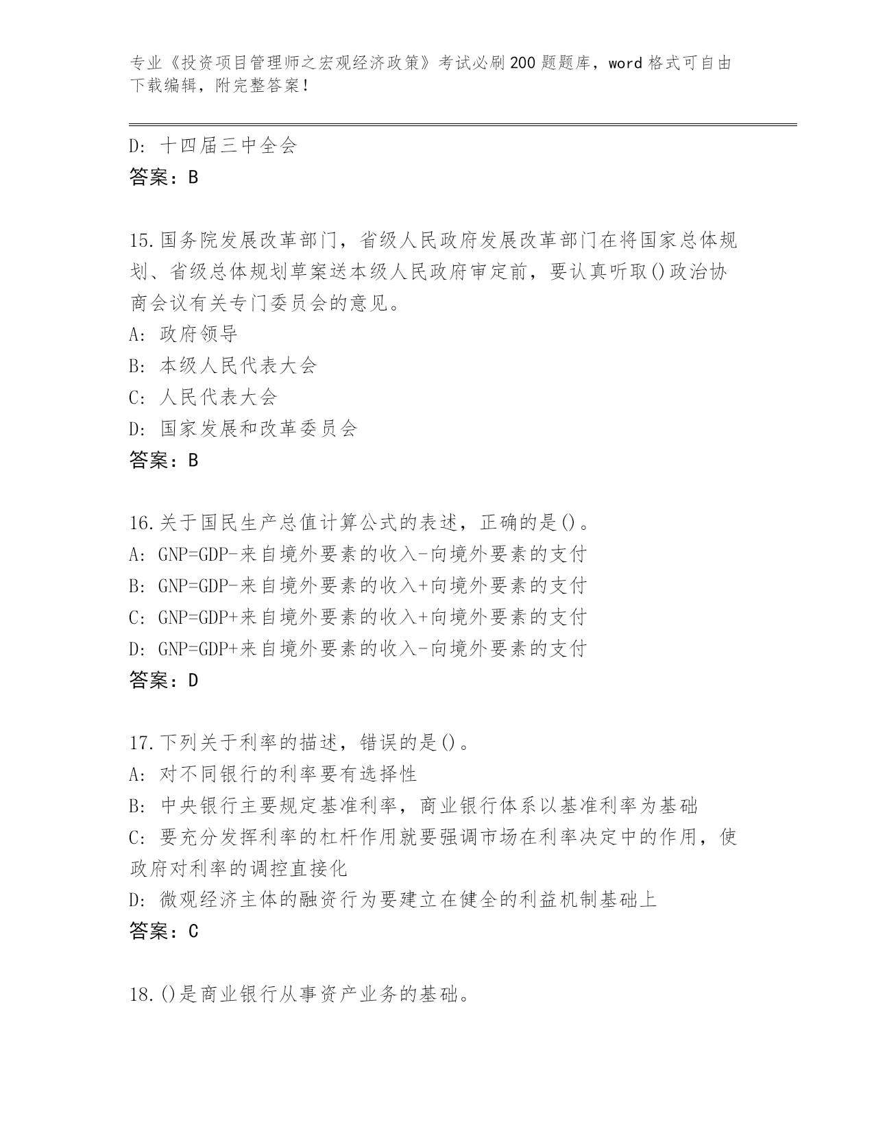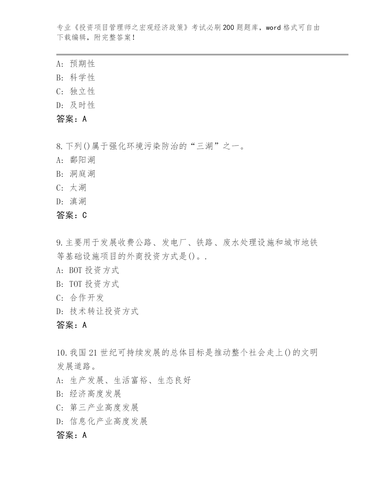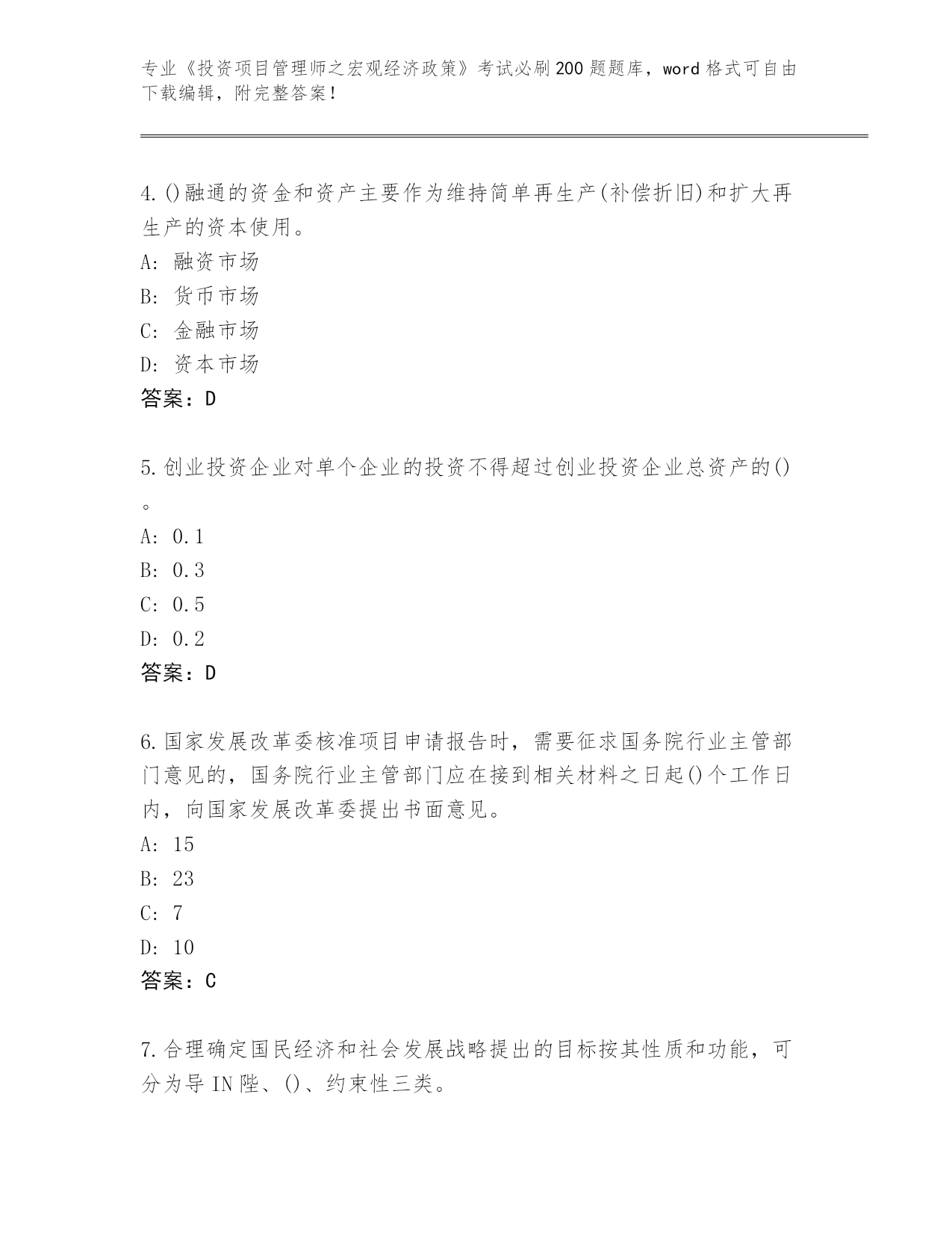 2024江苏省天宁区《投资项目管理师之宏观经济政策》考试必刷200题(名师系列)