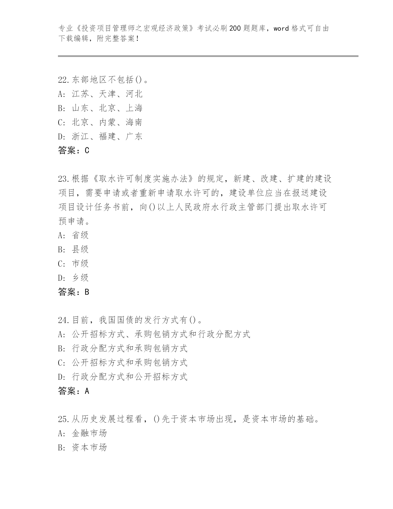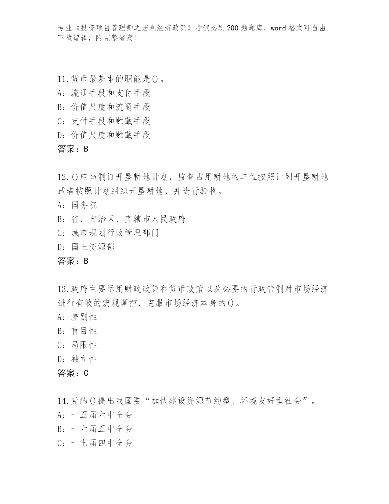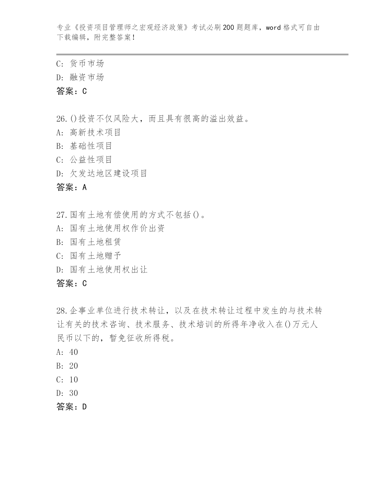 2024江苏省天宁区《投资项目管理师之宏观经济政策》考试必刷200题(名师系列)