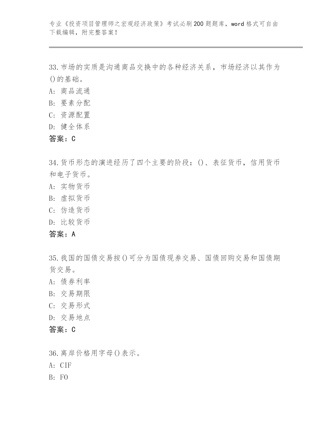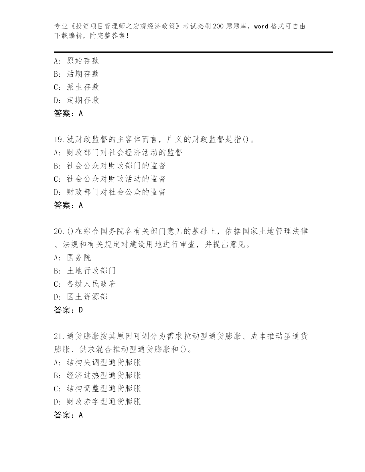 内部使用江苏省睢宁县《投资项目管理师之宏观经济政策》考试必刷200题内部题库及参考答案(模拟题)