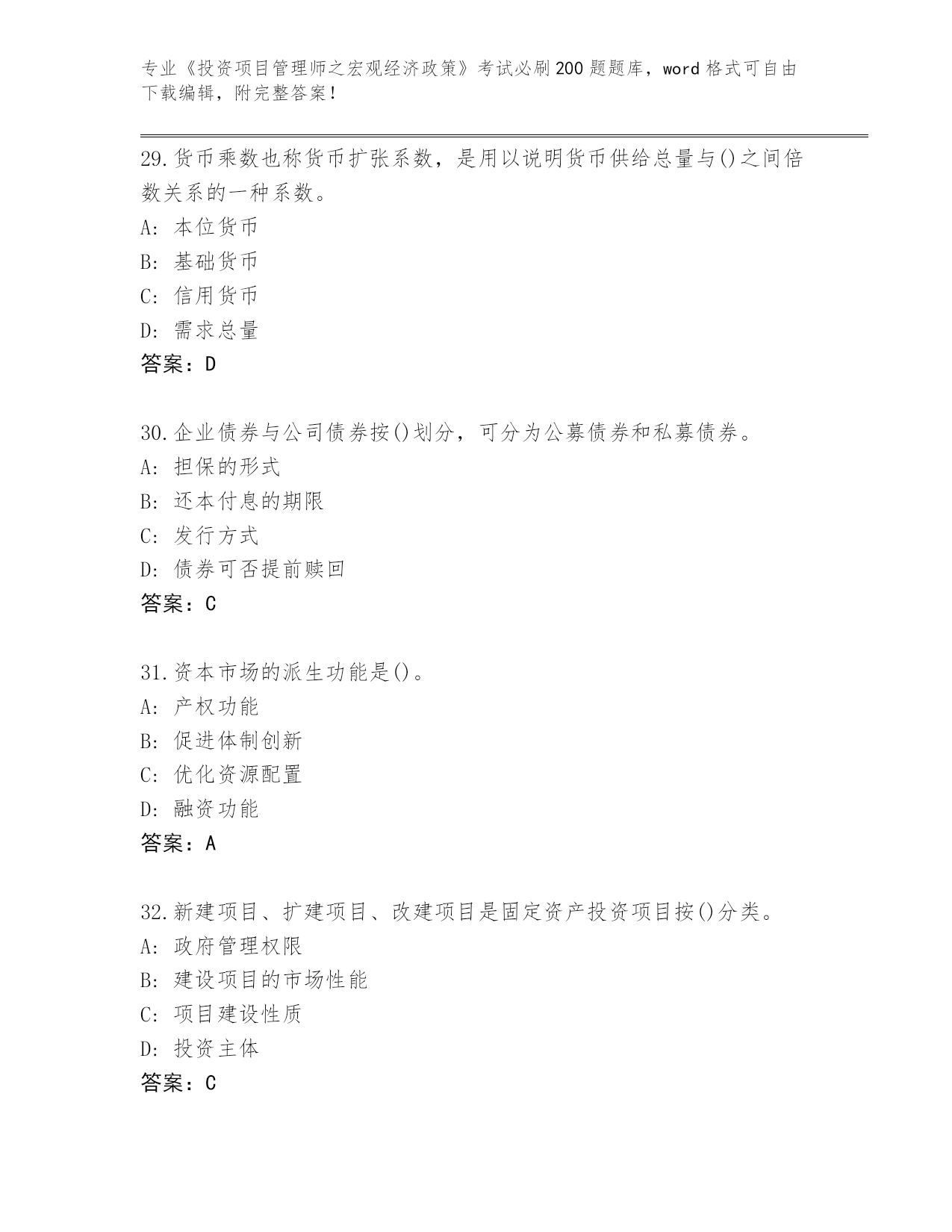 整理江西省吉州区《投资项目管理师之宏观经济政策》资格考试必刷200题内部题库附答案(模拟题)