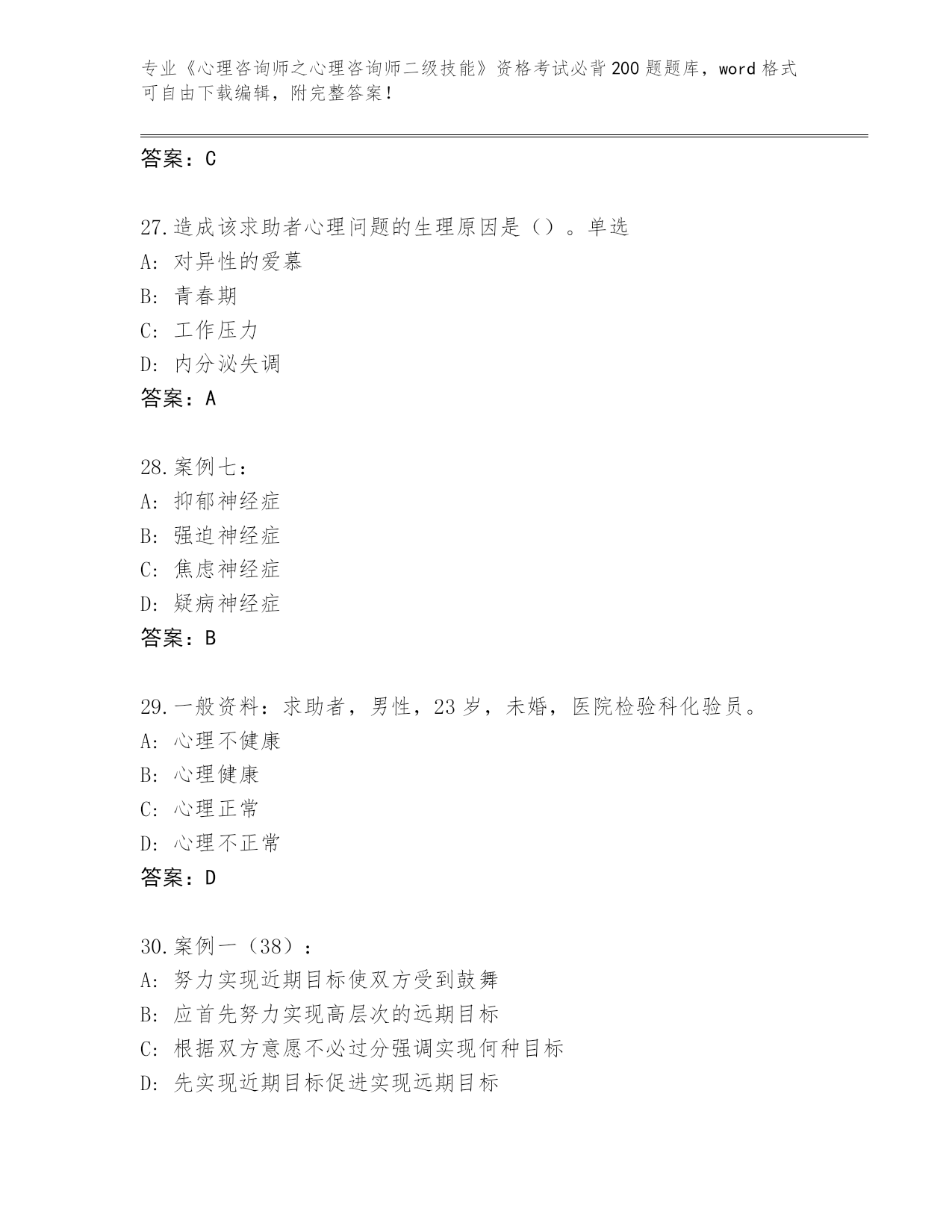 山东省城阳区《心理咨询师之心理咨询师二级技能》资格考试必背200题完整版(典型题)