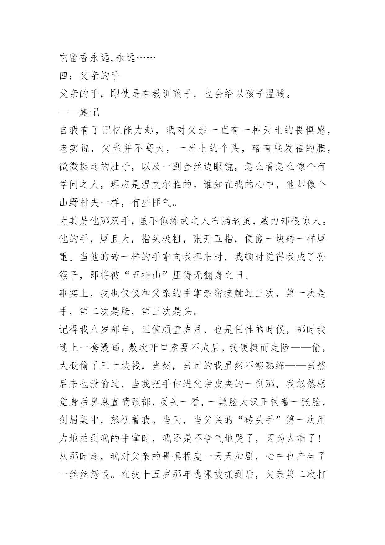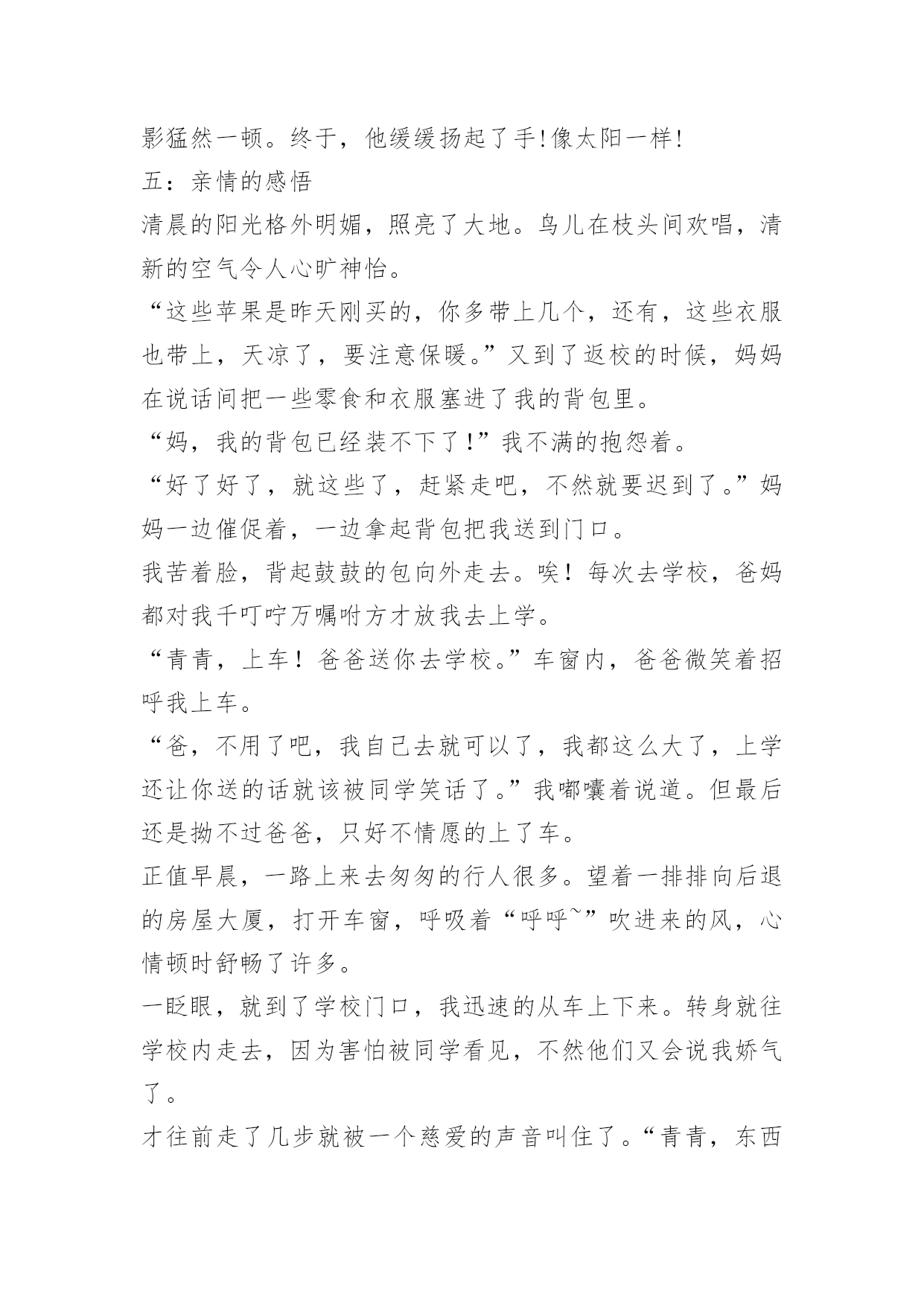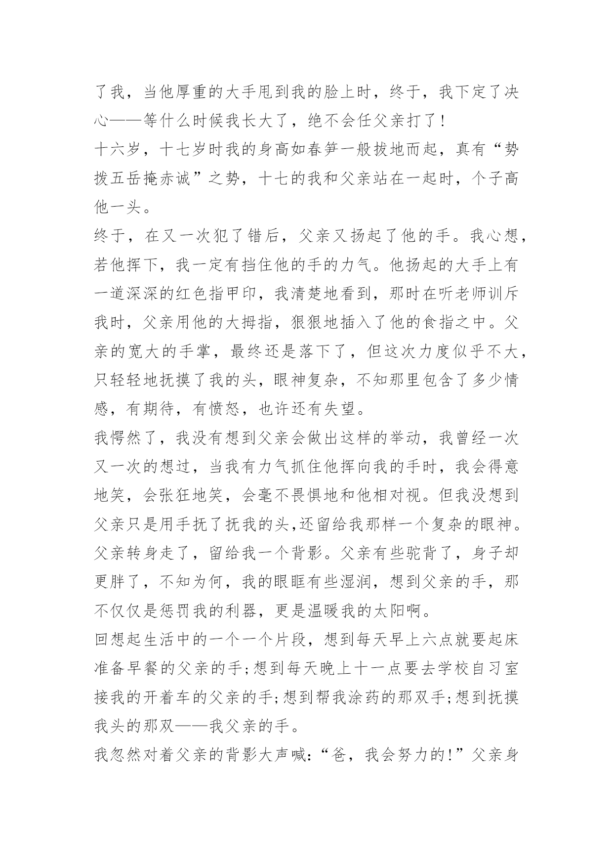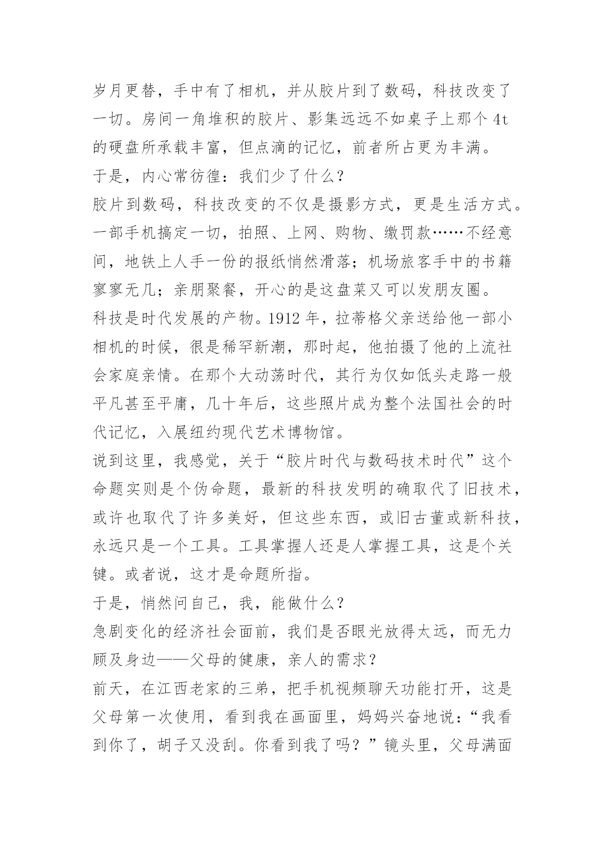 亲情高考满分作文亲情高考满分作文亲情,如一杯浓浓的热奶,捧在手心,让它在寒夜里用醇香的温暖驱赶冰冷的孤寂。“常回家看看”,当它作为一首歌时,红遍了大江南北,而当它作为一条法令时,宣告社会意识已经觉醒。一个人,如一棵树,带着一丝莫名其妙就神奇地来到世界,然后,生根发芽,开花结果。然而人与树又不尽相同,人会漂泊,而树永远扎根。是的,当我们长大了,都要到远方漂泊,如长翅的鸟儿,离巢腾飞。但我们那如树一样的根,却深深地扎在父母给予我们的那片土地上,我们流着他们的血液,呼吸着他们的呼吸,我们是父母用爱筑就的艺术。然而,当我们飞走了,离巢了,那满满的空虚就无情地留给了他们。我们得到了生命,经历了成长,难道就只能给他们留下一个空巢?面对亲情和工作,很多人会毫不犹豫地选择后者,因为亲情可以等待,而成功的机会却稍纵即逝,俗话不也说“好男儿志在四方”吗?可是“树欲静而风不止,子欲养而亲不待”,是否只有失去了才知道珍惜亲情?记得季羡林先生在《永久的悔》中就感慨于自己对母亲的忽视,字字动人肺腑,引人深思。朝如青丝暮成雪,人生有多少个“等待”?我们拥有长长的一生,而给予我们这一生的人难道只能在白发苍苍时站在我们的身后,眺望着我们远去的背影吗?当然不能。他们的给予,足够换取我们为他们献上的温暖。把亲情捧在手心,用心的温度去温暖,让它成为一股暖流,流淌在子女和父母之间。《老年法》写上子女“常回家看看”,不得不说,这使我们的社会更具人情味。在物质至上的今天,许许多多的人只会向“钱”看,对于情的淡薄,对于心灵的冷漠已经习以为常。其实,很多人在拥有了丰富的物质后,又何尝不感到一无所有!因为在追名逐利的过程中,他已经远离了温暖的人群。“常同家看看”,今天的社会为我们立了一块温馨的提示牌,提醒我们,即便走到很远的地方,也别忘了家的存在和父母望眼欲穿的等待。这样的提示,我们应该鼓掌喝彩。把亲情捧住,捧在手心,当你对茫茫前程感到畏惧和无助时,体会一下它的温暖,当那股熟悉的暖流流淌过心灵,那就是父母微笑的鼓励!二:胶片或是数码亲情都是核心对那幅照片我一直不满意,是爷爷的一幅肖像照片,家里人都说挺好,后来以那幅照片为蓝本又做了瓷版画,但与记忆中的爷爷相去甚远。我是爷爷奶奶带大的,在他们身边八年,记忆如磐石,刻骨铭心。两位老人早已离我远去,眼前却总模糊着爷爷踉跄的脚步,耳畔回荡着奶奶的哭泣,永红什么时候再回来啊?尽管不能诠释内心记忆,但那幅照片我一直珍藏。后来,学会摄影后做的第一件事情就是翻拍那幅照片并放大,现仍在我的书房里挂着,那是记忆中爷爷唯一一幅照片。岁月更替,手中有了相机,并从胶片到了数码,科技改变了一切。房间一角堆积的胶片、影集远远不如桌子上那个4t的硬盘所承载丰富,但点滴的记忆,前者所占更为丰满。于是,内心常彷徨:我们少了什么?胶片到数码,科技改变的不仅是摄影方式,更是生活方式。一部手机搞定一切,拍照、上网、购物、缴罚款……不经意间,地铁上人手一份的报纸悄然滑落;机场旅客手中的书籍寥寥无几;亲朋聚餐,开心的是这盘菜又可以发朋友圈。科技是时代发展的产物。1912年,拉蒂格父亲送给他一部小相机的时候,很是稀罕新潮,那时起,他拍摄了他的上流社会家庭亲情。在那个大动荡时代,其行为仅如低头走路一般平凡甚至平庸,几十年后,这些照片成为整个法国社会的时代记忆,入展纽约现代艺术博物馆。说到这里,我感觉,关于“胶片时代与数码技术时代”这个命题实则是个伪命题,最新的科技发明的确取代了旧技术,或许也取代了许多美好,但这些东西,或旧古董或新科技,永远只是一个工具。工具掌握人还是人掌握工具,这是个关键。或者说,这才是命题所指。于是,悄然问自己,我,能做什么?急剧变化的经济社会面前,我们是否眼光放得太远,而无力顾及身边——父母的健康,亲人的需求?前天,在江西老家的三弟,把手机视频聊天功能打开,这是父母第一次使用,看到我在画面里,妈妈兴奋地说:“我看到你了,胡子又没刮。你看到我了吗?”镜头里,父母满面喜悦,绽放的笑容,抑制不住流淌。有段时间没回家了,我想,得回去了。对了,父亲一直说要爷爷那幅照片,家里没有,这次也得带回去了。三:珍惜所拥有的亲情奶奶的嘱咐“考试时别慌!别吃油炸的东西,别喝生水别乱跑,别受凉,别……”奶奶一遍遍地嘱咐着我,有时会觉得多余而又哆嗦。但是从奶奶那饱含深情的眼神中,我知道奶奶对我的嘱咐,就是对我爱的另一种表达.奶奶,您一定在为我担心吧!不用担心,有您的爱,孙女会成功的。爸爸的电话“菲子,小心身体,别担心,能考多少都是你的成绩,爸相信你,支持你,多买点营养品,别怕花钱,爸有的是力气,女儿花钱,我高兴,多喝点牛奶……”。爸在电话里边说边笑着。但我知道,其实他也很担心我,只是想消除我的紧张感罢了!爸是靠力气挣钱的,但却给我寄那么多钱,我想这个月爸一定要紧紧皮带啦。写到这我