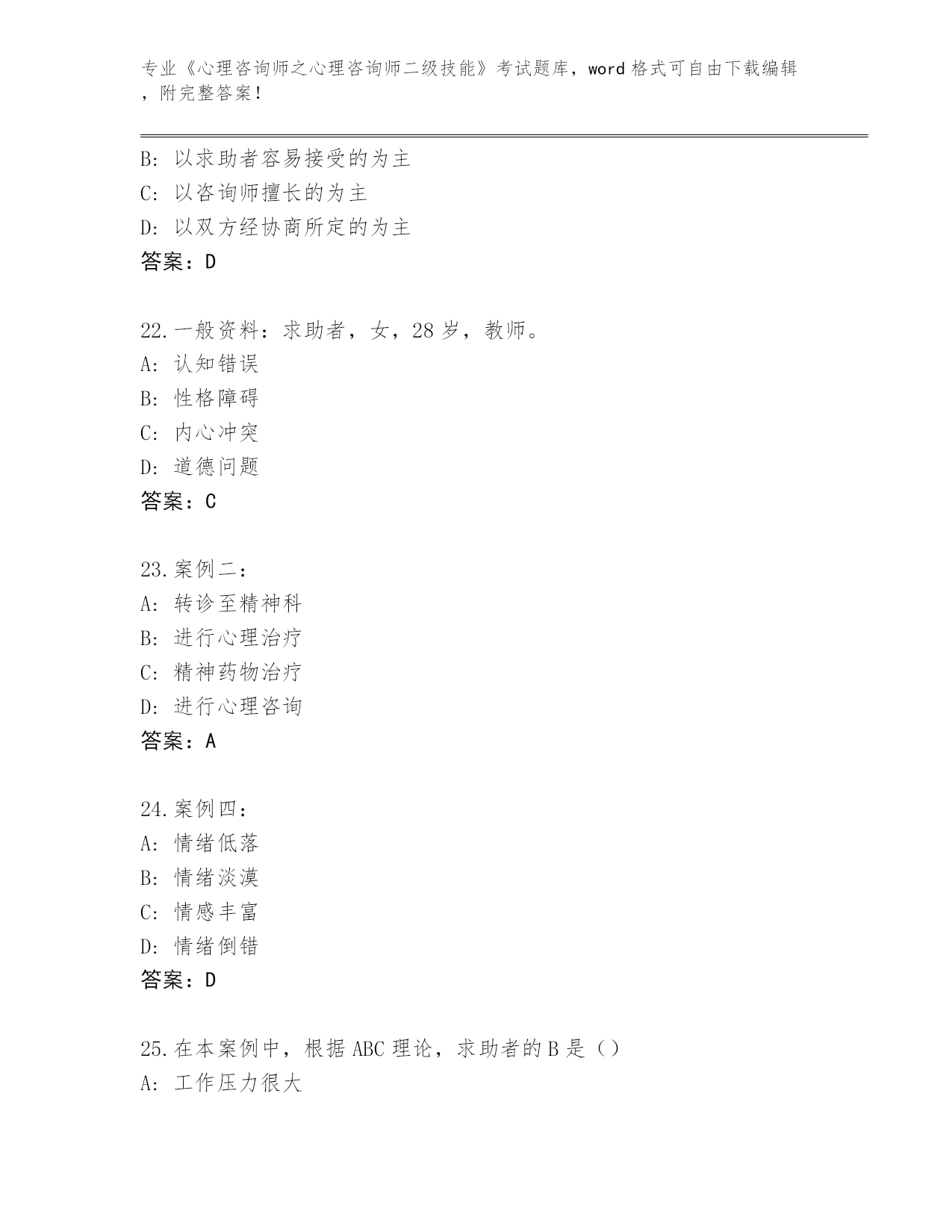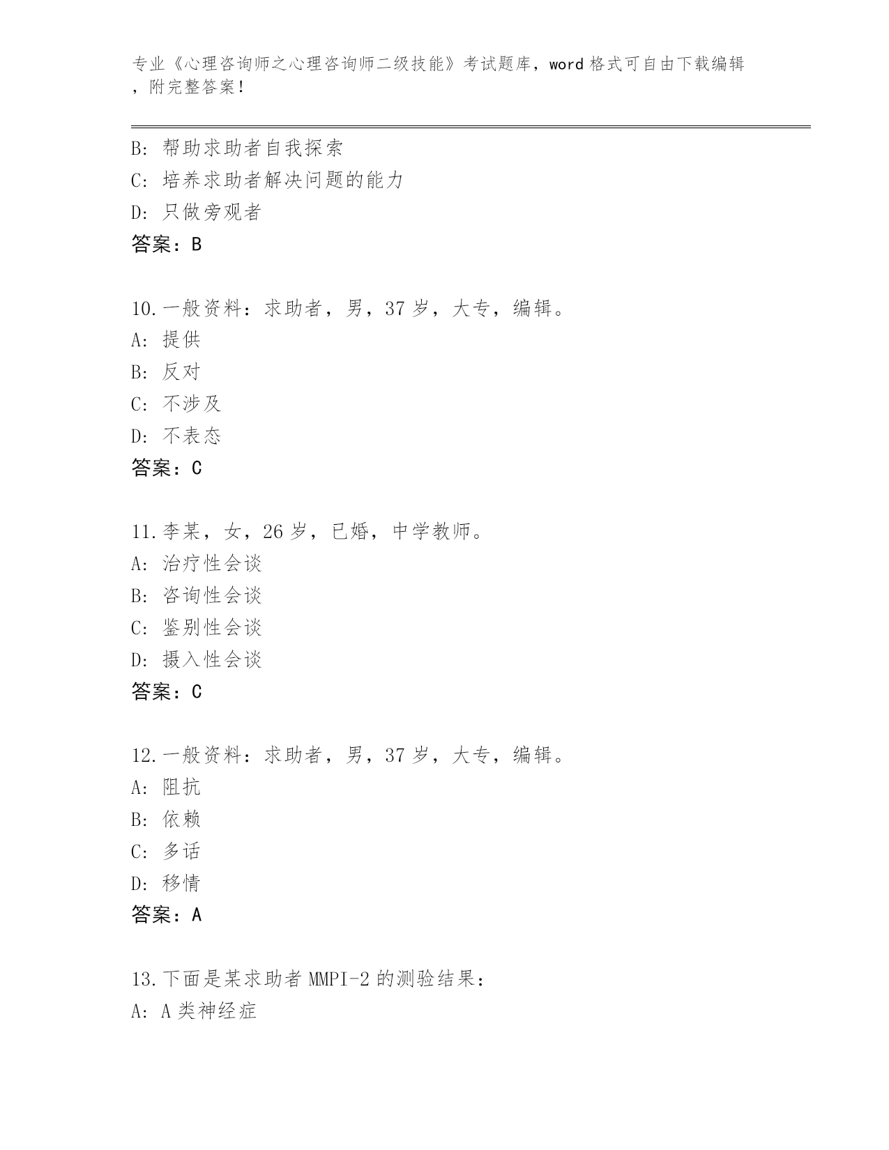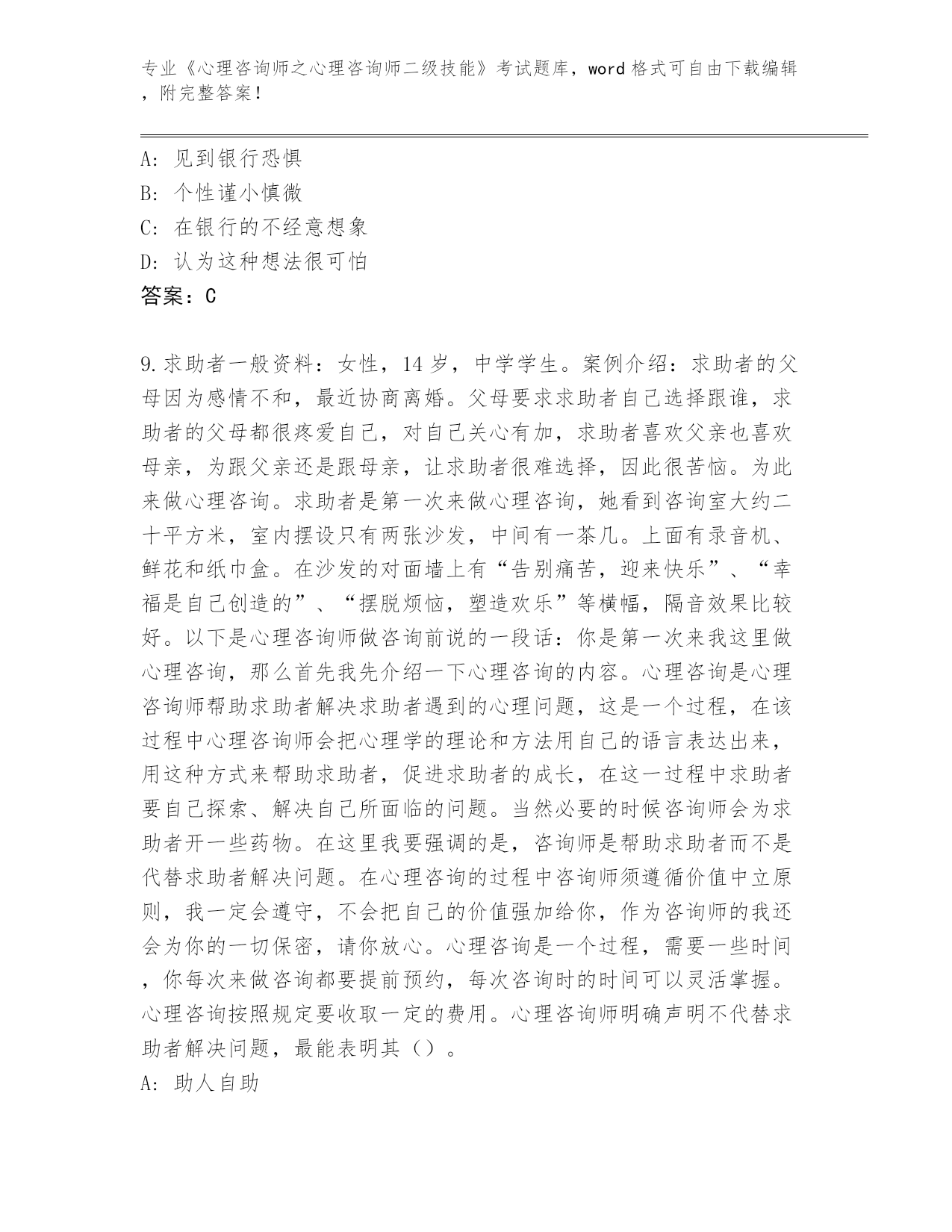 吉林省东昌区2024年《心理咨询师之心理咨询师二级技能》考试必刷200题内部题库(突破训练)