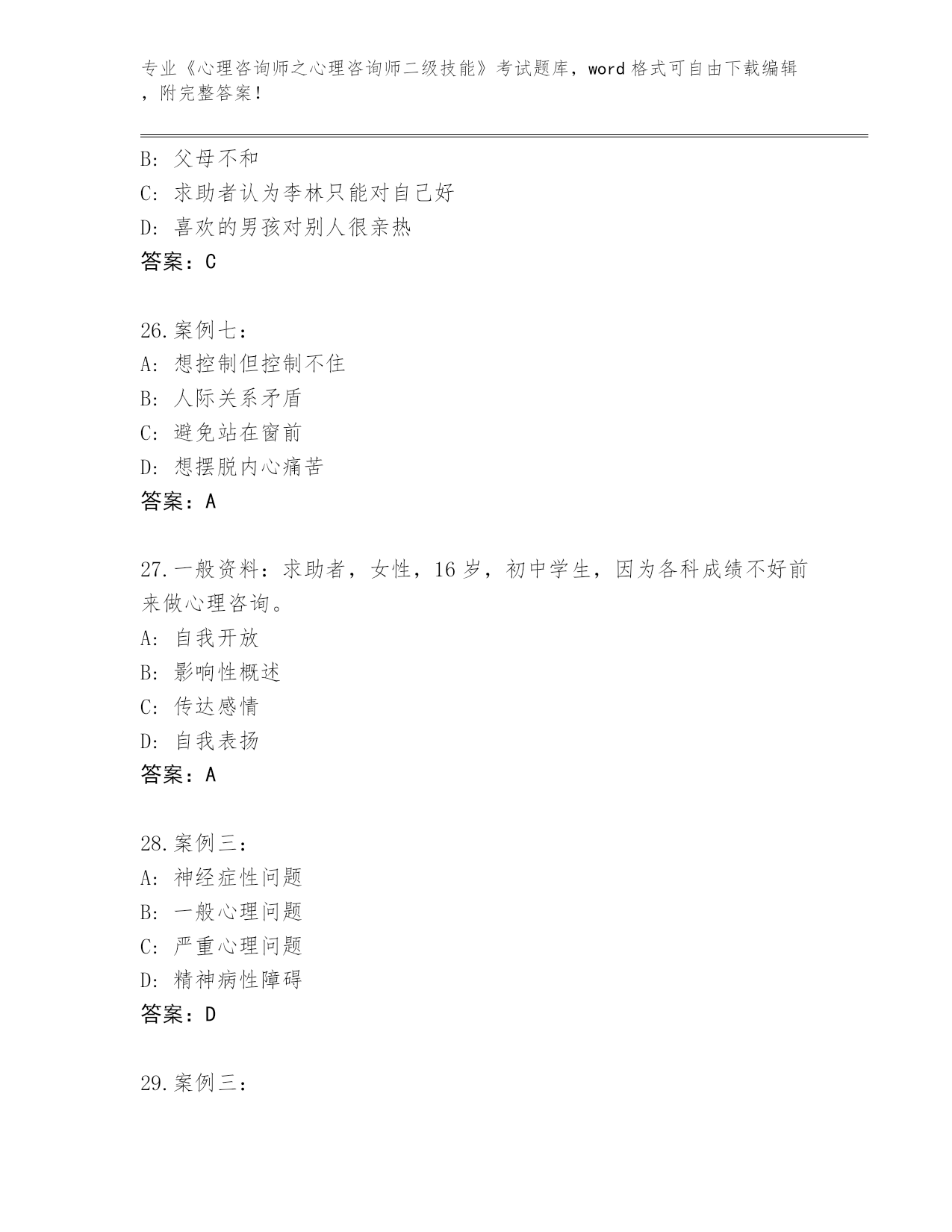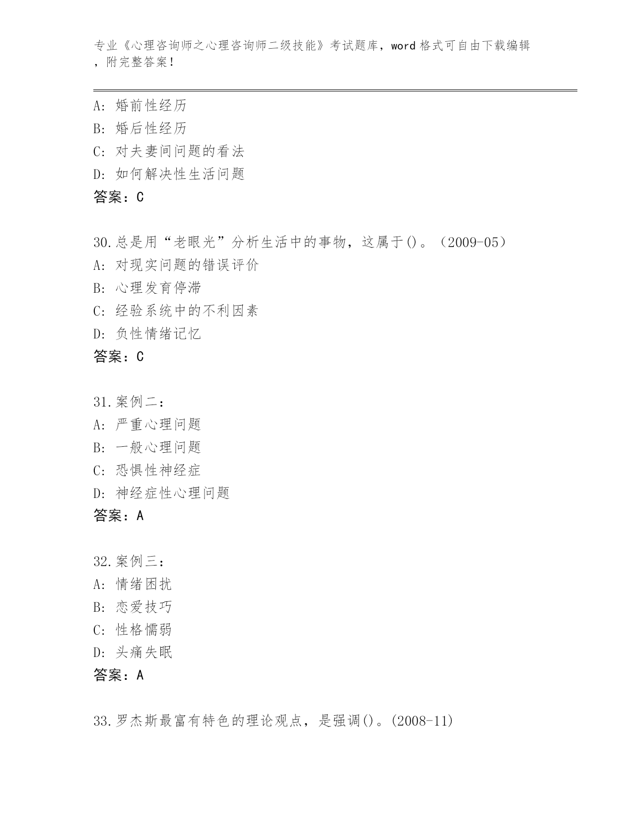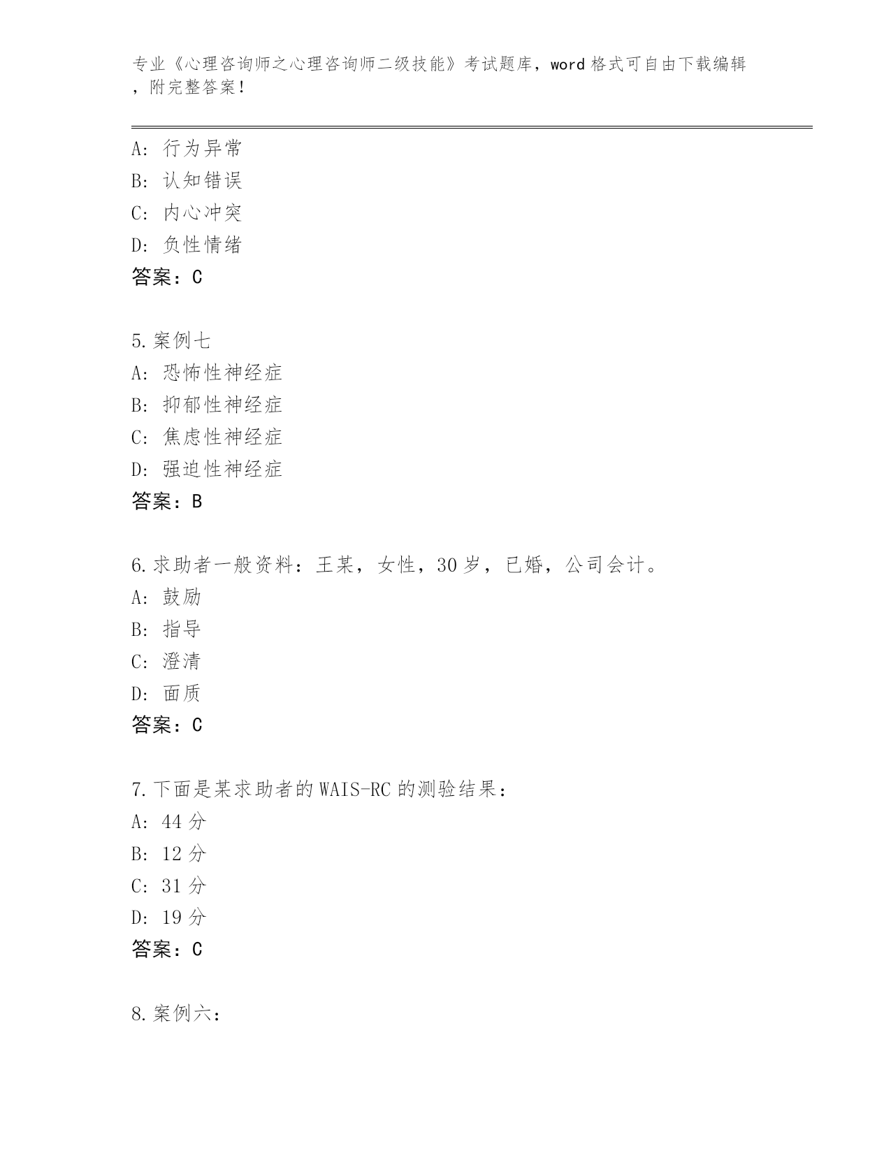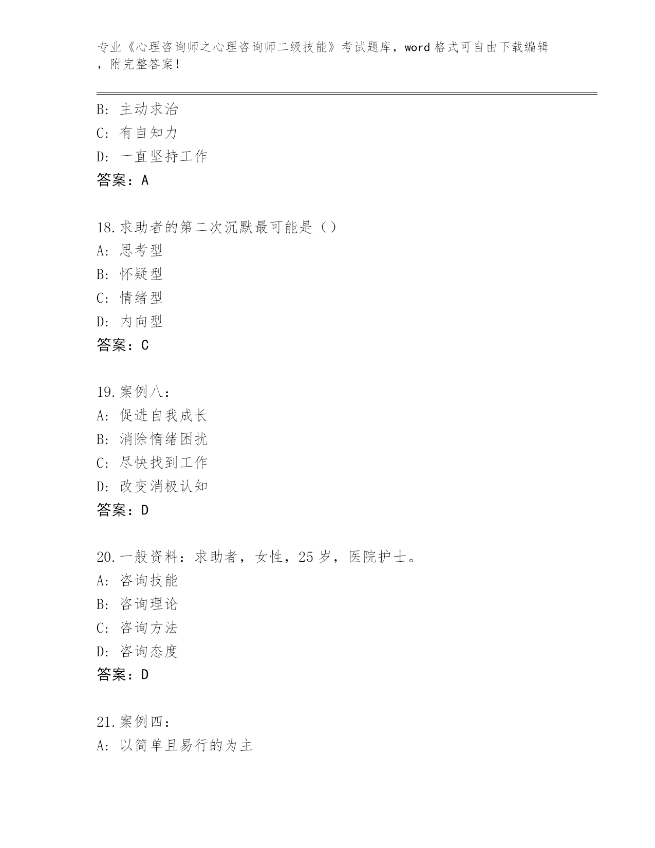 吉林省东昌区2024年《心理咨询师之心理咨询师二级技能》考试必刷200题内部题库(突破训练)