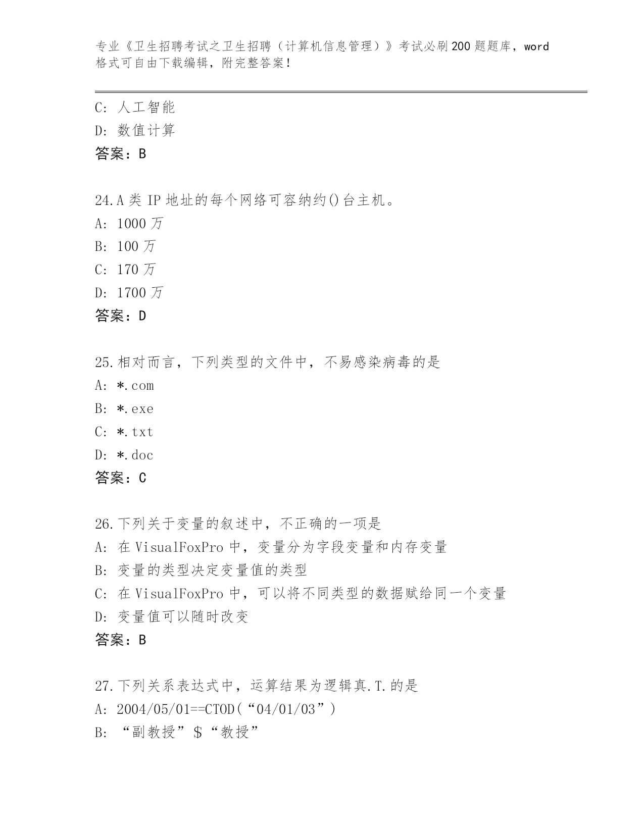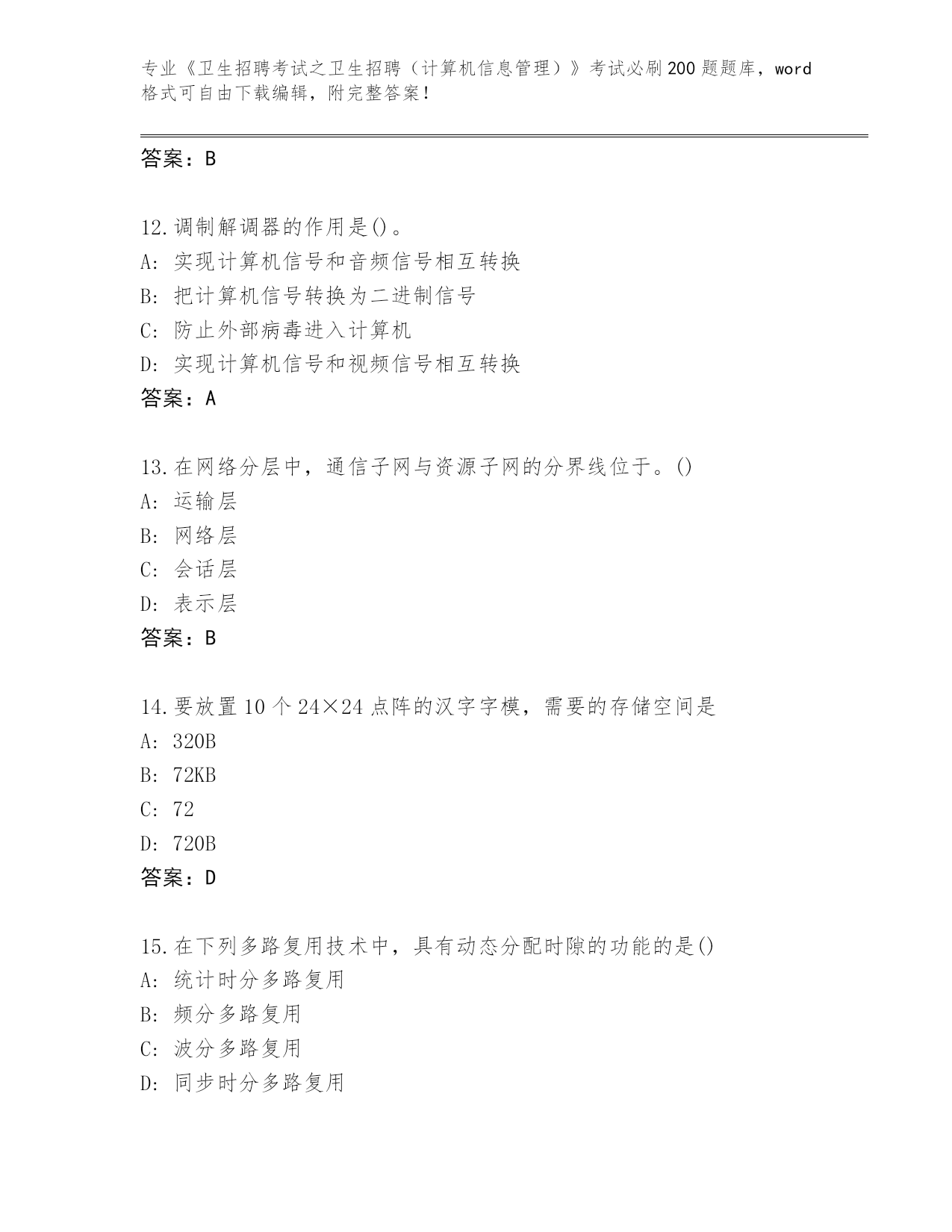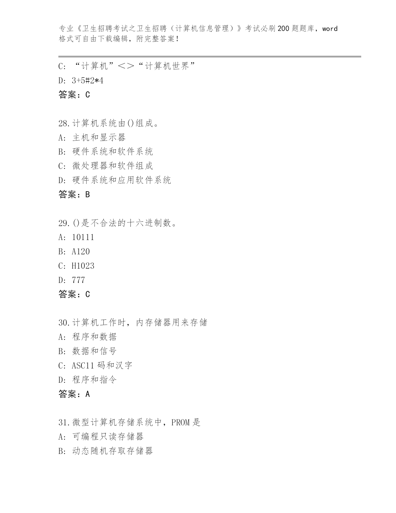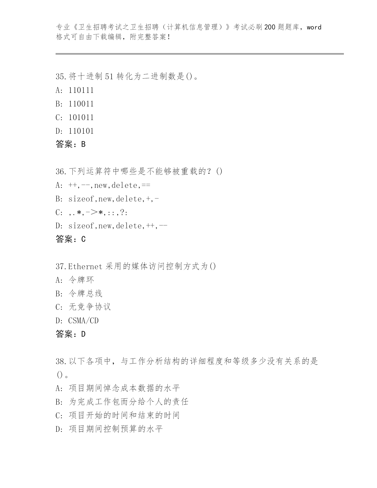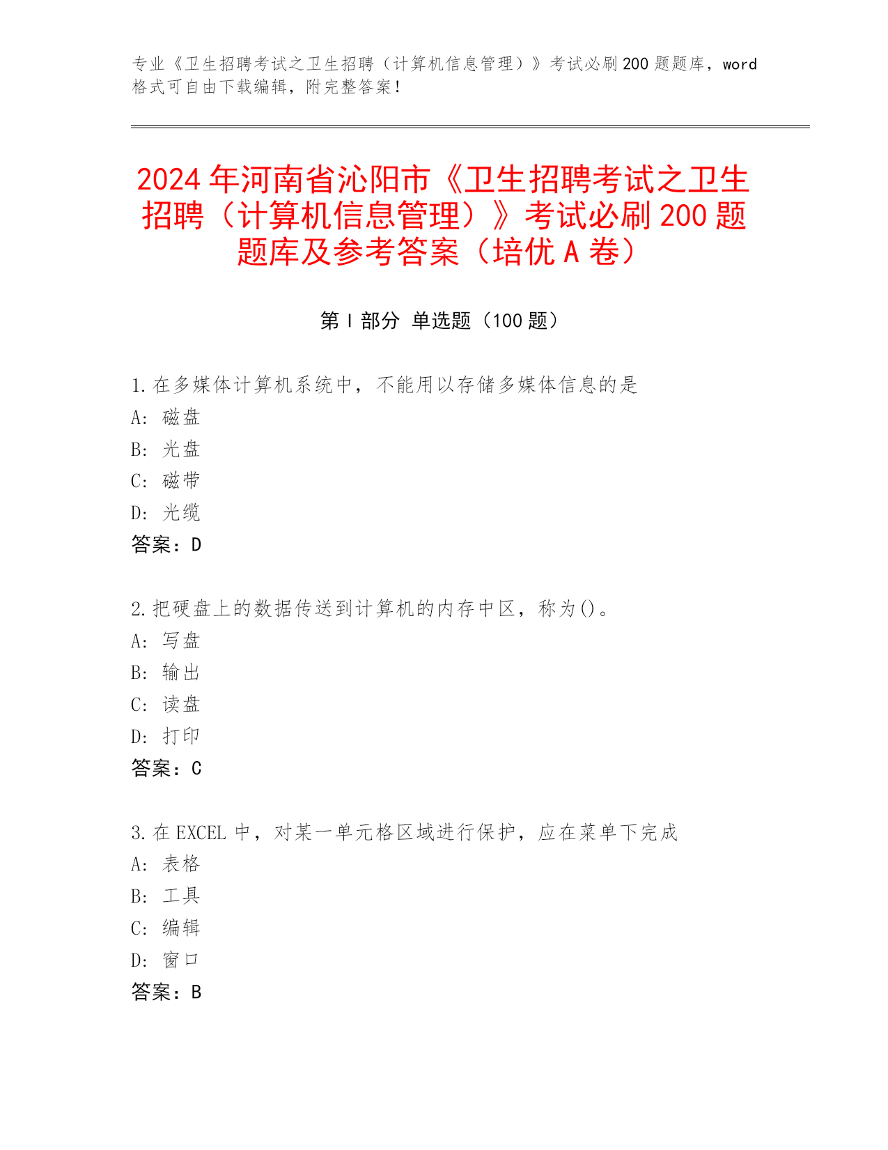 2024年河南省沁阳市《卫生招聘考试之卫生招聘(计算机信息管理)》考试必刷200题题库及参考答案(培优A卷)