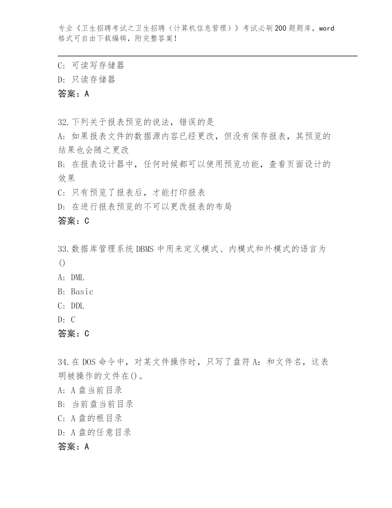 河南省夏邑县整理《卫生招聘考试之卫生招聘(计算机信息管理)》考试必刷200题题库大全【培优A卷】