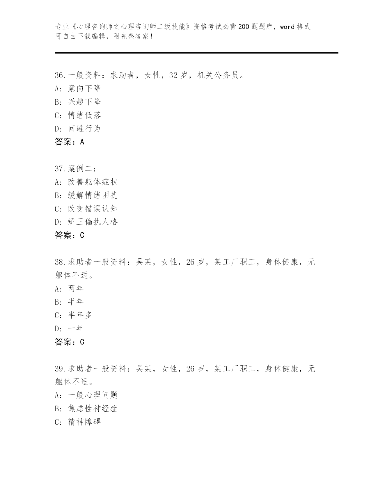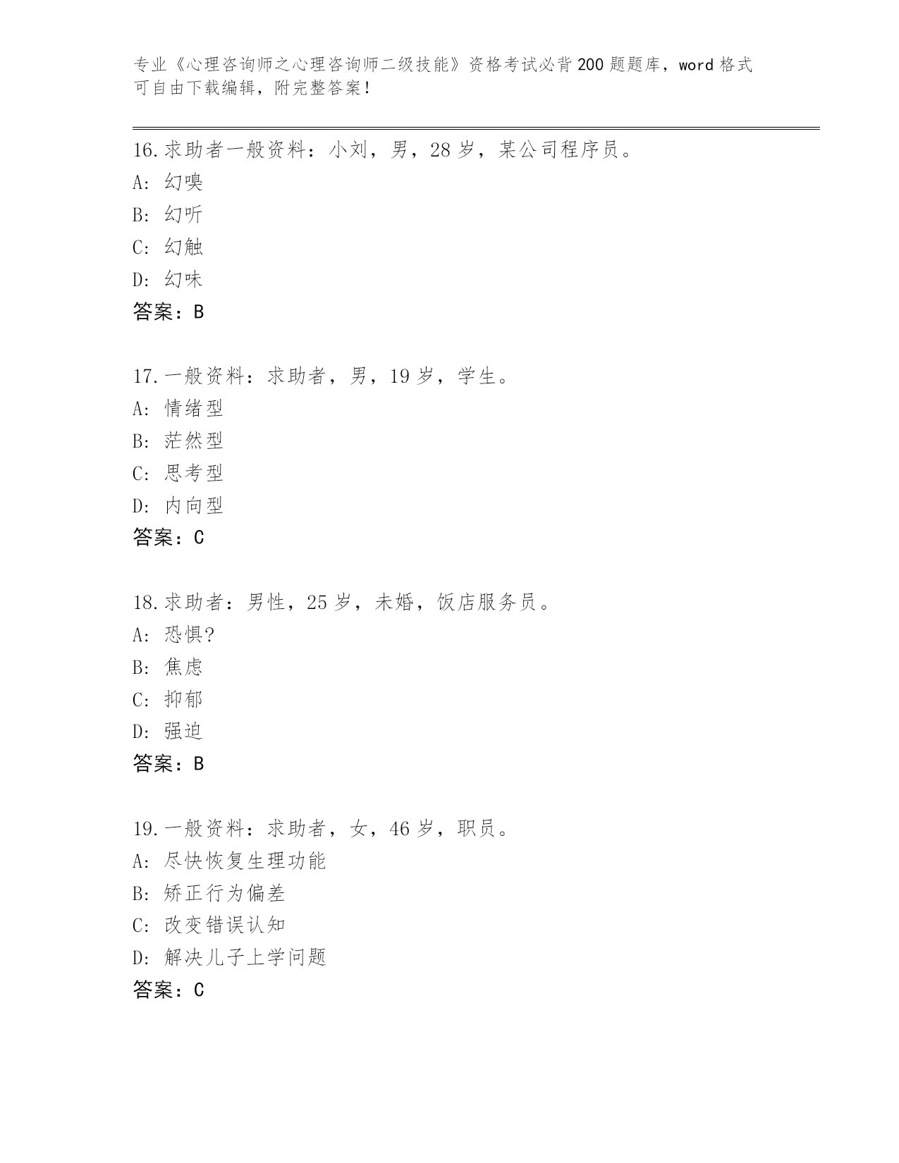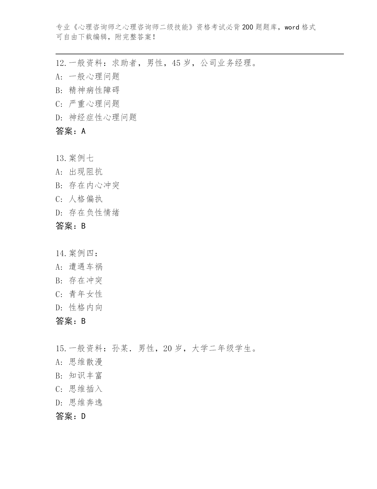 河南省《心理咨询师之心理咨询师二级技能》资格考试必背200题真题题库及答案()
