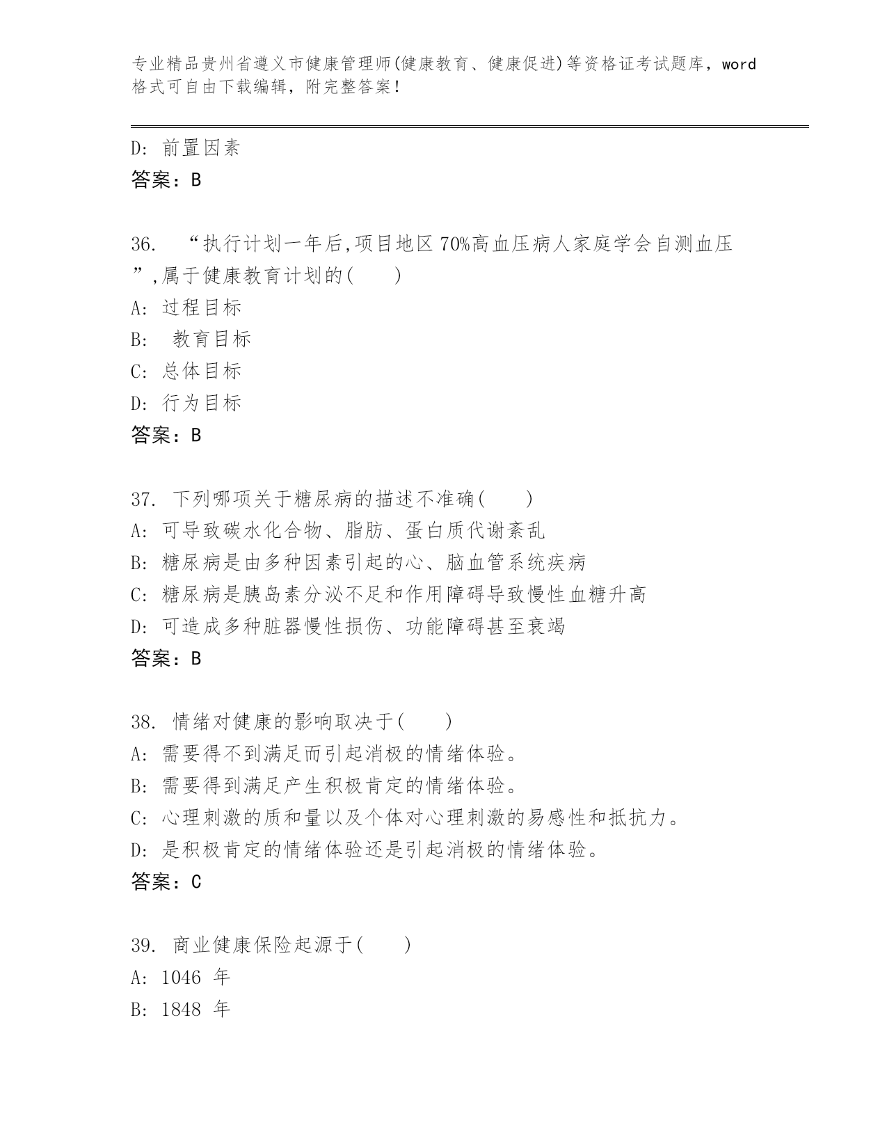 精品贵州省遵义市健康管理师(健康教育、健康促进)等资格证考试及下载答案.docx