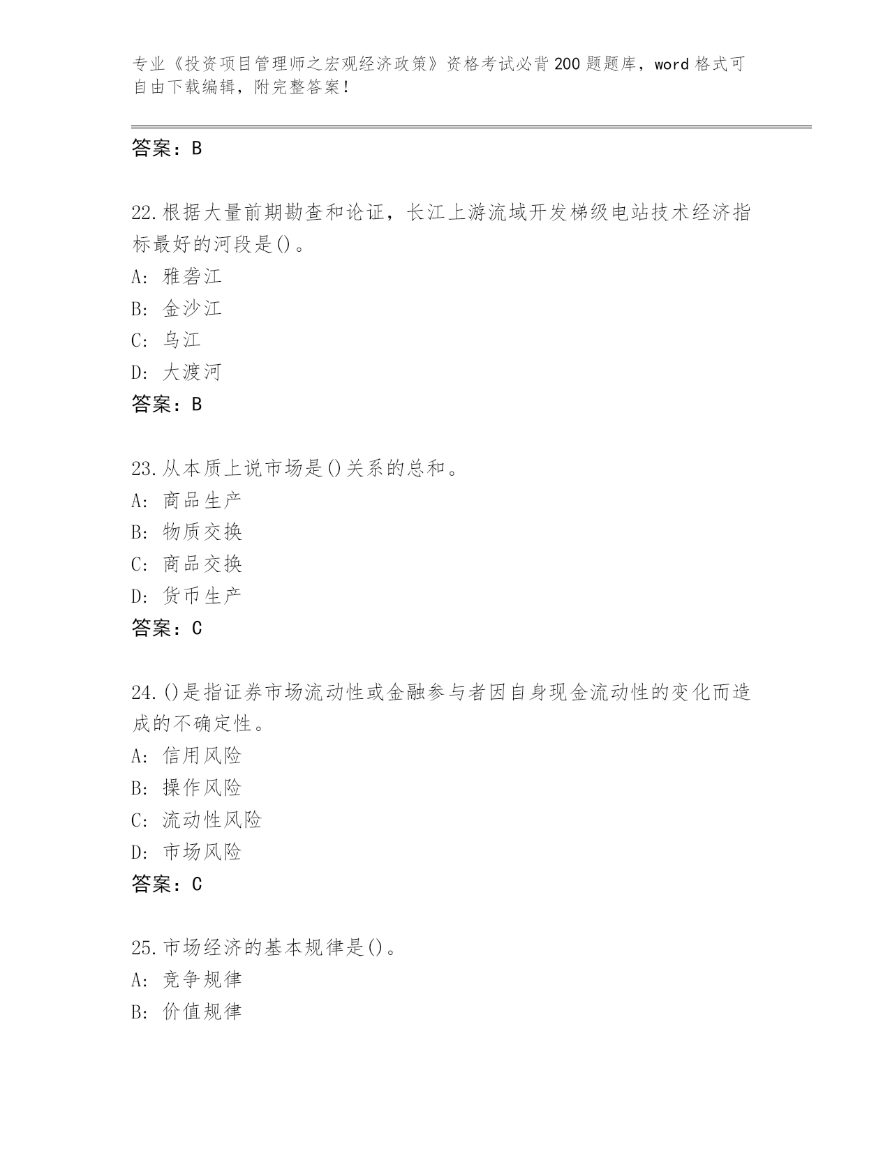整理河南省社旗县《投资项目管理师之宏观经济政策》资格考试必背200题真题【含答案】