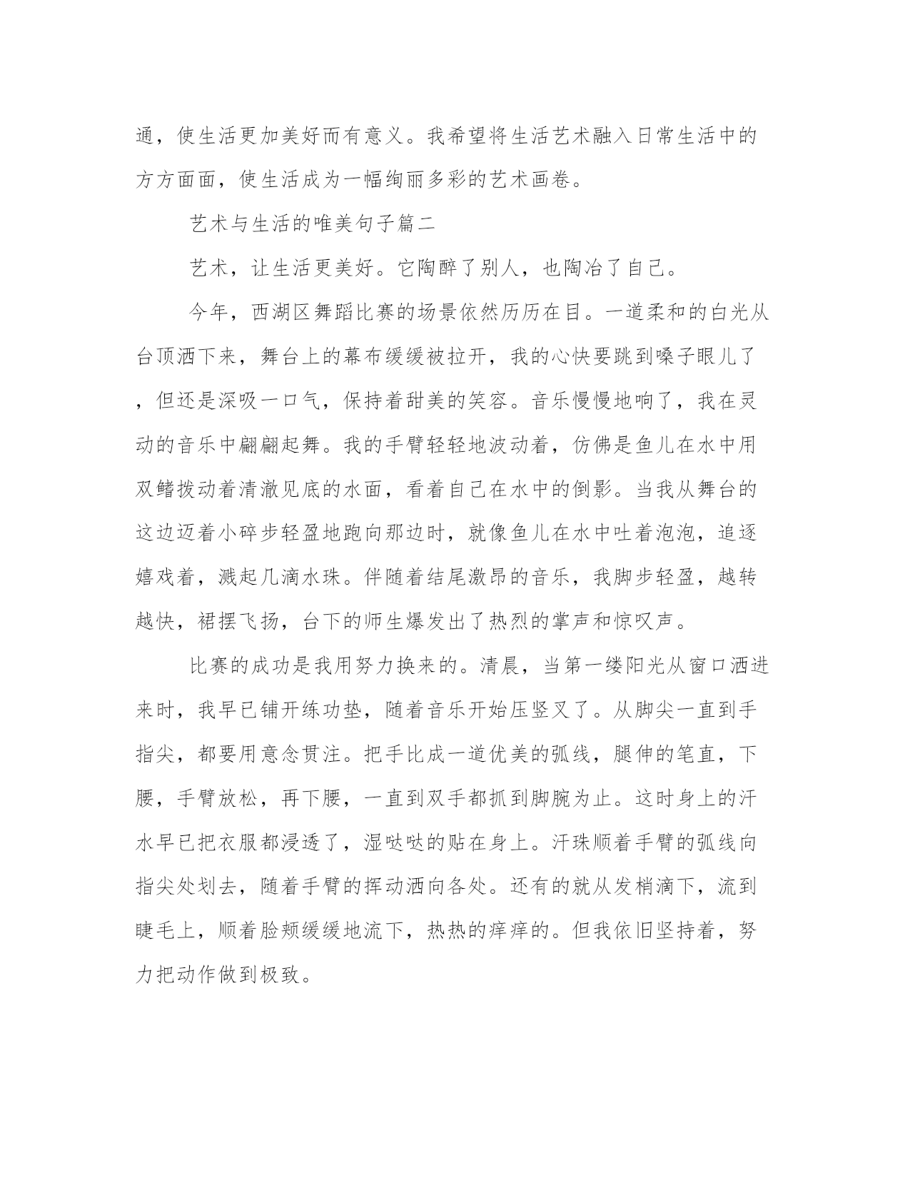 2023年艺术与生活的唯美句子生活艺术心得体会(模板14篇).docx