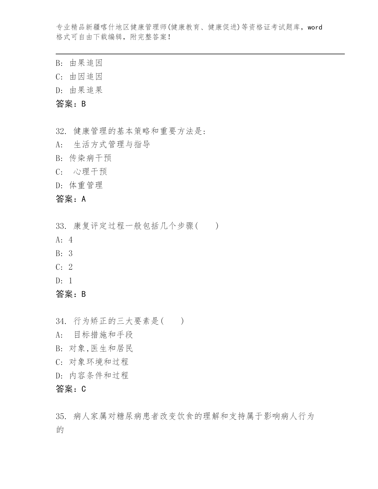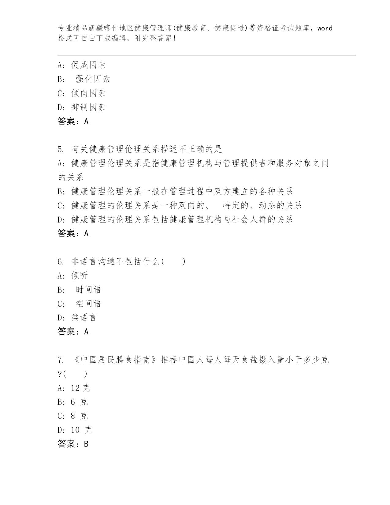 最新新疆喀什地区健康管理师(健康教育、健康促进)等资格证考试真题(综合题).docx