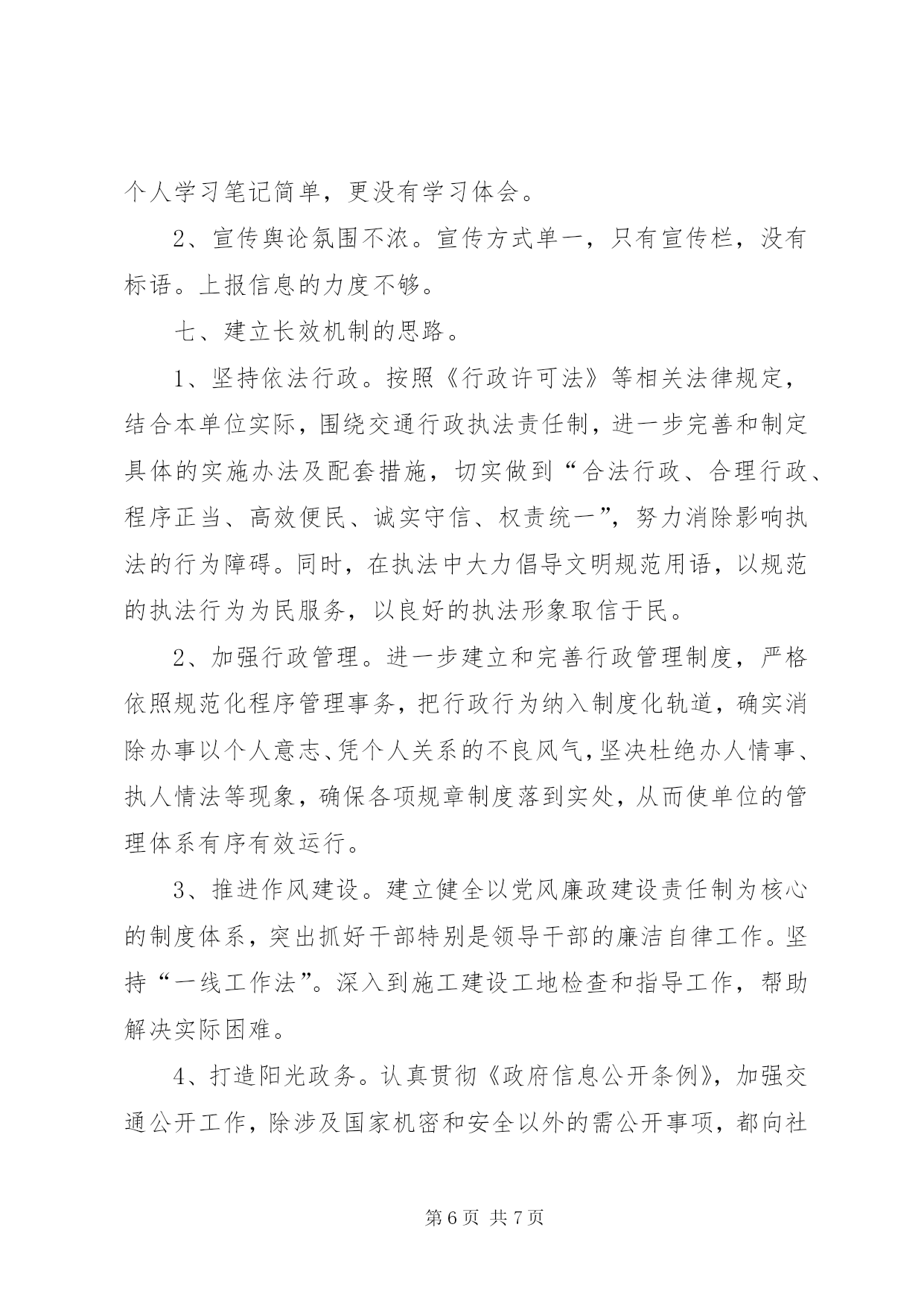 第PAGE\*Arabic\*MERGEFORMAT7页共NUMPAGES\*MERGEFORMAT7页司法局年终工作总结我局认真贯彻落实中共县委、县人民政府《关于在全县开展“三项建设”专项教育活动的意见》(泸发〔〕23号)和《县交通局“三项建设”专项教育活动实施方案》的文件精神。按文件要求,我局开展的“三项建设”活动进展顺利,并取得了显著的成效,现根据县纪律检查委员会、县委组织部、县监察局、县人事局《关于对全县机关纪律作风建设情况进行专项检查的通知》(泸纪发14号)要求,结合我局工作实际,就我局机关纪律作风建设情况总结如下:一、导高度重视,行动积极2月,在全局开展以“业务建设、作风建设、环境建设”为主要内容的县“三项建设”学习活动。局领导高度重视,积极行动,认真落实“三项建设”活动的各项任务。我局认真贯彻落实科学发展观,以新一轮思想大解放推动我局工作发展,全力加强“三项”建设。一是成立了以王江民局长为组长,副局长杨礼清、主任科员董庆云为副组长,各部门负责人为成员的县“三项建设”活动领导小组,领导小组下设办公室,具体负责日常工作。二是制定实施方案,结合本单位实际,我局制定了具体实施方案,深刻领会开展“三项建设”活动的重大意义;明确目的,端正作风,切实把握“三项建设”活动的指导思想、基本原则和目标要求;精心安排,形成一把手负总责,一级抓一级,层层落实的工作格局。“三项建设”活动分四个阶段进行:1、学习提高阶段;2、分析检查阶段;3、整改落实阶段;4、总结考评阶段。二、及时召开动员大会,认真学习,营造良好学习氛围。1、及时召开动员大会。我局党支部于2月27日召XX县区交通局全局党员干部职工会议。会上局长王江民同志首先传XX县区委、县政府《关于在全县开展“三项建设”专项教育活动的意见》(泸发〔〕23号)和《县交通局“三项建设”专项教育活动实施方案》精神,指出我局今年将解放思想学习讨论活动和“三项建设”活动有机结合起来,全面增强全体党员干部职工的发展意识、开放意识、服务意识;切实转变工作作风、提高业务水平;营造良好环境,实现我县交通率先发展。局长王江民动员全体党员、干部要充分发挥先锋模范带头作用,在活动中要坚持工作学习两不误。并要求全局干部职工结合当前实际,进一步强化对开展作风整顿的重要性和必要性的认识,增强全局抓作风建设和效能建设的责任感和紧迫感。动员全体干部职工进一步昂扬精神状态,提升精气神,在本职岗位上干好事、干成事、不出事,在推进全县交通事业又好又快发展上发挥积极作用。2、认真学习,营造良好学习氛围。运用多种形式广泛发动干部群众积极投身学习讨论活动,利用县交通局宣传栏、横额标语等广泛宣传,提高大家的对活动的认识,营造良好学习氛围。组织干部学习党的大和届三中全会会议精神,省第八次党代会、州第六次党代会XX县区委十届六次全会精神及有关交通法律、法规和各种业务知识。通过学习,不断拓展广大党员干部的工作思路,提高工作能力,增强落实科学发展观的本领和才干。三、征求意见,认真查摆。局机关结合实践科学发展观活动的开展,紧密联系思想和工作实际,认真查找并深刻剖析领导班子成员在思想政治建设、党性党风、效能建设和对所属基层单位监管等方面存在的突出问题,认真查找局机关工作人员是否存在纪律松懈、作风飘浮等方面存在的问题。通过发放征求意见表、座谈会和谈心活动等方式,找出了理论学习系统性、深入性不够、工作作风不够深、创新意识不够强等问题,针对存在问题,局党委召开了专题会议制定了整改措施予以改进。并设立举报电话和意见箱,召开座谈会,广泛征求该所在组织纪律、依法行政、服务办事、廉洁自律等方面存在的问题意见和建议,制定出初步的整改措施,把作风整顿工作落到实处。我局力求通过整顿、整改,努力把交通队伍建设成为一支思想素质好、纪律严明、作风正派、业务过硬,能够让党和政府放心,群众满意,更好地适应交通事业发展需要的高素质队伍。我局广大党员干部职工,积极按照作风整顿的要求,不仅坚持把学习贯穿了活动的整个过程,还把征求意见、查找问题贯穿始终,遵循“实事求是、客观准确”的原则,结合征求意见时收集到的群众提出的问题和不足,查找存在问题,撰写自我剖析材料,逐条逐项找差距,分析问题查原因,自觉提出了整改措施和努力方向。同时,还将个人剖析材料在民主评议会上通过,采取发放评议表的形式,对每位同志进行评议,起到了相互监督、相互促进、共同提高的作用。四、制定方案,认真整改1、根据征求到的意见和梳理出的问题,认真制定切实可行的整改方案。整改方案明确了整改重点,确定了整改时间。2、将整改任务进行了分解,落实到科(室)和具体的责任人。做到边整边改,边改边落实。对理论学习上存在的问题,进一明确了党支部学习制度和完善了学习日制度,通过制度的执行,确保有足够的学习时间和学习