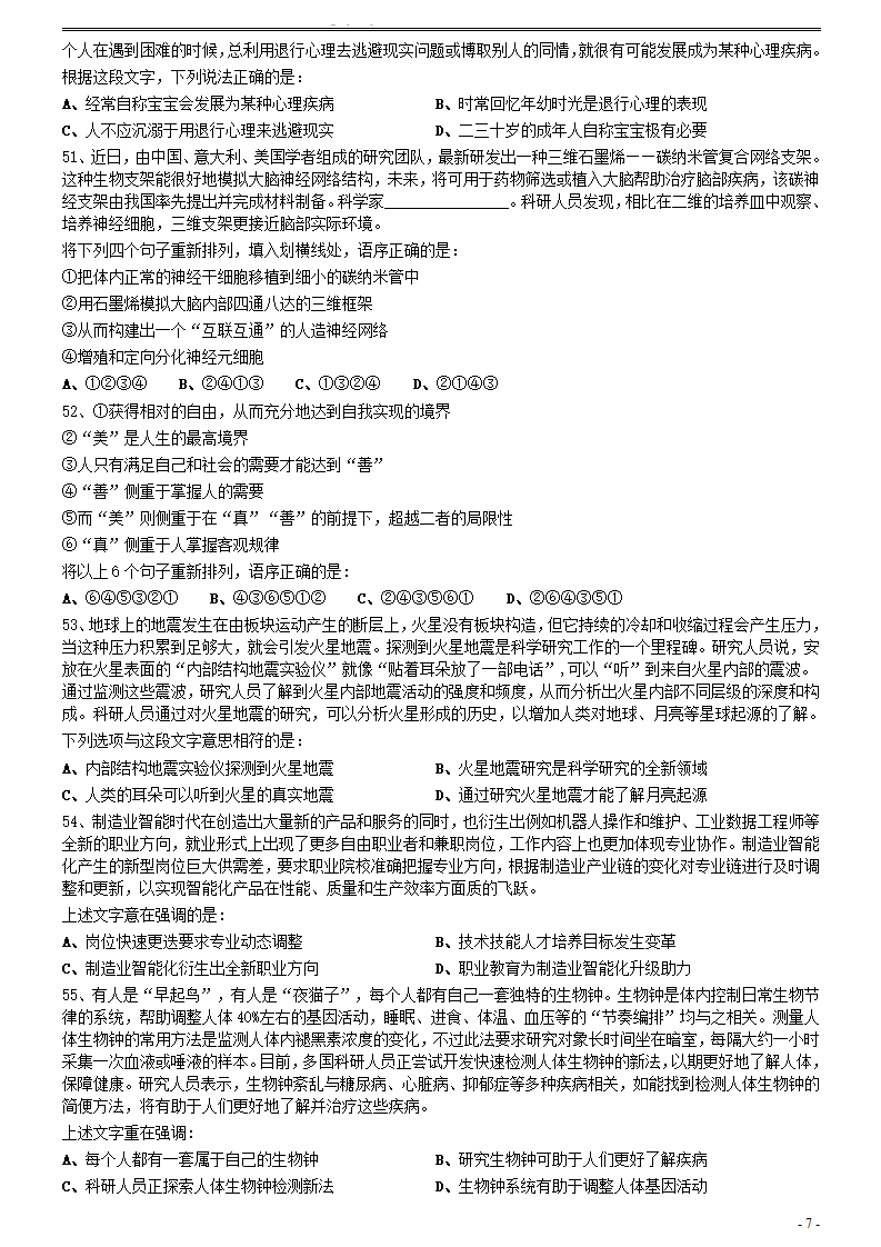 2021年0327内蒙古公务员考试《行测》真题(缺1题)