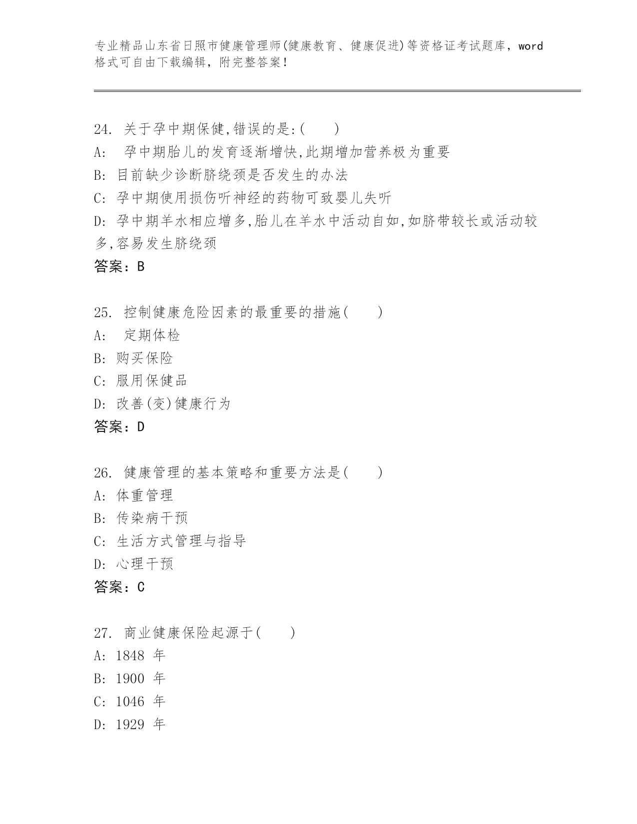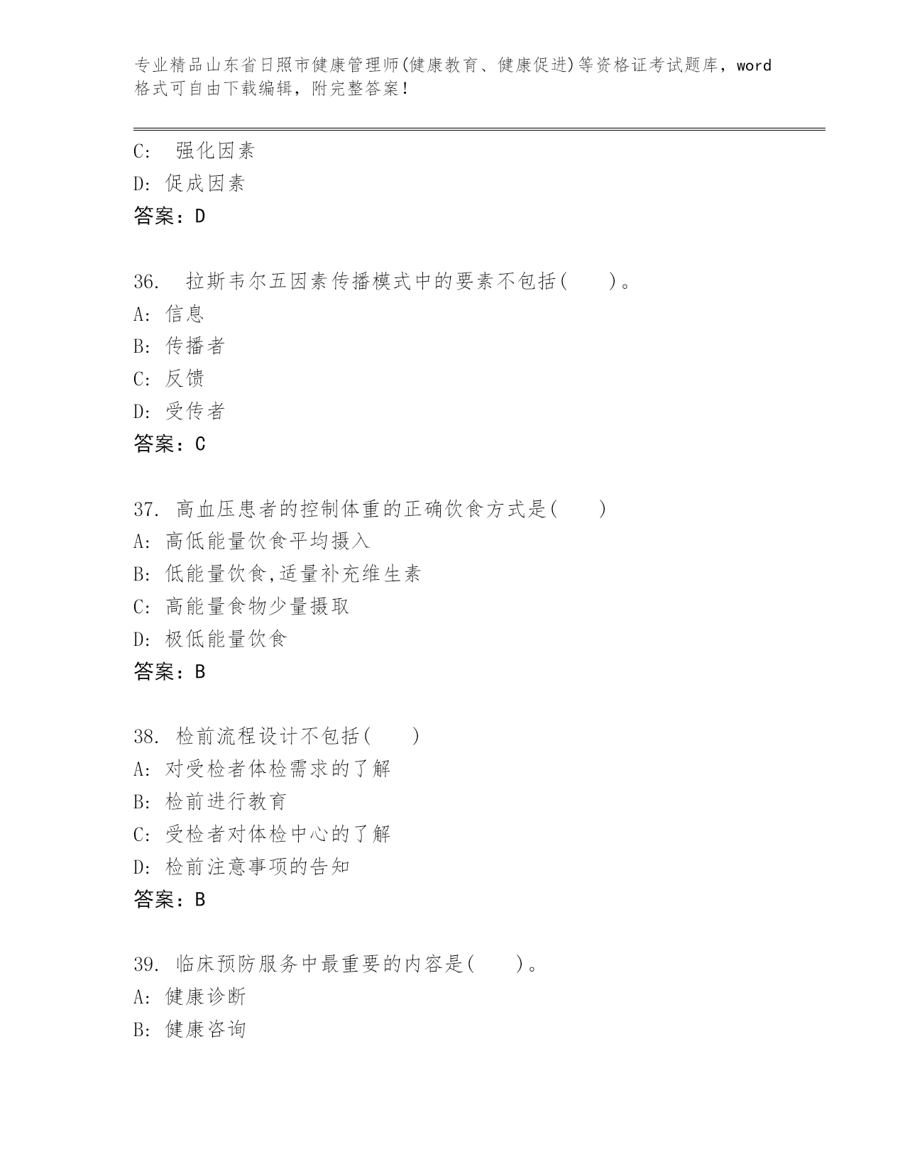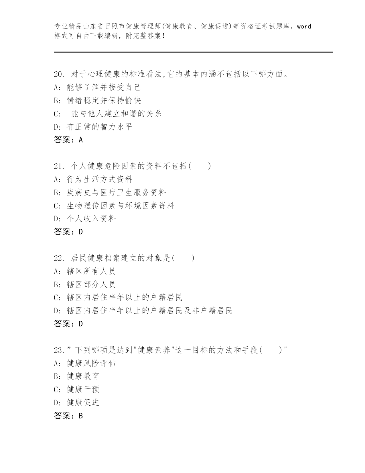 优选山东省日照市健康管理师(健康教育、健康促进)等资格证考试及参考答案(巩固)