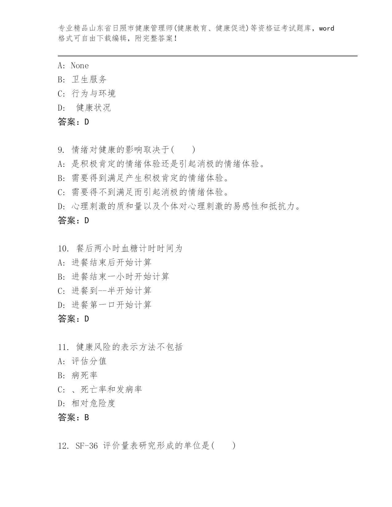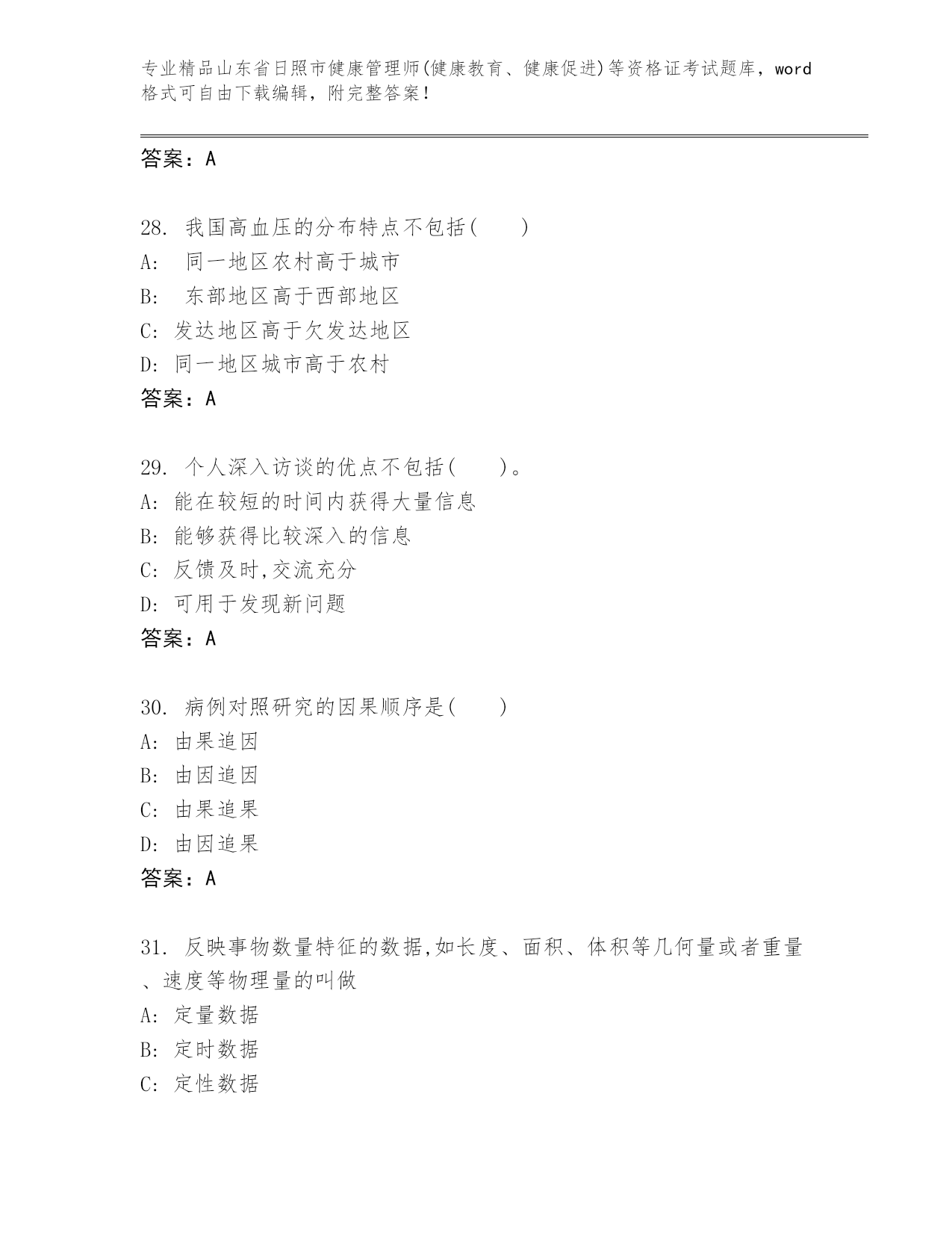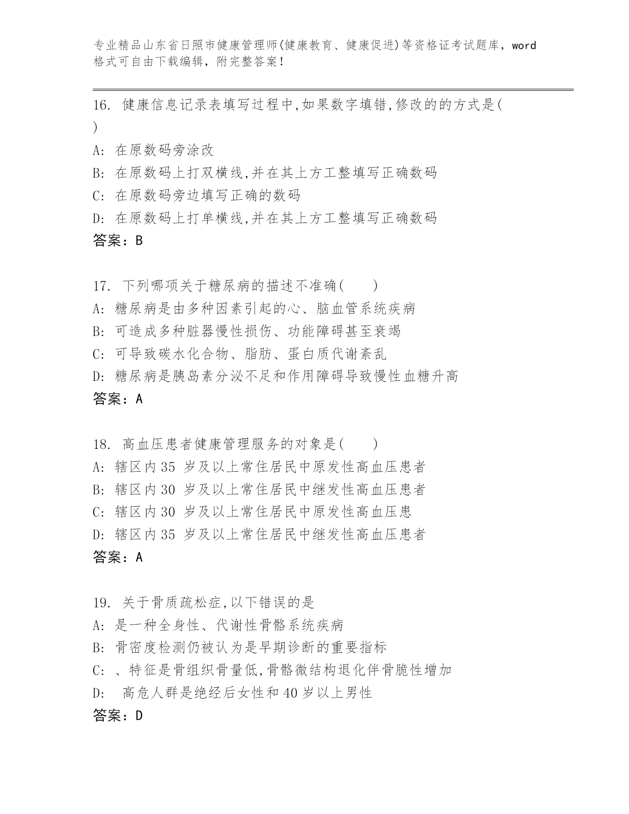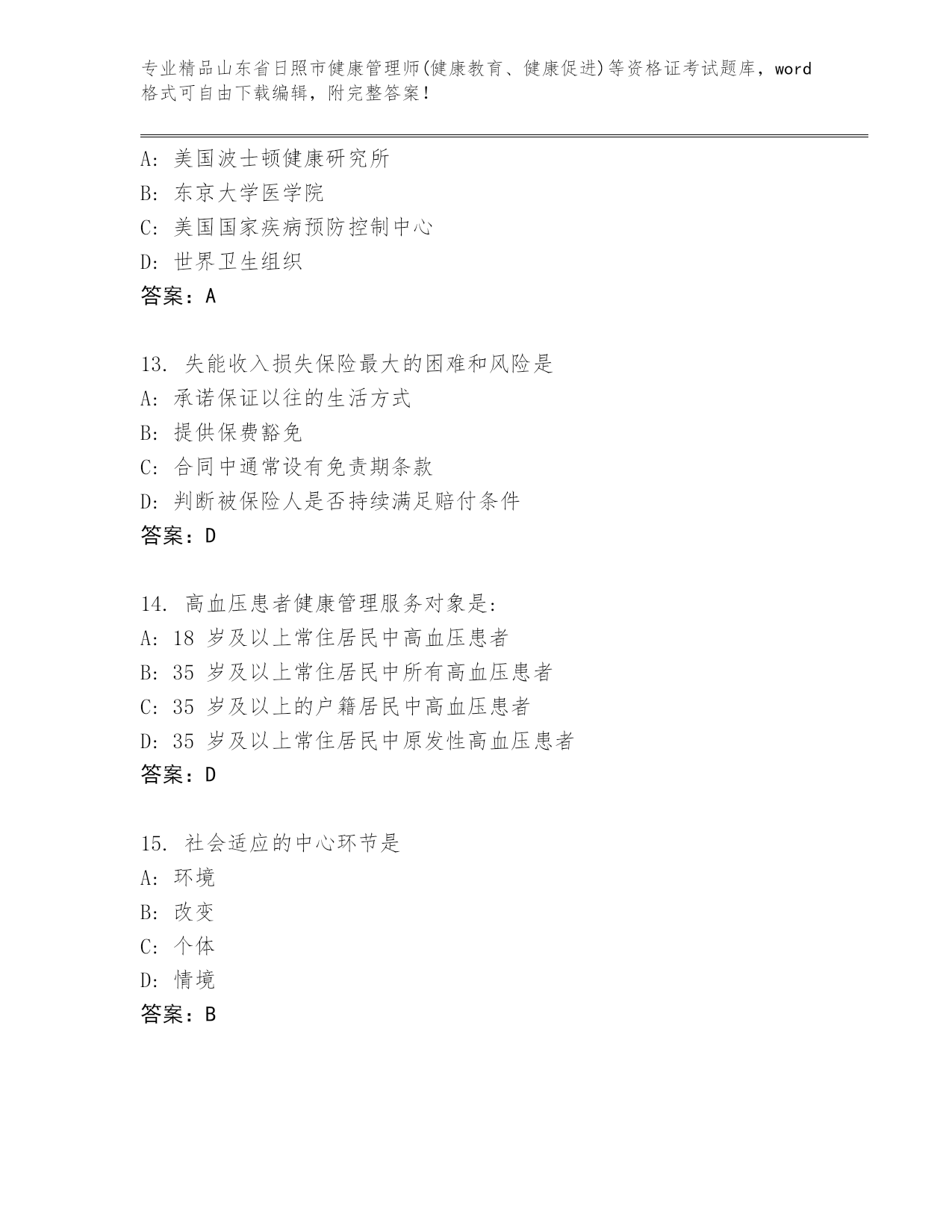 优选山东省日照市健康管理师(健康教育、健康促进)等资格证考试及参考答案(巩固)