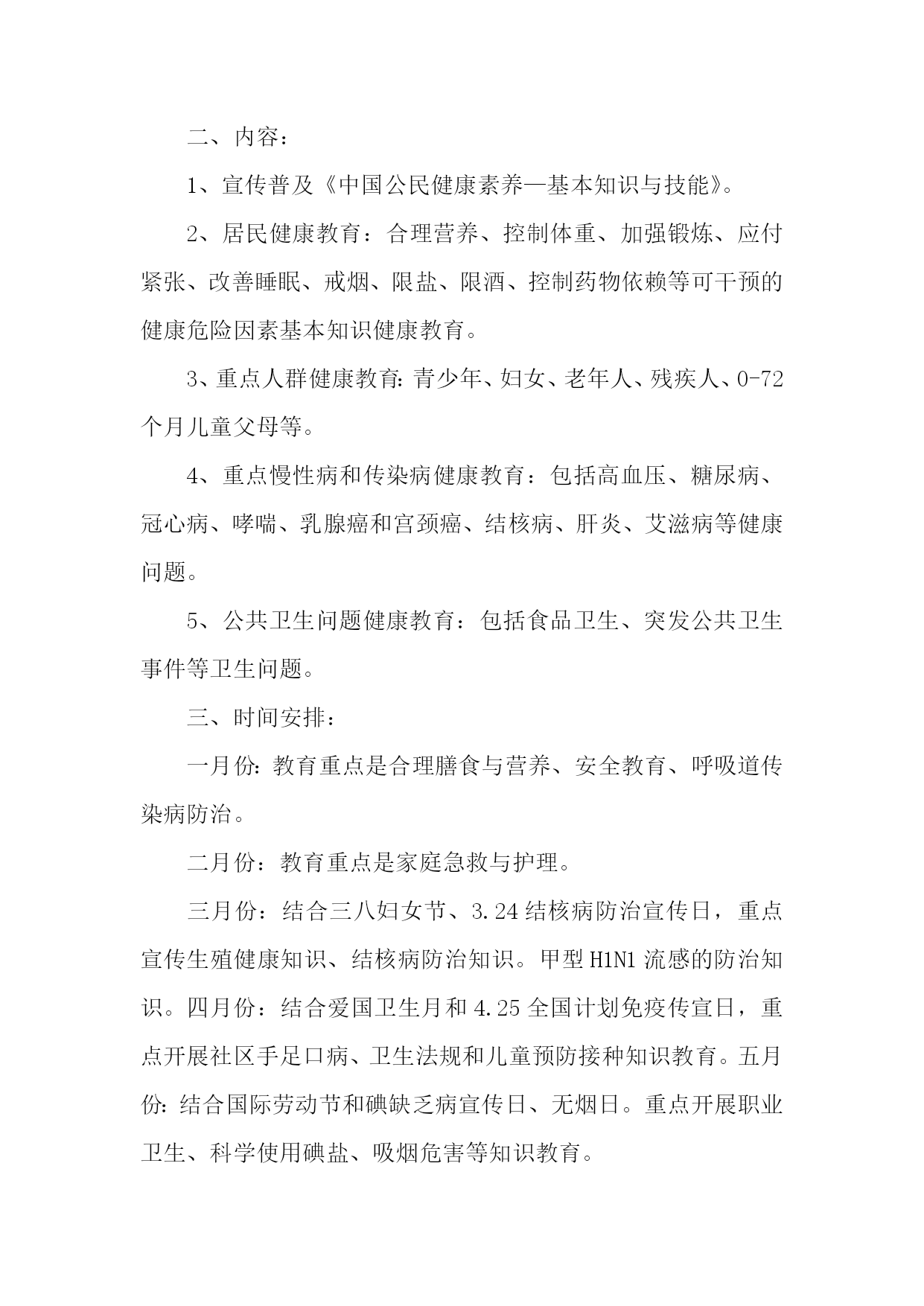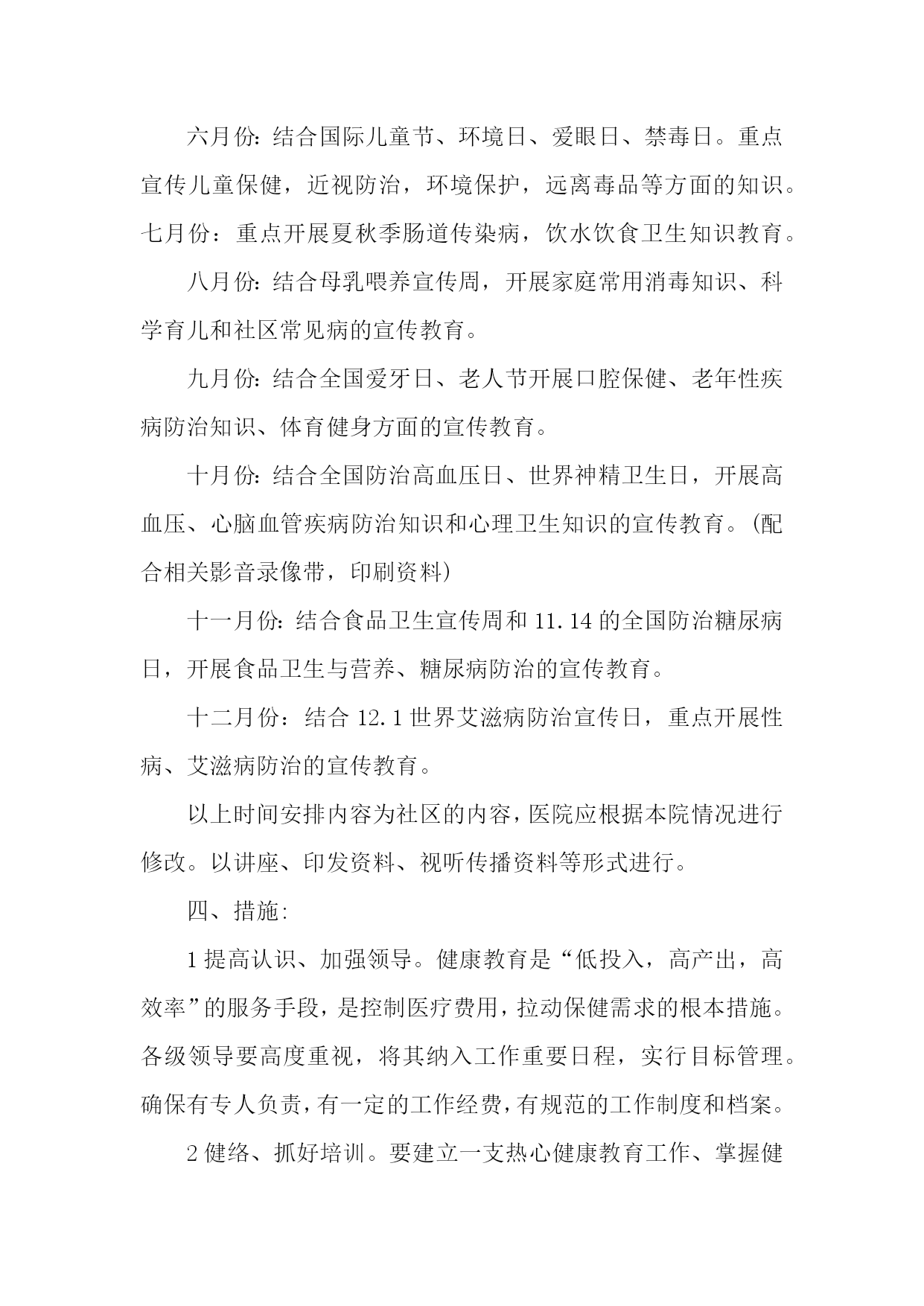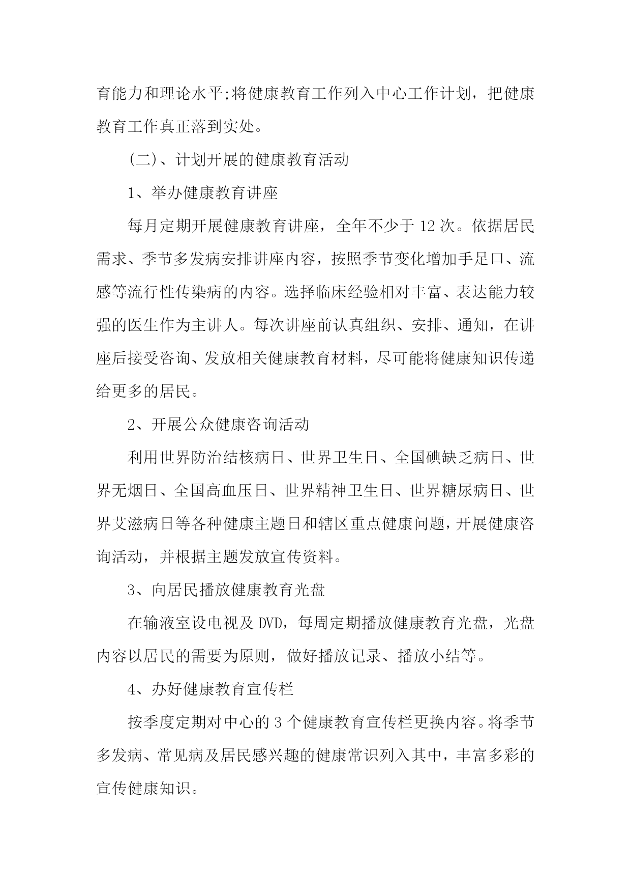 公共卫生健康教育工作计划2019【导语】凡事预则立,不预则废。有计划,就等于明确了工作的方向和方法,就有了工作的标准流程。就不会出现先射击后画靶子的情况,打到哪儿就算哪儿。以下是为大家整理的《公共卫生健康教育工作计划2019》,给大家作为参考,欢迎阅读!【篇一】一、主要工作任务依照健康教育工作规范要求,做好健康教育与健康促进各项工作任务。围绕高血压,糖尿病,重症精神病等慢性病,结合各种卫生日主题开展宣传活动。特别是针对青少年,妇女,老年人,残疾人,0-6岁儿童家长等人群开展群众性的健康安全和防范教育,提高群众健康生活方式和可干预危险因素的健康教育。加强健康教育网络信息建设,促进健康教育网络信息规范化。加强健康教育档案规范化管理。二、主要工作措施(一)、健全组织机构,完善健教工作网络完善的健康教育网络是开展健康教育工作的组织保证和有效措施,201x年我们将结合本乡镇实际情况,调整充实健康教育志愿者队伍,加强健康教育志愿者培训;组织人员积极参加市、区、疾控部门组织的各类培训,提高健康教育工作者自身健康教育能力和理论水平;将健康教育工作列入中心工作计划,把健康教育工作真正落到实处。(二)、计划开展的健康教育活动1、举办健康教育讲座每月定期开展健康教育讲座,全年不少于12次。依据居民需求、季节多发病安排讲座内容,按照季节变化增加手足口、流感等流行性传染病的内容。选择临床经验相对丰富、表达能力较强的医生作为主讲人。每次讲座前认真组织、安排、通知,在讲座后接受咨询、发放相关健康教育材料,尽可能将健康知识传递给更多的居民。2、开展公众健康咨询活动利用世界防治结核病日、世界卫生日、全国碘缺乏病日、世界无烟日、全国高血压日、世界精神卫生日、世界糖尿病日、世界艾滋病日等各种健康主题日和辖区重点健康问题,开展健康咨询活动,并根据主题发放宣传资料。3、向居民播放健康教育光盘在输液室设电视及DVD,每周定期播放健康教育光盘,光盘内容以居民的需要为原则,做好播放记录、播放小结等。4、办好健康教育宣传栏按季度定期对中心的3个健康教育宣传栏更换内容。将季节多发病、常见病及居民感兴趣的健康常识列入其中,丰富多彩的宣传健康知识。5、发挥取阅架的作用中心大厅设健康教育取阅架,每月定期整理,将居民需要的健康教育材料摆放其中,供居民免费索取。(四)、健康教育效果评估对辖区1%的人口科学规范的进行一次健康知识知晓、技能掌握、行为形成情况和健康需求等内容的健康教育效果评估。健康教育专干主要负责设计调查方案、调查问卷、评估总结等工作。(五)、健康教育覆盖计划于20xx开展的健康教育讲座、公众健康咨询活动、健康知识竞赛、播放健康教育光盘、发放健康教育材料等工作的受教育人数覆盖辖区人口的70%以上,争取让更多的居民学习到需要的健康知识,从根本上提高居民自身的健康知识水平和保健能力,促进人们养成良好的卫生行为习惯。【篇二】一、目标:通过开展各种形式的健康教育活动,进一步指导各社区(村)的健康教育工作,以达到营造健康的环境,培育健康理念,优化健康的设施、完善健康的服务,拥有健康的人群的目的。使辖区居民群众掌握有关的健康知识和卫生保健常识,增强大卫生意识、创建意识和自我保健意识,形成一定的健康行为规范,倡导良好的生活习惯和健康的生活方式。二、内容:1、宣传普及《中国公民健康素养—基本知识与技能》。2、居民健康教育:合理营养、控制体重、加强锻炼、应付紧张、改善睡眠、戒烟、限盐、限酒、控制药物依赖等可干预的健康危险因素基本知识健康教育。3、重点人群健康教育:青少年、妇女、老年人、残疾人、0-72个月儿童父母等。4、重点慢性病和传染病健康教育:包括高血压、糖尿病、冠心病、哮喘、乳腺癌和宫颈癌、结核病、肝炎、艾滋病等健康问题。5、公共卫生问题健康教育:包括食品卫生、突发公共卫生事件等卫生问题。三、时间安排:一月份:教育重点是合理膳食与营养、安全教育、呼吸道传染病防治。二月份:教育重点是家庭急救与护理。三月份:结合三八妇女节、3.24结核病防治宣传日,重点宣传生殖健康知识、结核病防治知识。甲型H1N1流感的防治知识。四月份:结合爱国卫生月和4.25全国计划免疫传宣日,重点开展社区手足口病、卫生法规和儿童预防接种知识教育。五月份:结合国际劳动节和碘缺乏病宣传日、无烟日。重点开展职业卫生、科学使用碘盐、吸烟危害等知识教育。六月份:结合国际儿童节、环境日、爱眼日、禁毒日。重点宣传儿童保健,近视防治,环境保护,远离毒品等方面的知识。七月份:重点开展夏秋季肠道传染病,饮水饮食卫生知识教育。八月份:结合母乳喂养宣传周,开展家庭常用消毒知识、科学育儿和社区常见病的宣传教育。九月份:结合全国爱牙日、老人节开展口腔保健、老年性疾病防治知识、体育健身方面的宣传教育。十月份:结合全国防治高血压日、世界神精卫生日,