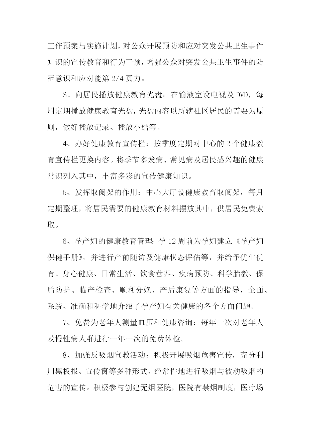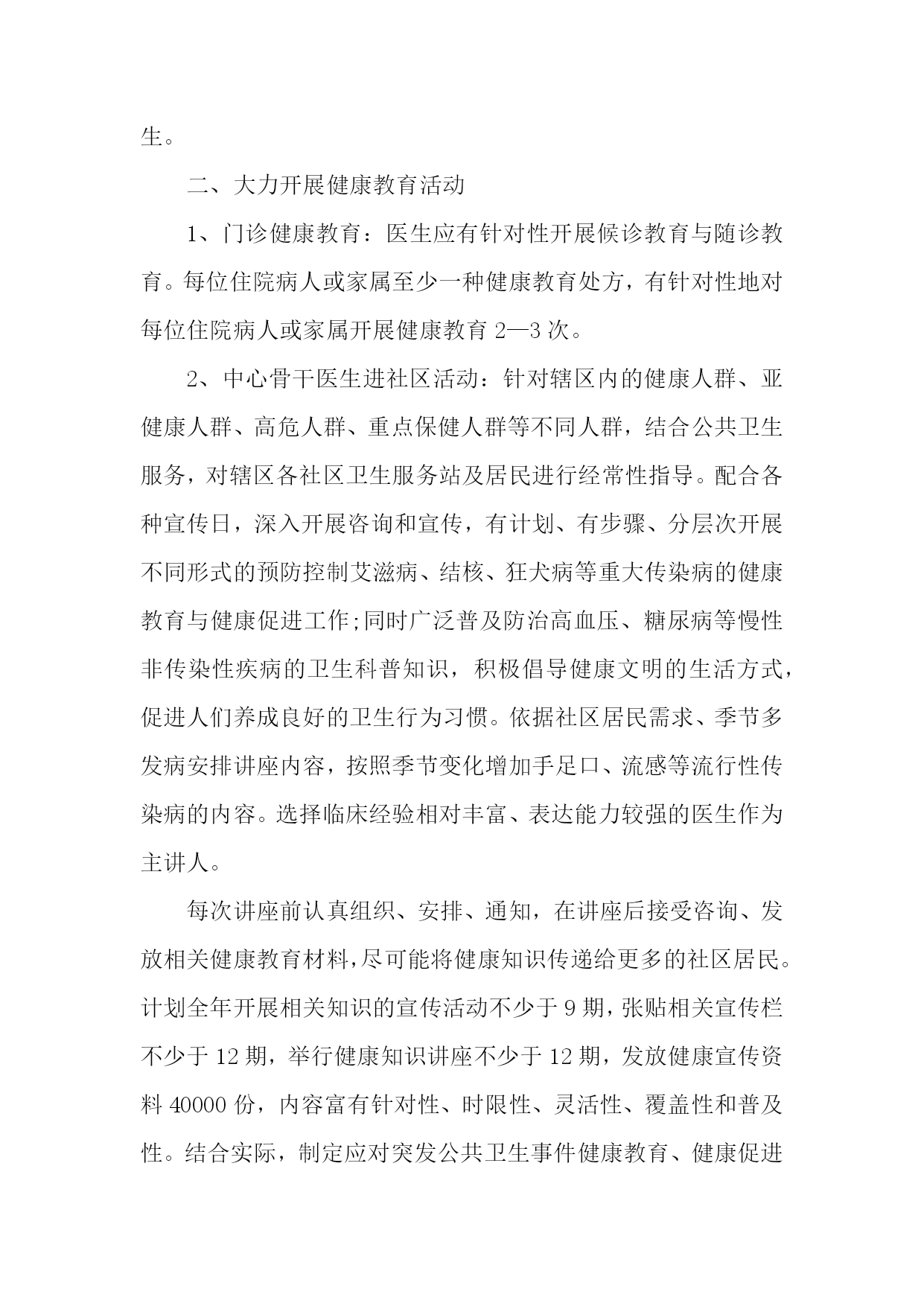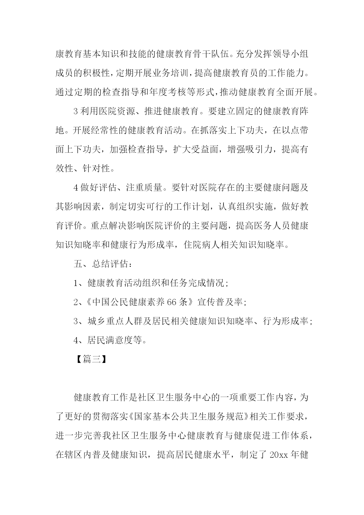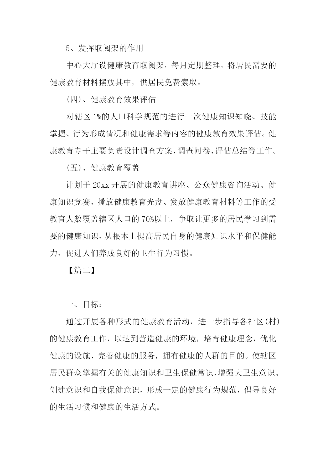 公共卫生健康教育工作计划2019【导语】凡事预则立,不预则废。有计划,就等于明确了工作的方向和方法,就有了工作的标准流程。就不会出现先射击后画靶子的情况,打到哪儿就算哪儿。以下是为大家整理的《公共卫生健康教育工作计划2019》,给大家作为参考,欢迎阅读!【篇一】一、主要工作任务依照健康教育工作规范要求,做好健康教育与健康促进各项工作任务。围绕高血压,糖尿病,重症精神病等慢性病,结合各种卫生日主题开展宣传活动。特别是针对青少年,妇女,老年人,残疾人,0-6岁儿童家长等人群开展群众性的健康安全和防范教育,提高群众健康生活方式和可干预危险因素的健康教育。加强健康教育网络信息建设,促进健康教育网络信息规范化。加强健康教育档案规范化管理。二、主要工作措施(一)、健全组织机构,完善健教工作网络完善的健康教育网络是开展健康教育工作的组织保证和有效措施,201x年我们将结合本乡镇实际情况,调整充实健康教育志愿者队伍,加强健康教育志愿者培训;组织人员积极参加市、区、疾控部门组织的各类培训,提高健康教育工作者自身健康教育能力和理论水平;将健康教育工作列入中心工作计划,把健康教育工作真正落到实处。(二)、计划开展的健康教育活动1、举办健康教育讲座每月定期开展健康教育讲座,全年不少于12次。依据居民需求、季节多发病安排讲座内容,按照季节变化增加手足口、流感等流行性传染病的内容。选择临床经验相对丰富、表达能力较强的医生作为主讲人。每次讲座前认真组织、安排、通知,在讲座后接受咨询、发放相关健康教育材料,尽可能将健康知识传递给更多的居民。2、开展公众健康咨询活动利用世界防治结核病日、世界卫生日、全国碘缺乏病日、世界无烟日、全国高血压日、世界精神卫生日、世界糖尿病日、世界艾滋病日等各种健康主题日和辖区重点健康问题,开展健康咨询活动,并根据主题发放宣传资料。3、向居民播放健康教育光盘在输液室设电视及DVD,每周定期播放健康教育光盘,光盘内容以居民的需要为原则,做好播放记录、播放小结等。4、办好健康教育宣传栏按季度定期对中心的3个健康教育宣传栏更换内容。将季节多发病、常见病及居民感兴趣的健康常识列入其中,丰富多彩的宣传健康知识。5、发挥取阅架的作用中心大厅设健康教育取阅架,每月定期整理,将居民需要的健康教育材料摆放其中,供居民免费索取。(四)、健康教育效果评估对辖区1%的人口科学规范的进行一次健康知识知晓、技能掌握、行为形成情况和健康需求等内容的健康教育效果评估。健康教育专干主要负责设计调查方案、调查问卷、评估总结等工作。(五)、健康教育覆盖计划于20xx开展的健康教育讲座、公众健康咨询活动、健康知识竞赛、播放健康教育光盘、发放健康教育材料等工作的受教育人数覆盖辖区人口的70%以上,争取让更多的居民学习到需要的健康知识,从根本上提高居民自身的健康知识水平和保健能力,促进人们养成良好的卫生行为习惯。【篇二】一、目标:通过开展各种形式的健康教育活动,进一步指导各社区(村)的健康教育工作,以达到营造健康的环境,培育健康理念,优化健康的设施、完善健康的服务,拥有健康的人群的目的。使辖区居民群众掌握有关的健康知识和卫生保健常识,增强大卫生意识、创建意识和自我保健意识,形成一定的健康行为规范,倡导良好的生活习惯和健康的生活方式。二、内容:1、宣传普及《中国公民健康素养—基本知识与技能》。2、居民健康教育:合理营养、控制体重、加强锻炼、应付紧张、改善睡眠、戒烟、限盐、限酒、控制药物依赖等可干预的健康危险因素基本知识健康教育。3、重点人群健康教育:青少年、妇女、老年人、残疾人、0-72个月儿童父母等。4、重点慢性病和传染病健康教育:包括高血压、糖尿病、冠心病、哮喘、乳腺癌和宫颈癌、结核病、肝炎、艾滋病等健康问题。5、公共卫生问题健康教育:包括食品卫生、突发公共卫生事件等卫生问题。三、时间安排:一月份:教育重点是合理膳食与营养、安全教育、呼吸道传染病防治。二月份:教育重点是家庭急救与护理。三月份:结合三八妇女节、3.24结核病防治宣传日,重点宣传生殖健康知识、结核病防治知识。甲型H1N1流感的防治知识。四月份:结合爱国卫生月和4.25全国计划免疫传宣日,重点开展社区手足口病、卫生法规和儿童预防接种知识教育。五月份:结合国际劳动节和碘缺乏病宣传日、无烟日。重点开展职业卫生、科学使用碘盐、吸烟危害等知识教育。六月份:结合国际儿童节、环境日、爱眼日、禁毒日。重点宣传儿童保健,近视防治,环境保护,远离毒品等方面的知识。七月份:重点开展夏秋季肠道传染病,饮水饮食卫生知识教育。八月份:结合母乳喂养宣传周,开展家庭常用消毒知识、科学育儿和社区常见病的宣传教育。九月份:结合全国爱牙日、老人节开展口腔保健、老年性疾病防治知识、体育健身方面的宣传教育。十月份:结合全国防治高血压日、世界神精卫生日,