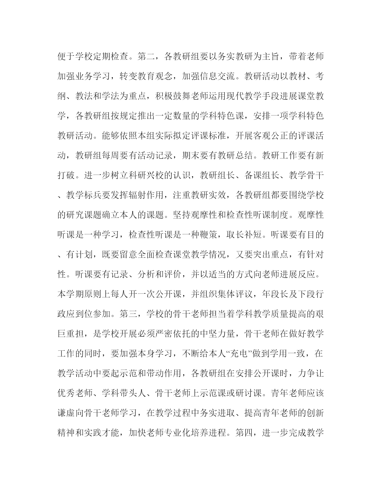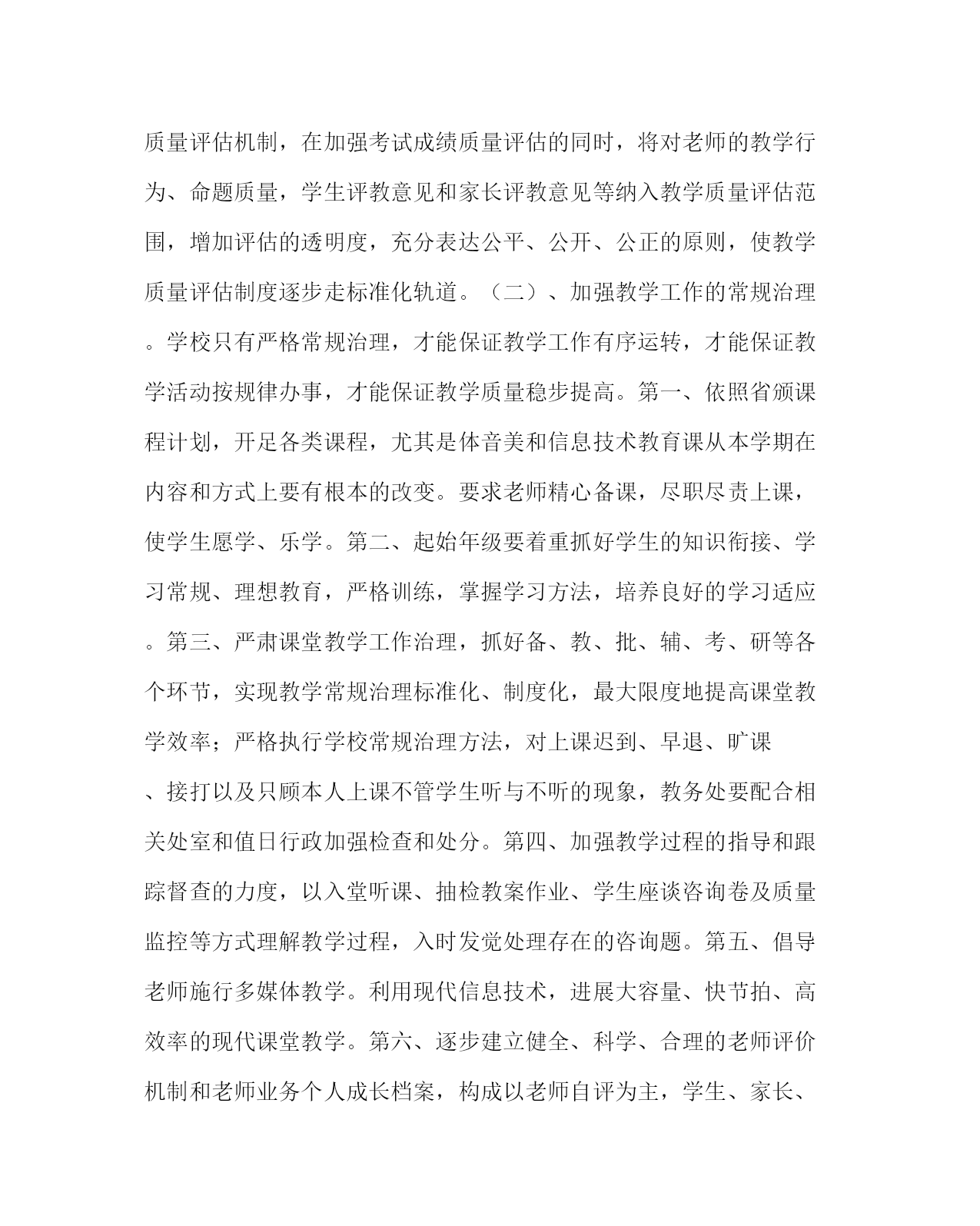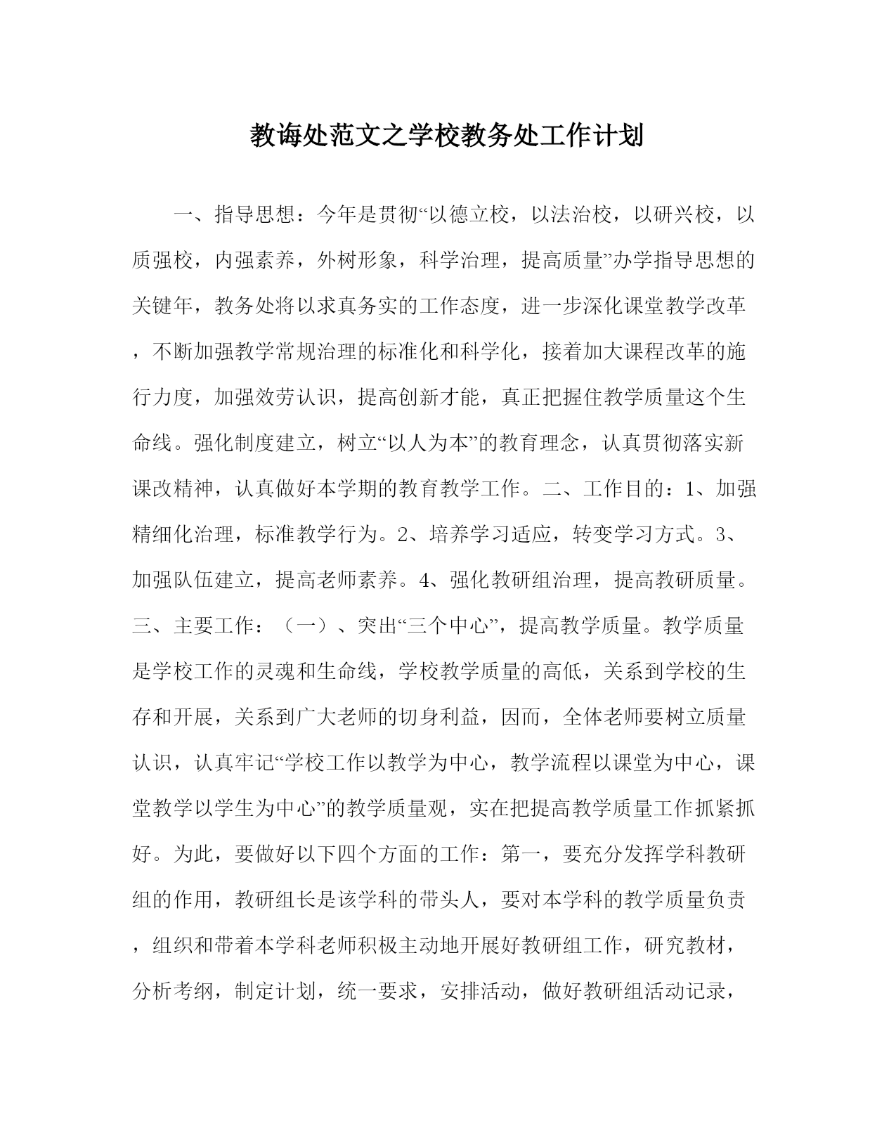 教诲处范文之学校教务处工作计划一、指导思想:今年是贯彻“以德立校,以法治校,以研兴校,以质强校,内强素养,外树形象,科学治理,提高质量”办学指导思想的关键年,教务处将以求真务实的工作态度,进一步深化课堂教学改革,不断加强教学常规治理的标准化和科学化,接着加大课程改革的施行力度,加强效劳认识,提高创新才能,真正把握住教学质量这个生命线。强化制度建立,树立“以人为本”的教育理念,认真贯彻落实新课改精神,认真做好本学期的教育教学工作。二、工作目的:1、加强精细化治理,标准教学行为。2、培养学习适应,转变学习方式。3、加强队伍建立,提高老师素养。4、强化教研组治理,提高教研质量。三、主要工作:(一)、突出“三个中心”,提高教学质量。教学质量是学校工作的灵魂和生命线,学校教学质量的高低,关系到学校的生存和开展,关系到广大老师的切身利益,因而,全体老师要树立质量认识,认真牢记“学校工作以教学为中心,教学流程以课堂为中心,课堂教学以学生为中心”的教学质量观,实在把提高教学质量工作抓紧抓好。为此,要做好以下四个方面的工作:第一,要充分发挥学科教研组的作用,教研组长是该学科的带头人,要对本学科的教学质量负责,组织和带着本学科老师积极主动地开展好教研组工作,研究教材,分析考纲,制定计划,统一要求,安排活动,做好教研组活动记录,便于学校定期检查。第二,各教研组要以务实教研为主旨,带着老师加强业务学习,转变教育观念,加强信息交流。教研活动以教材、考纲、教法和学法为重点,积极鼓舞老师运用现代教学手段进展课堂教学,各教研组按规定推出一定数量的学科特色课,安排一项学科特色教研活动。能够依照本组实际拟定评课标准,开展客观公正的评课活动,教研组每周要有活动记录,期末要有教研总结。教研工作要有新打破。进一步树立科研兴校的认识,教研组长、备课组长、教学骨干、教学标兵要发挥辐射作用,注重教研实效,各教研组都要围绕学校的研究课题确立本人的课题。坚持观摩性和检查性听课制度。观摩性听课是一种学习,检查性听课是一种鞭策,取长补短。听课要有目的、有计划,既要留意全面检查课堂教学情况,又要突出重点,有针对性。听课要有记录、分析和评价,并以适当的方式向老师进展反应。本学期原则上每人开一次公开课,并组织集体评议,年段长及下段行政应到位参加。第三,学校的骨干老师担当着学科教学质量提高的艰巨重担,是学校开展必须严密依托的中坚力量,骨干老师在做好教学工作的同时,要加强本身学习,不断给本人“充电”做到学用一致,在教学活动中要起示范和带动作用,各教研组在安排公开课时,力争让优秀老师、学科带头人、骨干老师上示范课或研讨课。青年老师应该谦虚向骨干老师学习,在教学过程中务实进取、提高青年老师的创新精神和实践才能,加快老师专业化培养进程。第四,进一步完成教学质量评估机制,在加强考试成绩质量评估的同时,将对老师的教学行为、命题质量,学生评教意见和家长评教意见等纳入教学质量评估范围,增加评估的透明度,充分表达公平、公开、公正的原则,使教学质量评估制度逐步走标准化轨道。(二)、加强教学工作的常规治理。学校只有严格常规治理,才能保证教学工作有序运转,才能保证教学活动按规律办事,才能保证教学质量稳步提高。第一、依照省颁课程计划,开足各类课程,尤其是体音美和信息技术教育课从本学期在内容和方式上要有根本的改变。要求老师精心备课,尽职尽责上课,使学生愿学、乐学。第二、起始年级要着重抓好学生的知识衔接、学习常规、理想教育,严格训练,掌握学习方法,培养良好的学习适应。第三、严肃课堂教学工作治理,抓好备、教、批、辅、考、研等各个环节,实现教学常规治理标准化、制度化,最大限度地提高课堂教学效率;严格执行学校常规治理方法,对上课迟到、早退、旷课、接打以及只顾本人上课不管学生听与不听的现象,教务处要配合相关处室和值日行政加强检查和处分。第四、加强教学过程的指导和跟踪督查的力度,以入堂听课、抽检教案作业、学生座谈咨询卷及质量监控等方式理解教学过程,入时发觉处理存在的咨询题。第五、倡导老师施行多媒体教学。利用现代信息技术,进展大容量、快节拍、高效率的现代课堂教学。第六、逐步建立健全、科学、合理的老师评价机制和老师业务个人成长档案,构成以老师自评为主,学生、家长、学校和治理者共同参与的评价机制,每学年构成老师评价表并提出针对性的改良建议。第七、要立足学校实际,建立校本培训制度。认真开展选修课、研究性学习和校本课程的开发研究。对老师和学生进展研究性学习的培训。开展校本课程改革,开发校本课程和校本教材。如编辑出版《青春的风铃》第六辑、《文学名著导读》和合适我校实际的各学科的课件汇编、题库。加大选修课的开发力度,对选修课进展标准治理。第八、积极组织老师参加各级进修和培训,提高业务知识和才能,不断提高教学教研水平;鼓舞老师参加各类各级业务