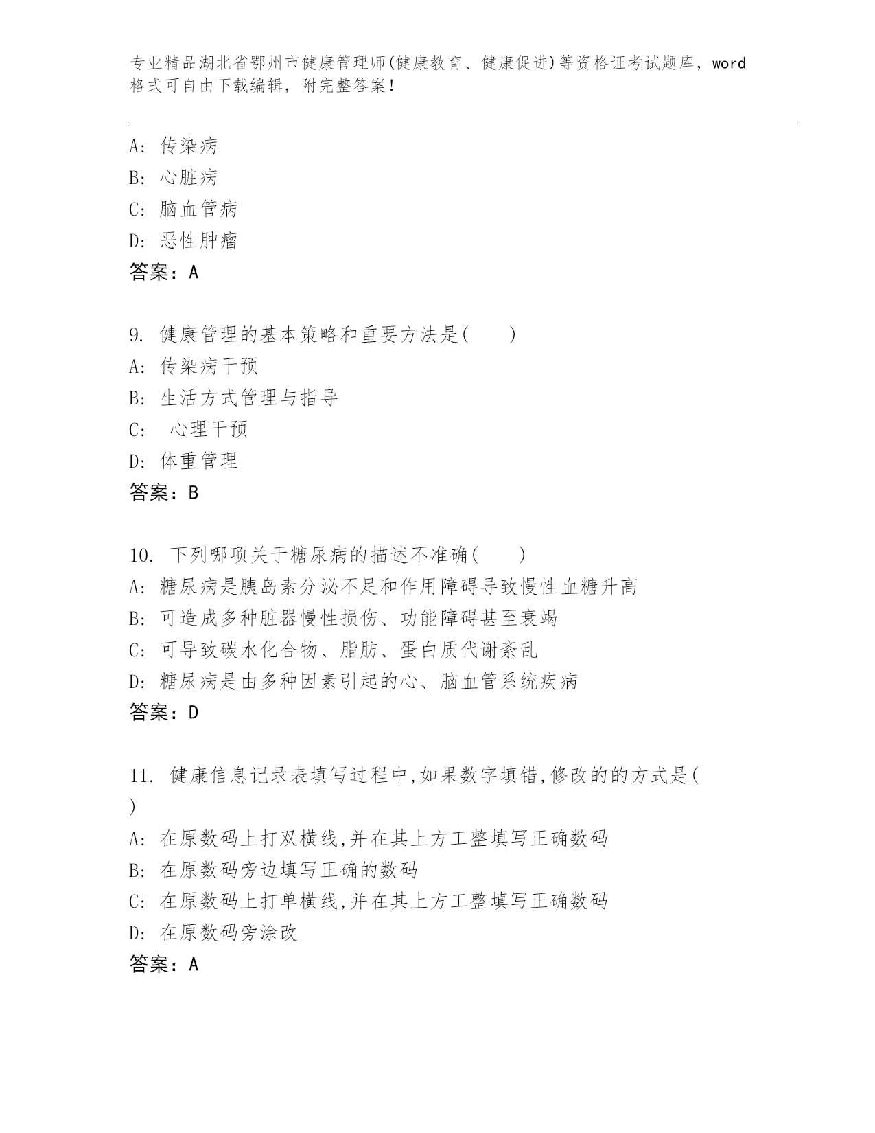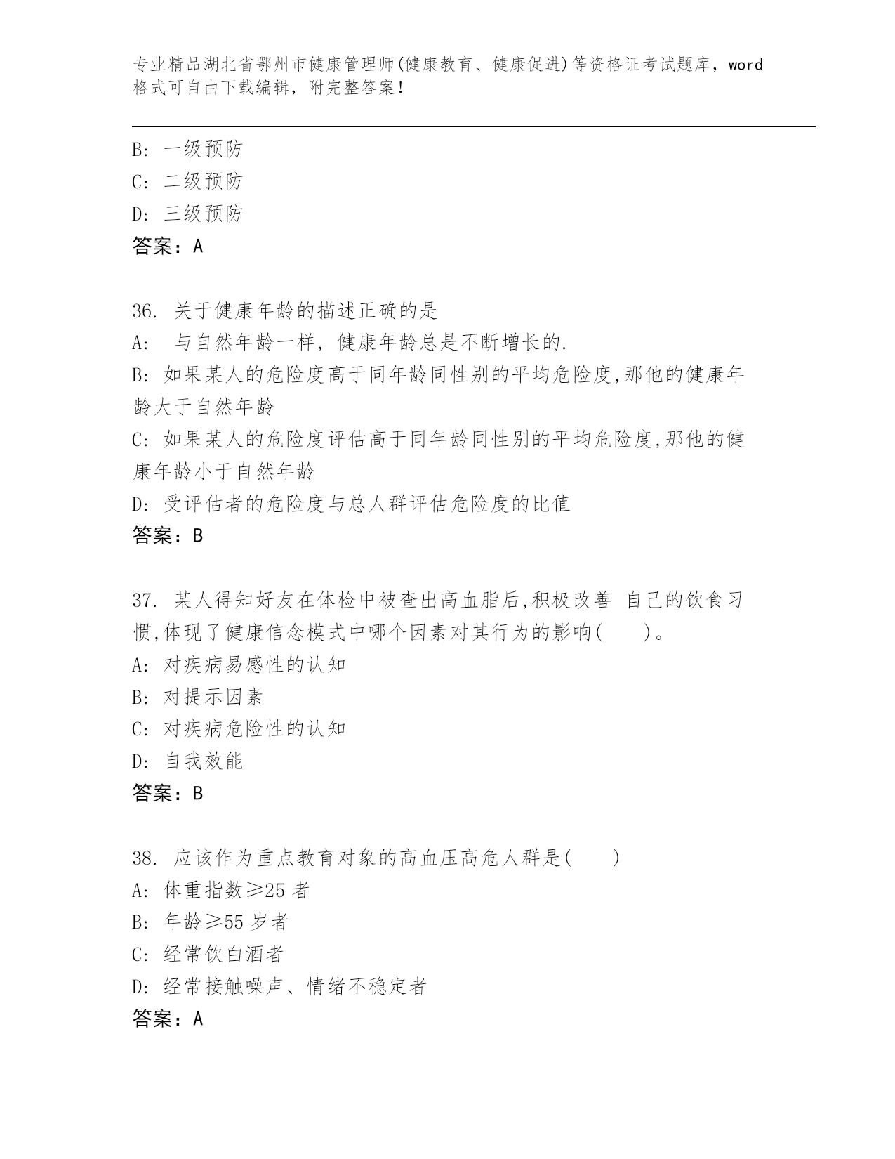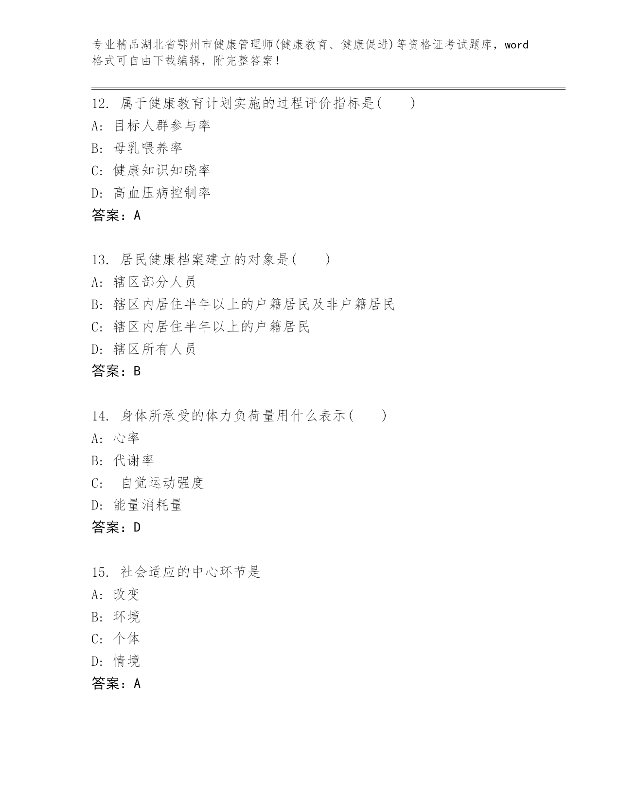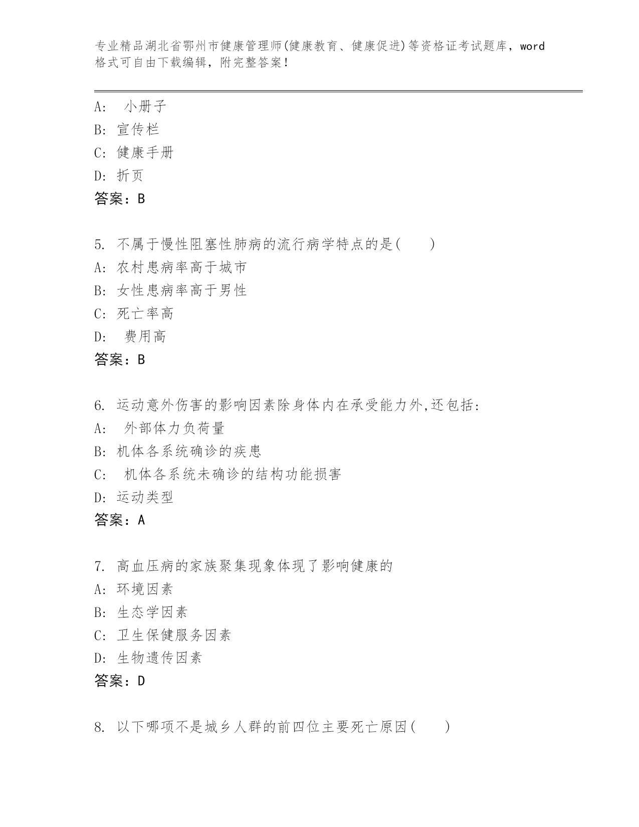 湖北省鄂州市健康管理师(健康教育、健康促进)等资格证考试真题(培优B卷).docx