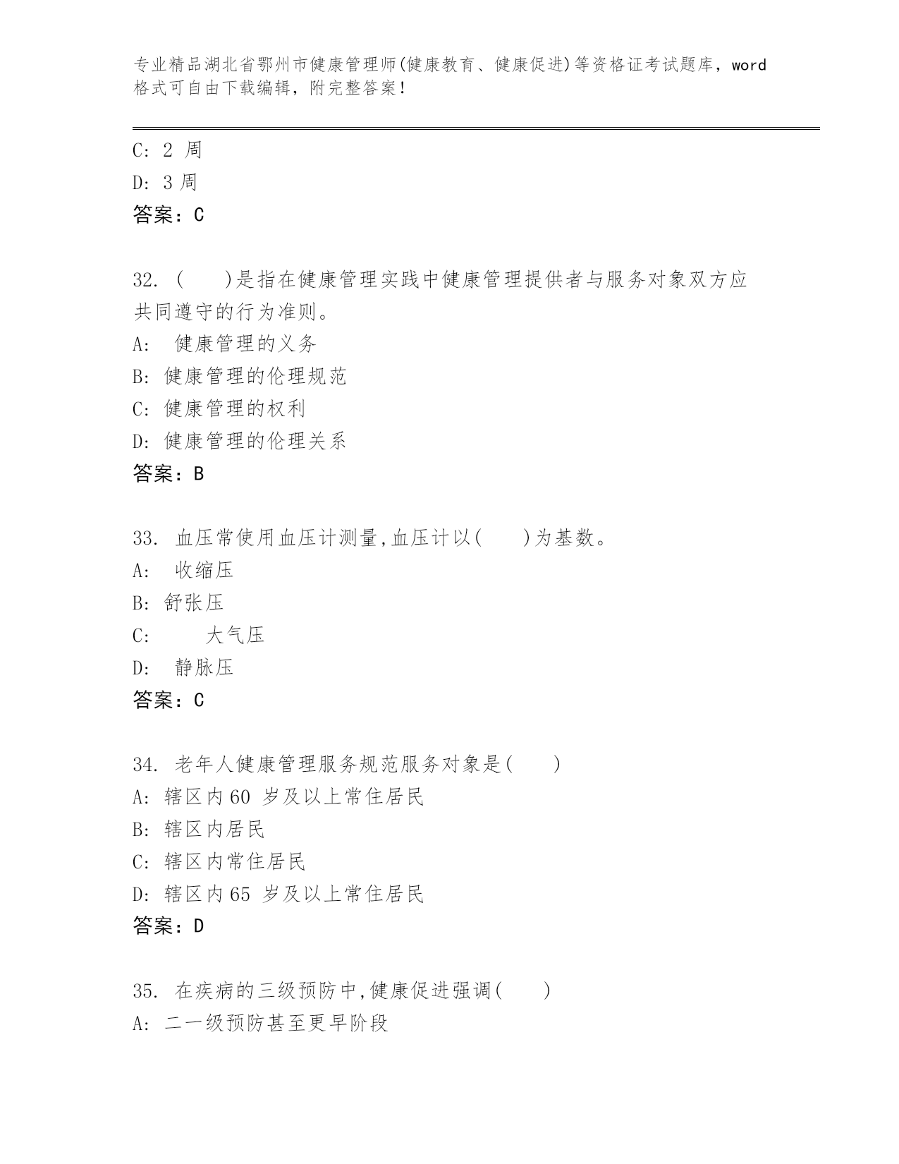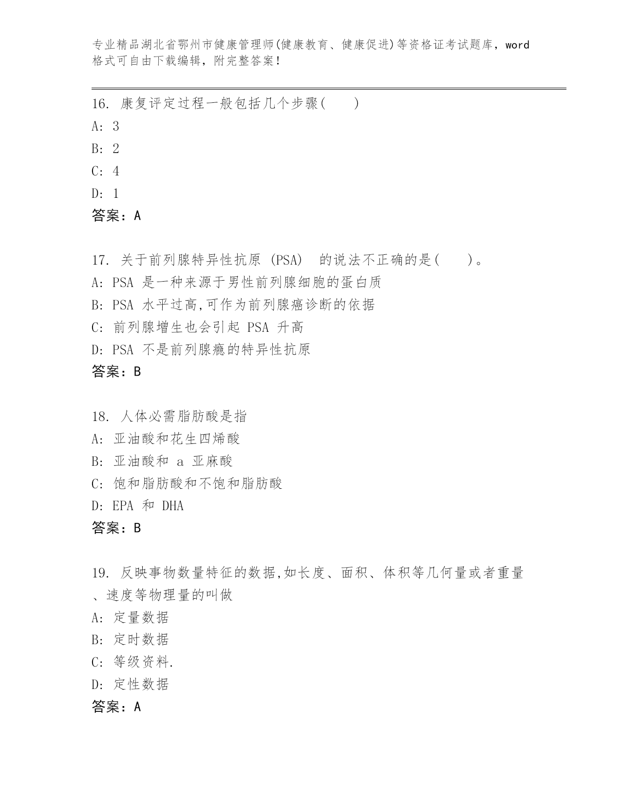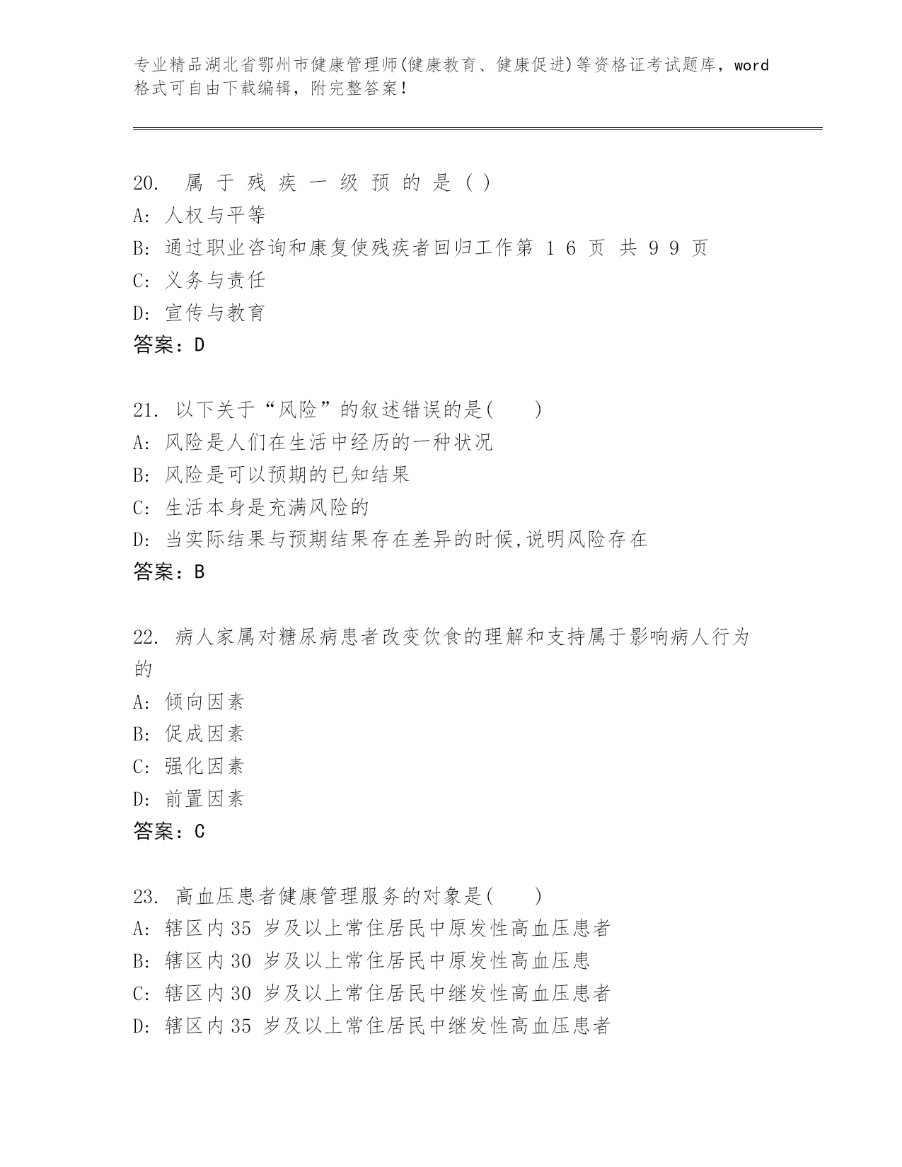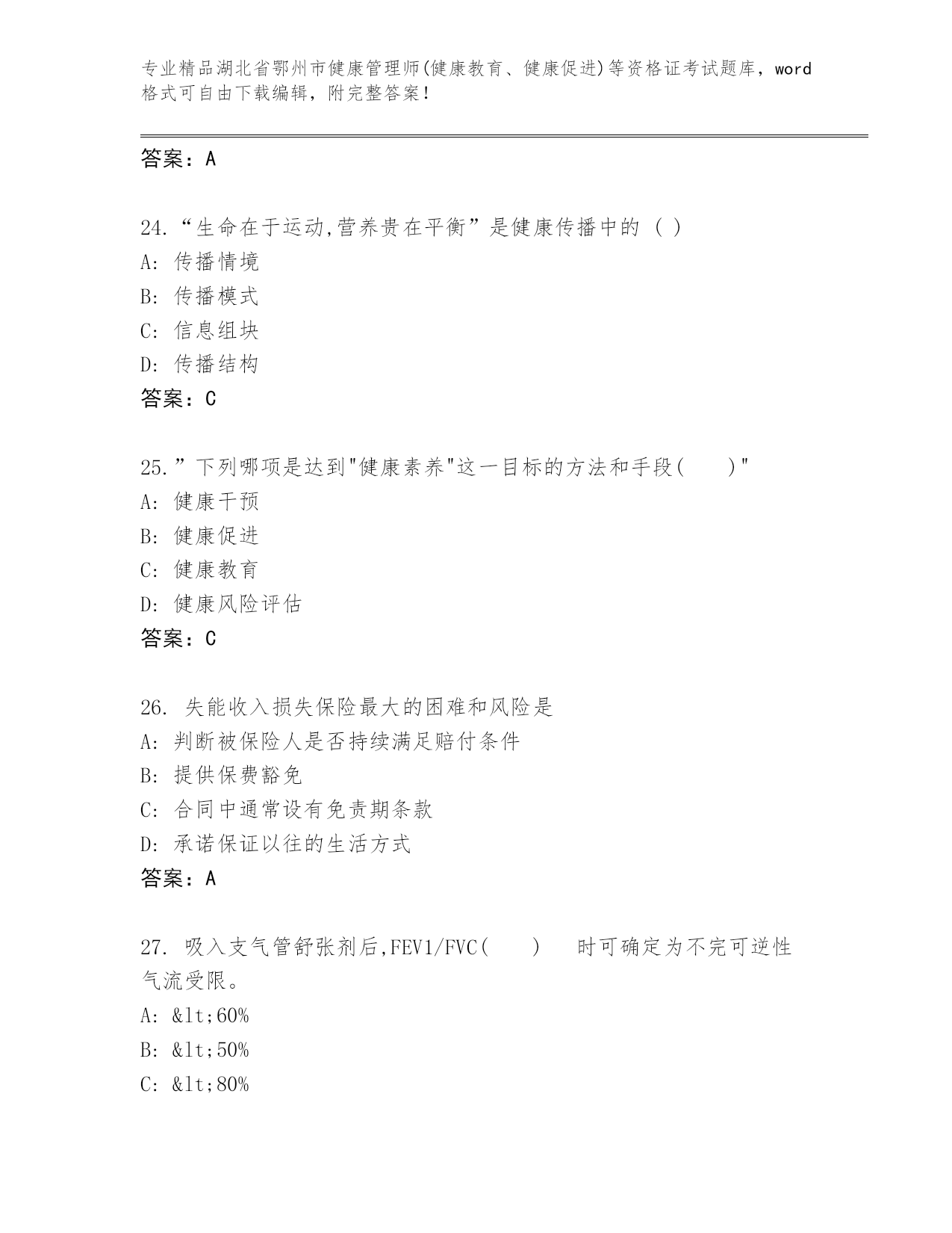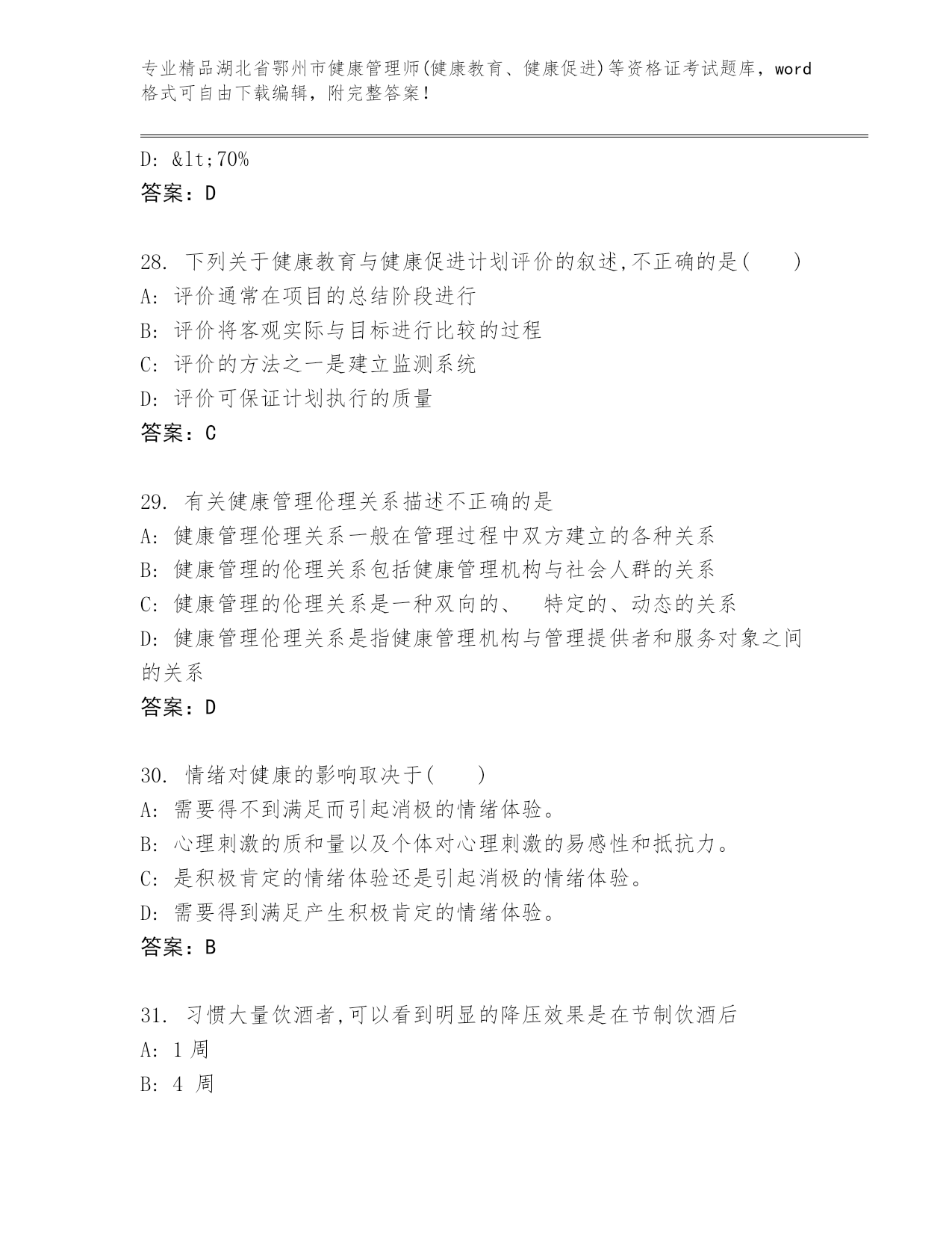湖北省鄂州市健康管理师(健康教育、健康促进)等资格证考试真题(培优B卷).docx