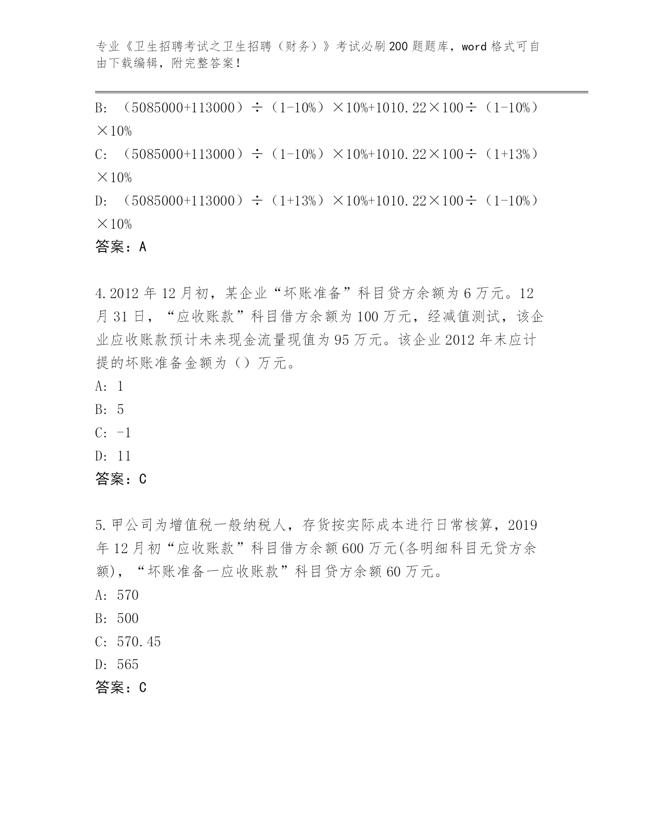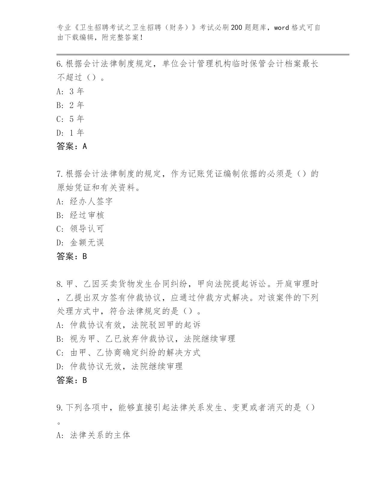 湖南省珠晖区《卫生招聘考试之卫生招聘(财务)》资格考试必刷200题完整题库附答案【培优B卷】